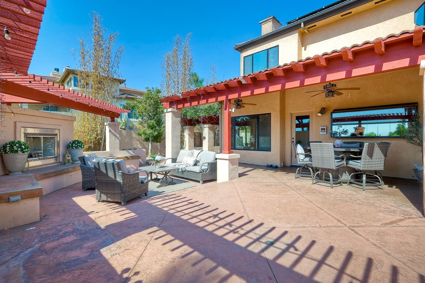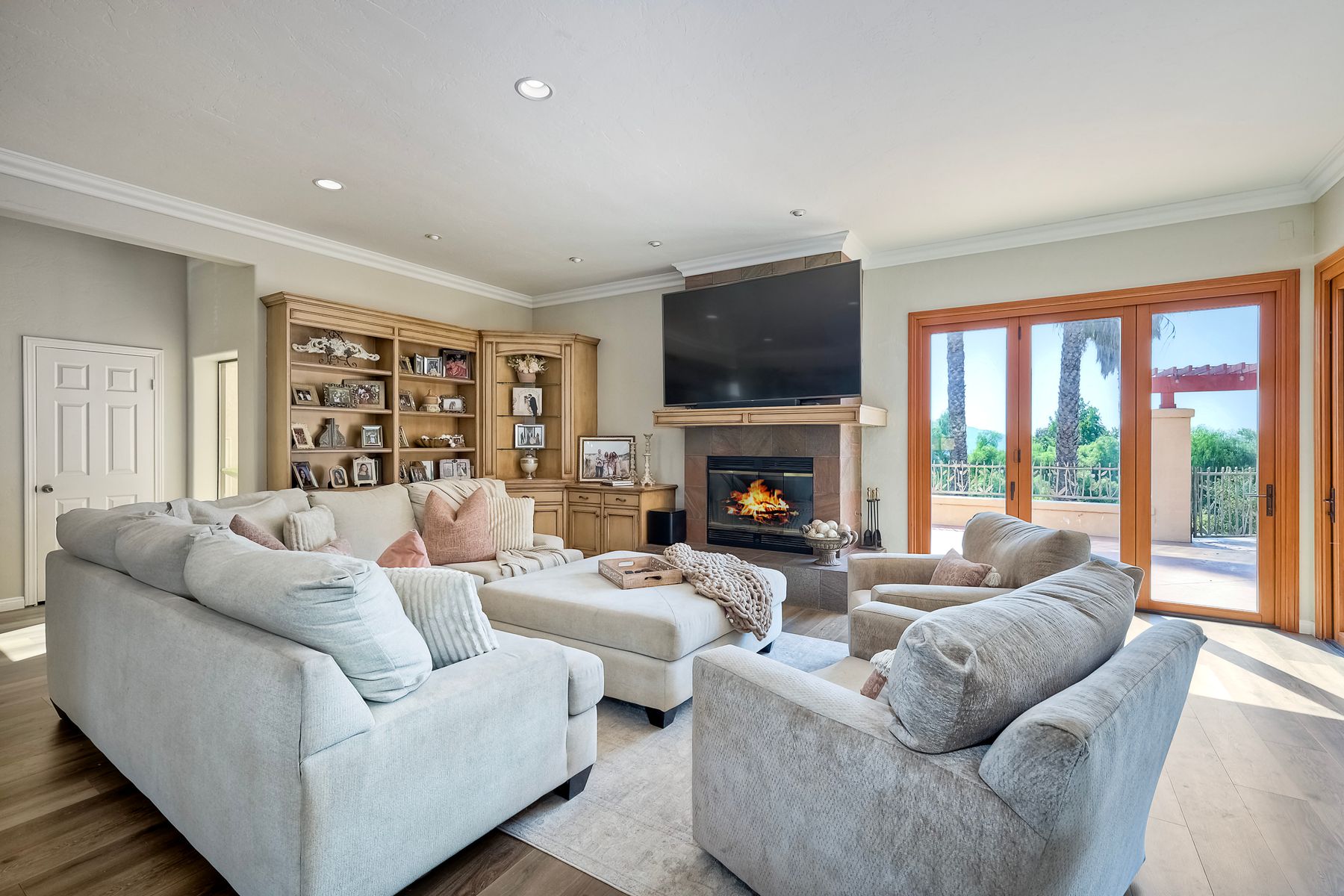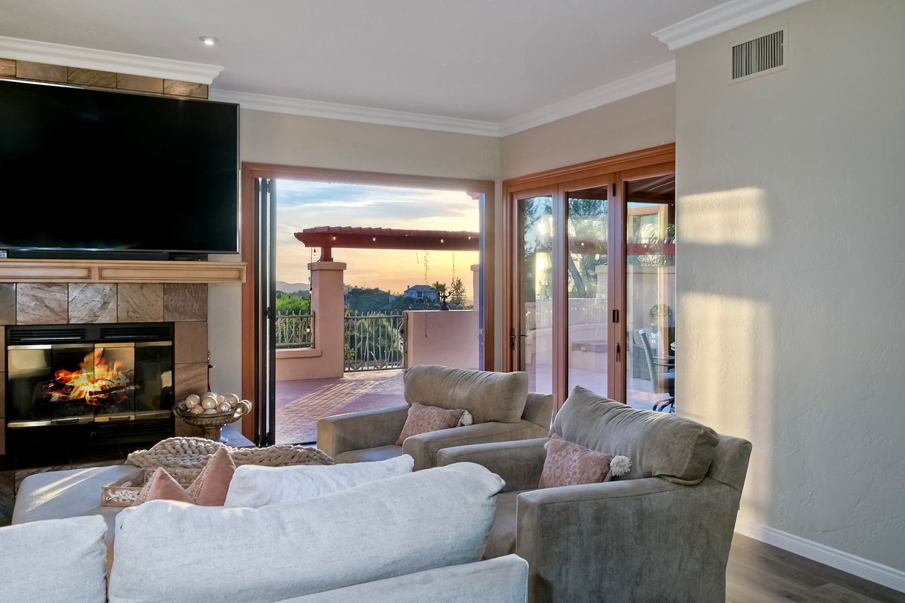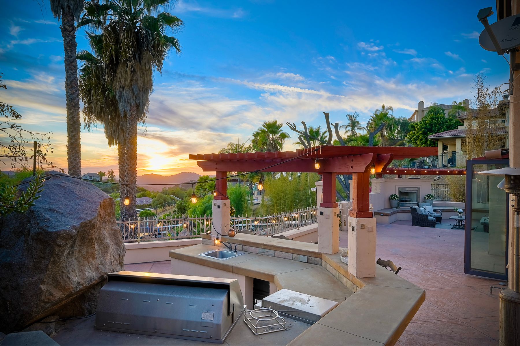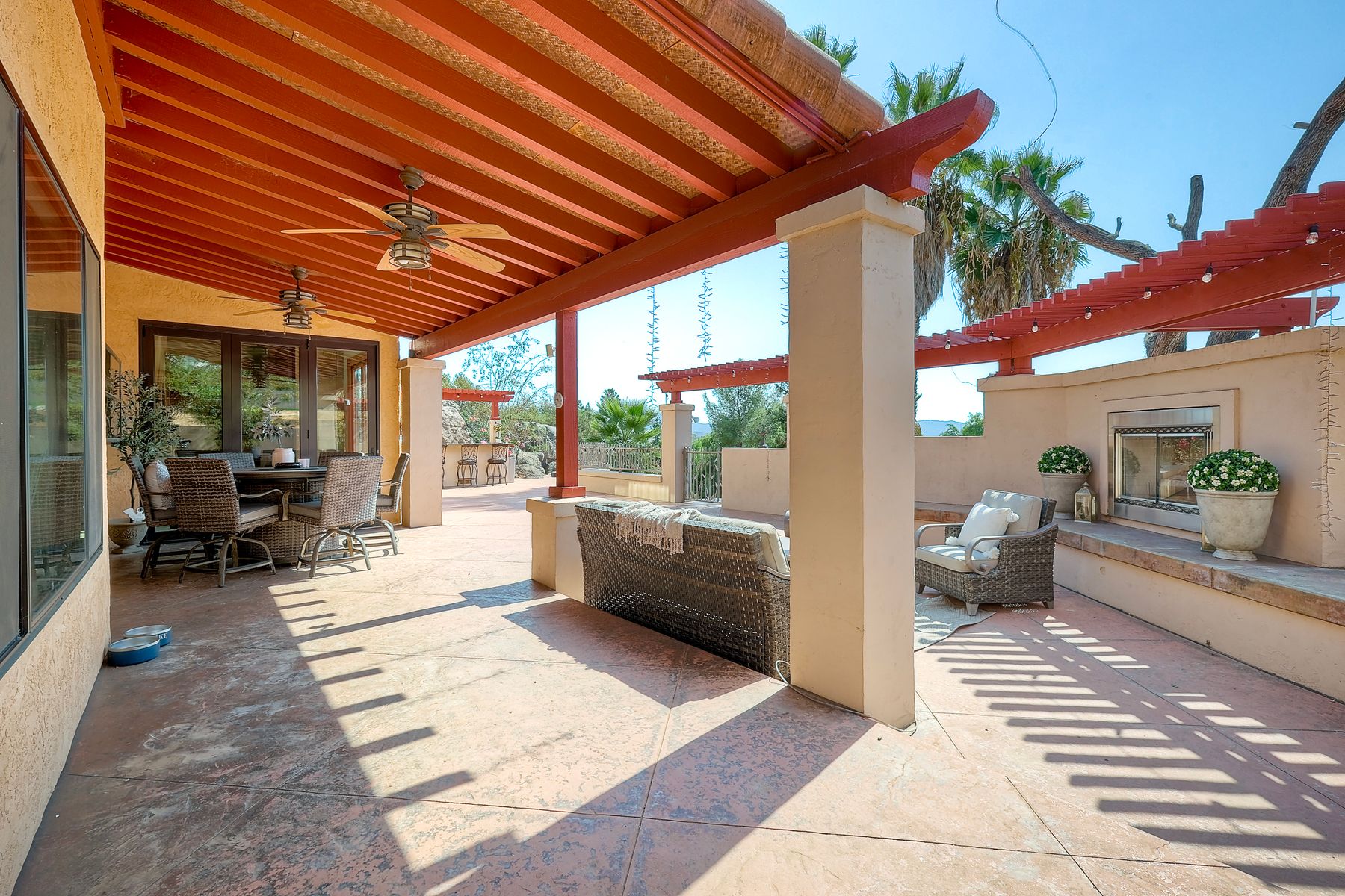 Well maintained custom home in highly sought after guarded, gated community of Rancho Palo Verde. This 5 bed 4.5 bath home sits on over 2 acres with a private 2 stall barn, horse arena and orchard. Property features custom cabinets throughout the home. Private veranda with spa off the primary suite with heated floors in primary bath. Built in BBQ in the larger outdoor entertaining area, outdoor fireplace, 2 Catalina doors, 2 living rooms, 5 fireplaces, 3 car garage, solar, circular driveway and even its own walking paths!! Well maintained custom Tuscan home in highly sought after guarded, gated community of Rancho Palo Verde, with access to Palo Verde Lake! This 5 bed 4.5 bath home sits on over 2 acres with a private 2 stall barn, horse arena and orchard. The orchard has mature lemon, lime, orange and pomegranate trees. The home features custom cabinets in the kitchen, both living rooms and primary bedroom. There is a private veranda off the primary suite with its own remote control spa. Heated tile floors in the primary bath, along with his and her walk in closets. Also, a built in BBQ with sink in the larger outdoor entertaining area, along with fans and an outdoor fireplace. Two Catalina doors open the living room to the outside. There are 2 living rooms, one downstairs and one upstairs, both with their own fireplace. Amazing views to Point Loma and Coronado from all over the house. Also a 3 car garage, circular driveway, 47 solar panels, and even its own walking paths through the property. And you have Palo Verde Lake access!! This home has it all!!