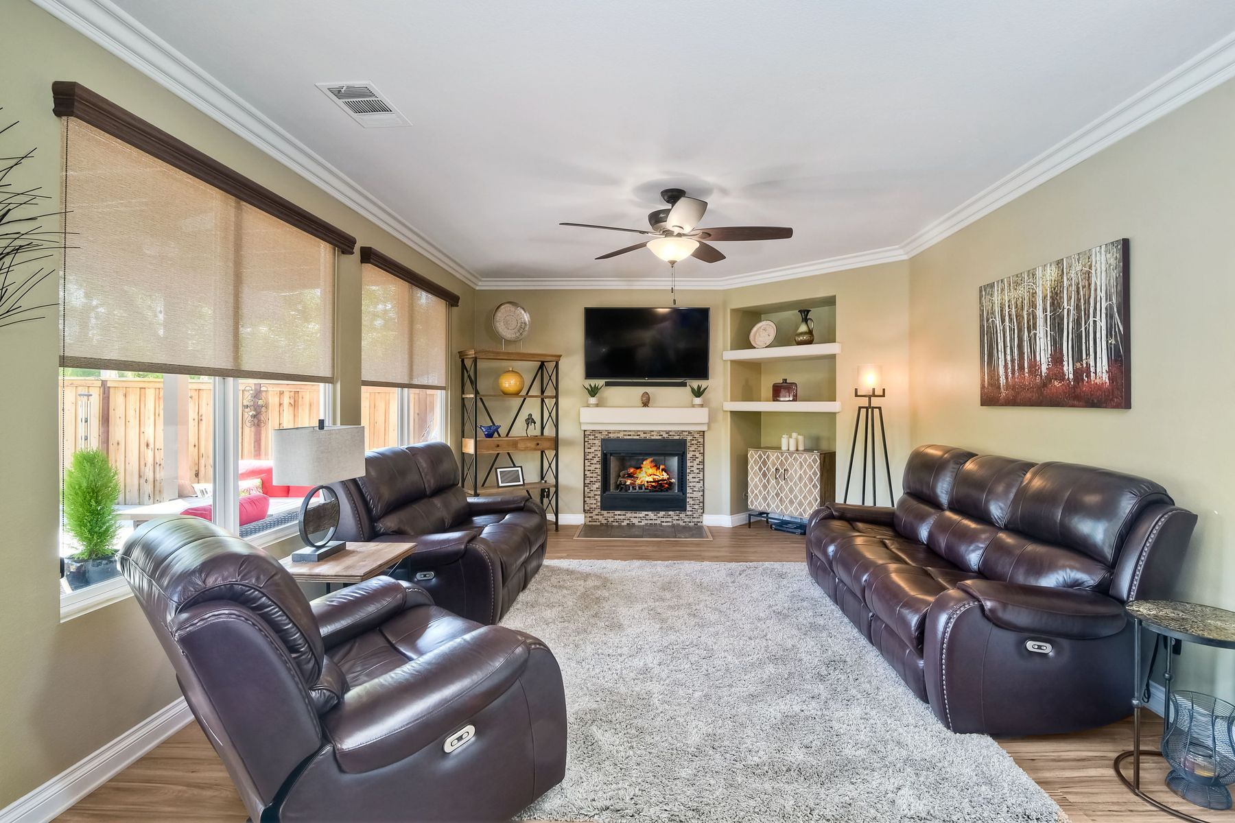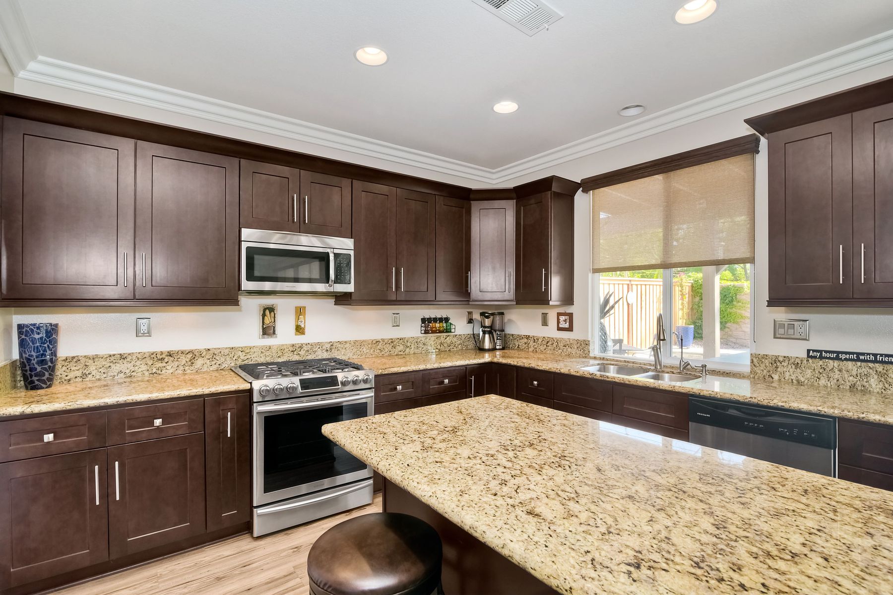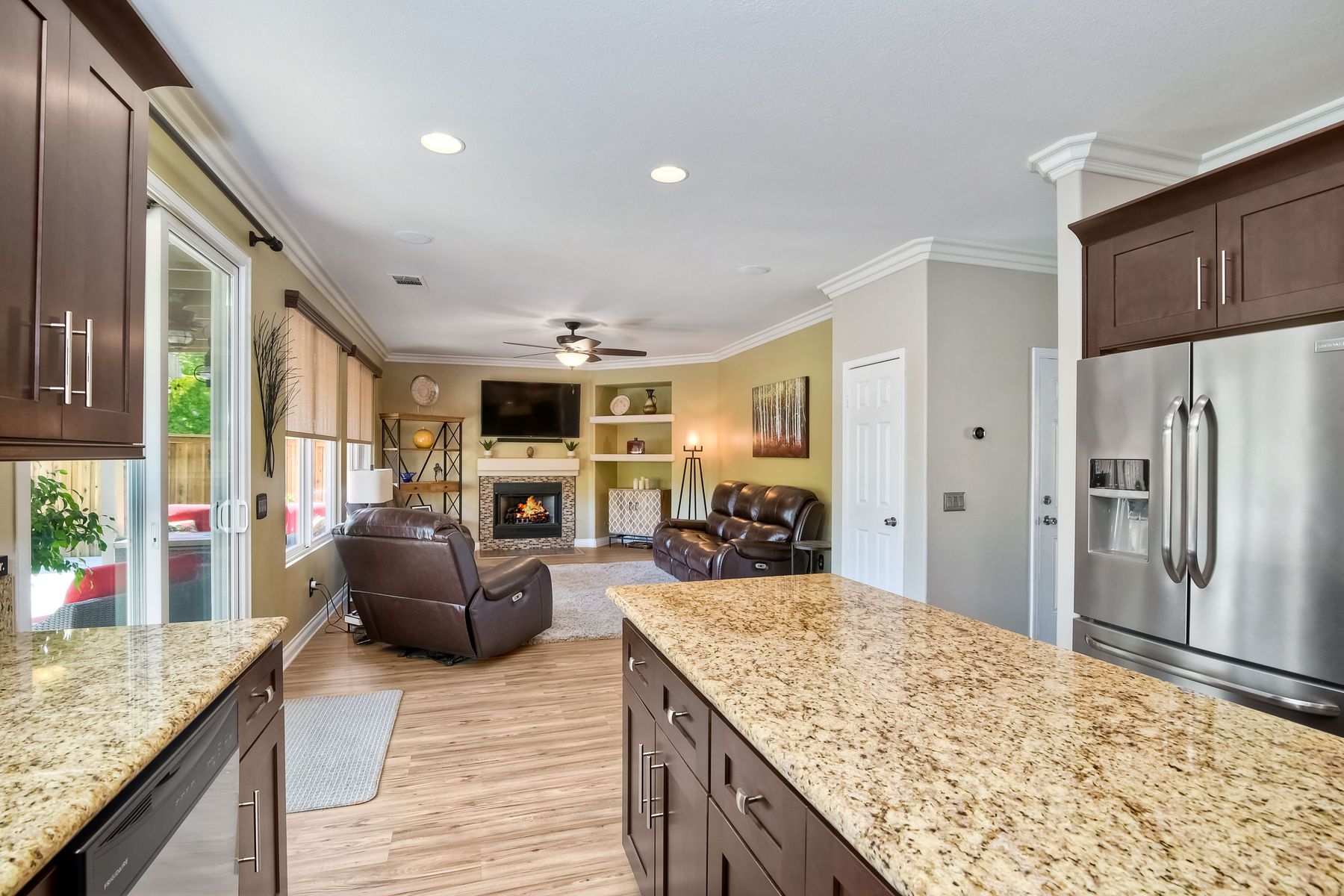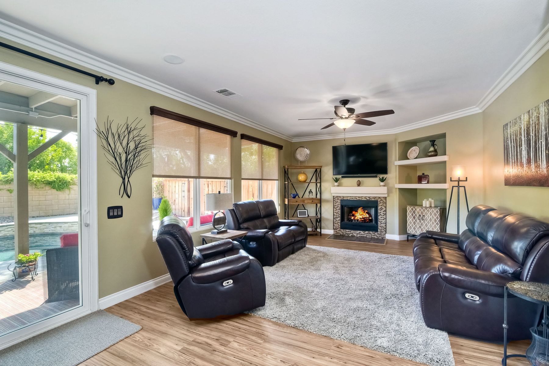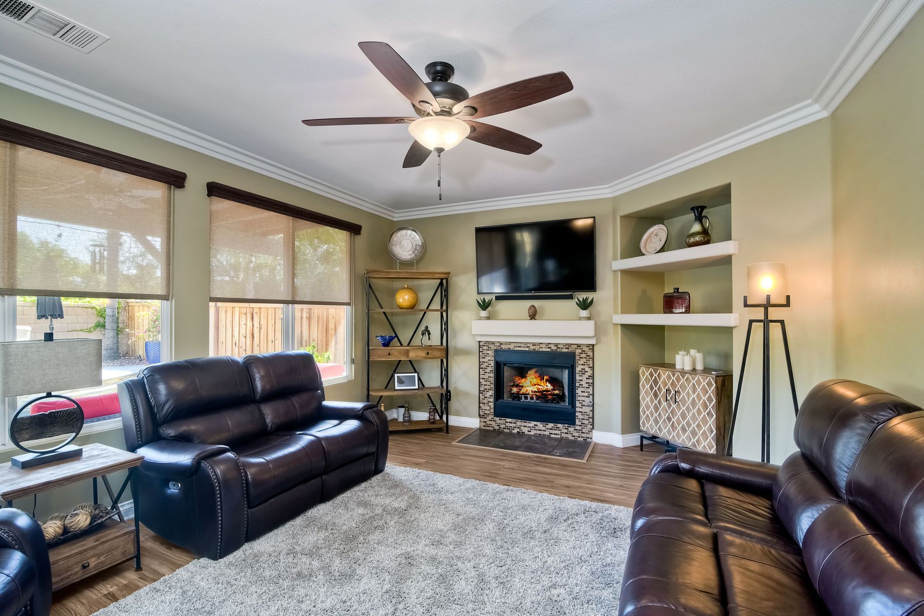 WELCOME to this turn-key POOL HOME that shows pride of ownership, attention to detail, and is well maintained. Enjoy your own personal OASIS with a completely remodeled pool area that includes new textured concrete, coping, stacked stone, heating system, pool pump, filtered water, and Pebble Tec. The outdoor kitchen with barbecue is custom made and the flat-screen television is included. The open floor plan includes a living room with a gas fireplace, dining area, kitchen with stainless steel appliances (refrigerator included), granite countertops, soft close cabinets/drawers, and a center island. The master bedroom has an ensuite with dual sinks, a soaking tub, a separate shower, and a walk-in closet. The indoor laundry room with a sink is located upstairs and the washer & dryer are included. Ceiling fans in all rooms except the front room. There is plenty of natural light throughout the home. The sliding patio door has UV-protected glass. The fence and garage door were replaced 2 years ago. The NUVIA whole house water purification system is paid in full. You are within walking distance of great shopping, dining, theatre, entertainment attractions, and top-ranked schools. Seller is providing disclosures, reports, termite clearance, and completed home inspection so a buyer can be confident and comfortable in their decision to purchase this home. JUST IN TIME FOR SUMMER!