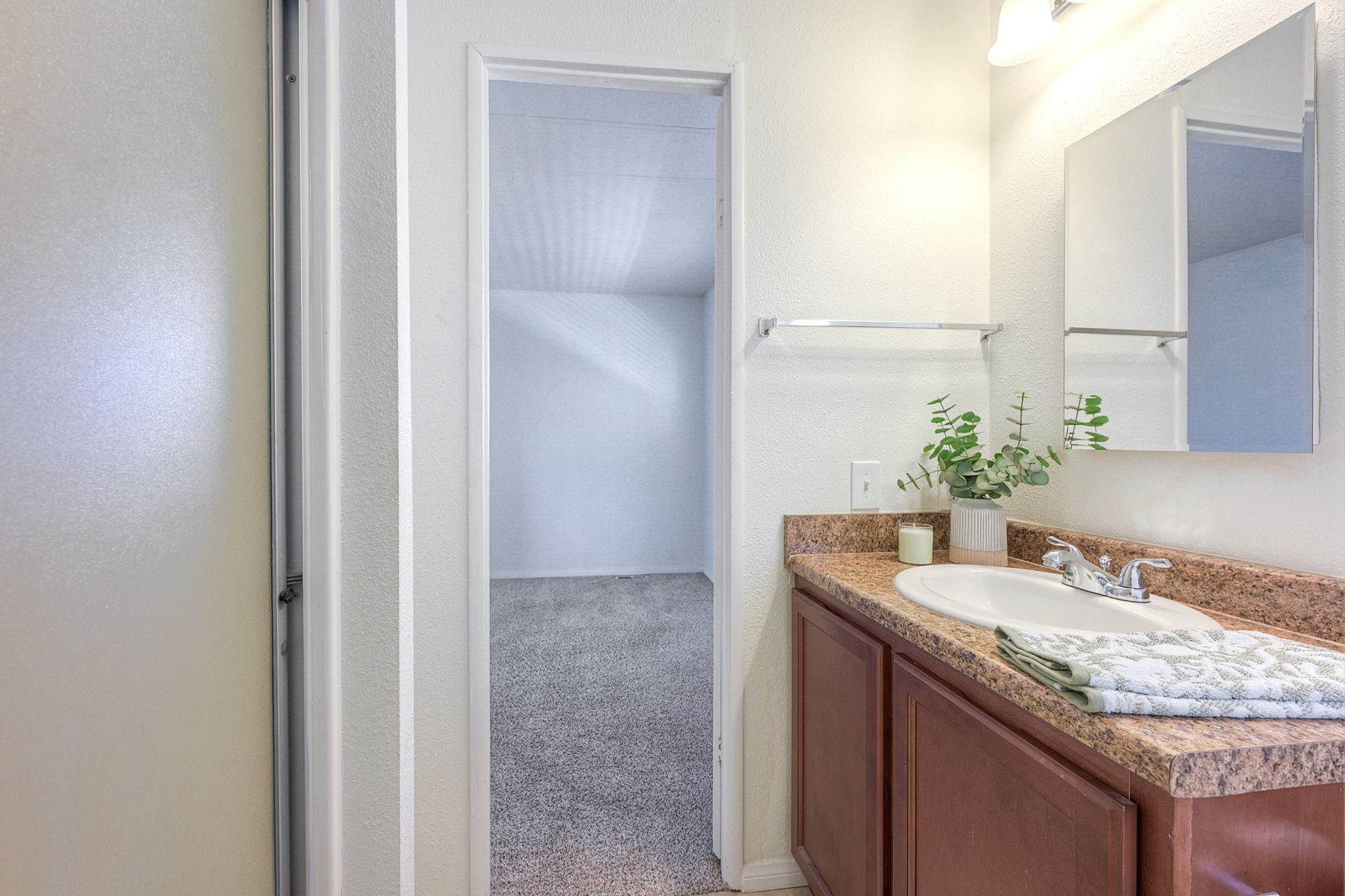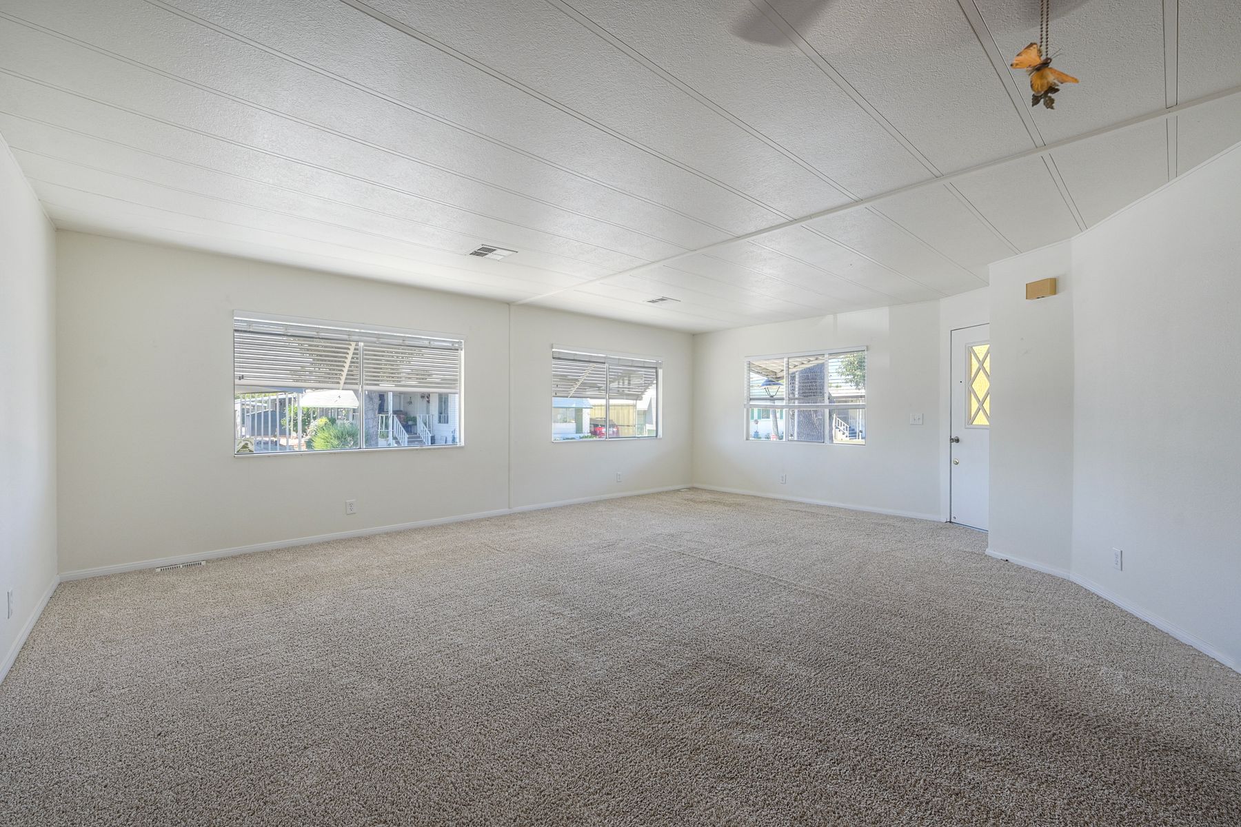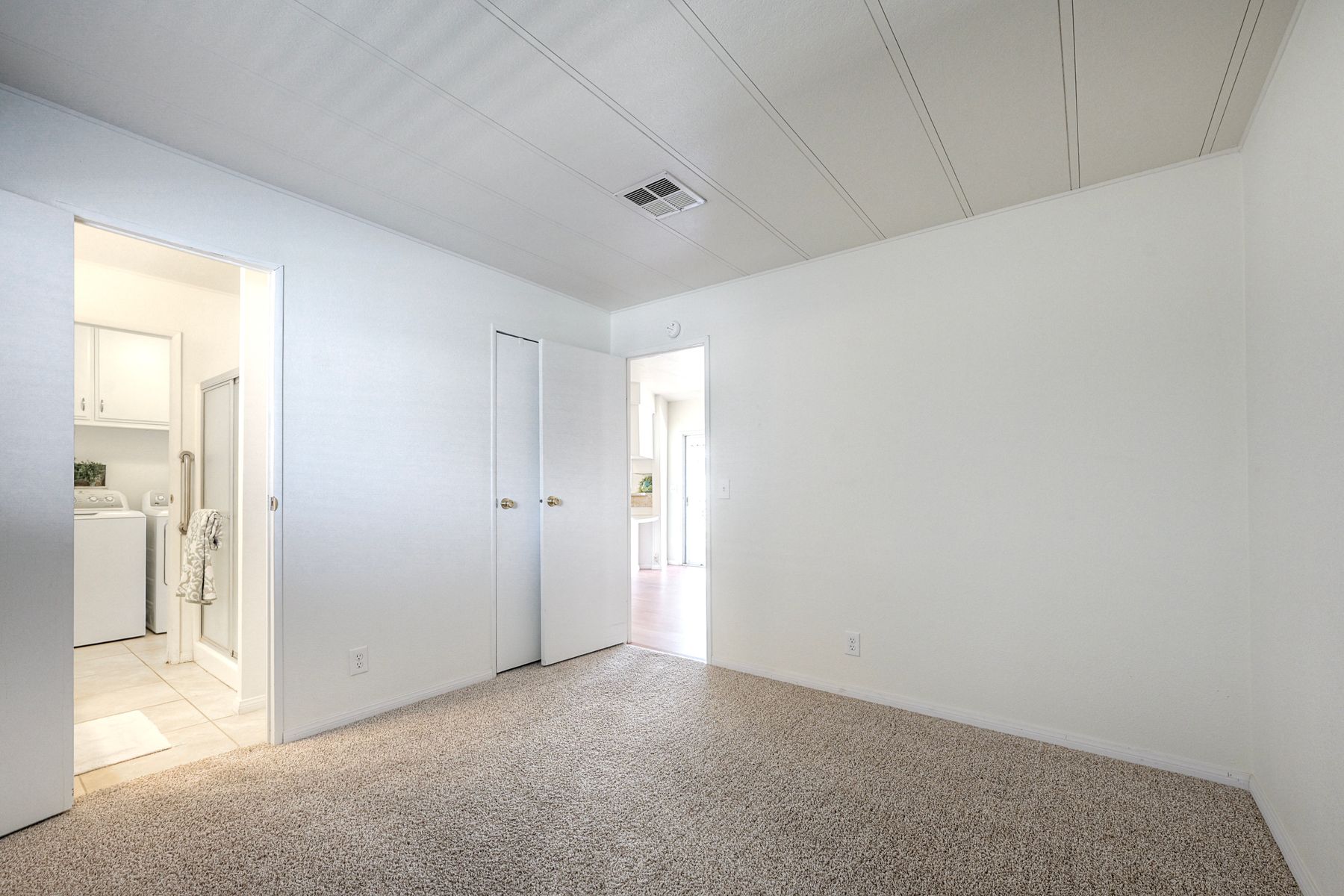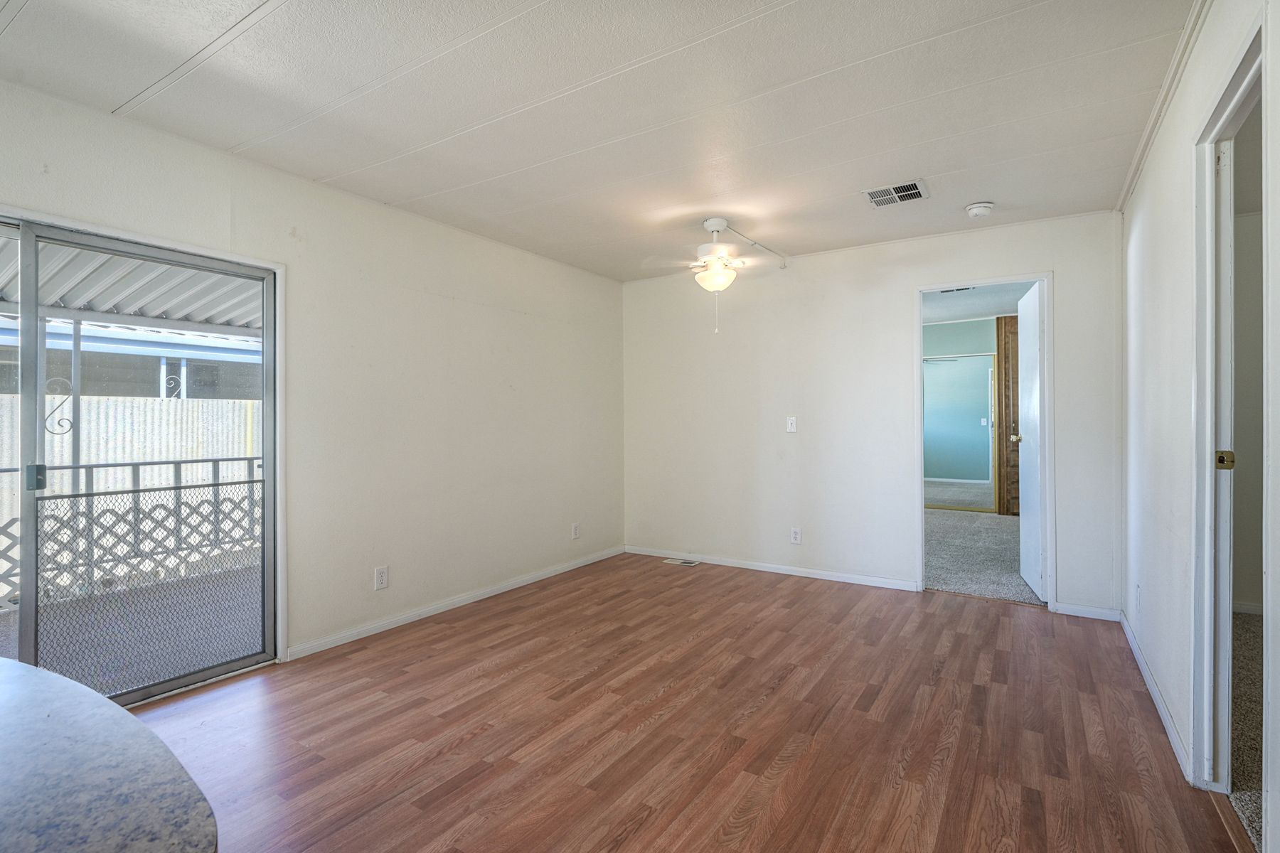 Desirable Sun City Mobile Home Estates, a 55+ gated community, this double-wide mobile home features 2 bedrooms, 2 bathrooms, one of the bathrooms is a Jack and Jill bathroom, and approximately 1,440 sq. ft. of living space. Highlights include lots of natural light, a spacious primary suite with large closet space, soaking tub, walk-in shower, a formal living room and dining area with a built-in cabinet, and a great kitchen equipped with a gas cooktop and walk-in pantry with plenty of storage. Additional features include ceiling fans, a covered porch, a dog ramp and dog play area, and a nice covered carport with two large storage sheds. Enjoy the community amenities: a clubhouse, heated pool, and many social activities to give you lots of opportunities to get involved. Conveniently located near shopping, a hospital, and the 215 freeway. Great opportunity to live a simple life in beautiful Sun City Mobile Home Estates.