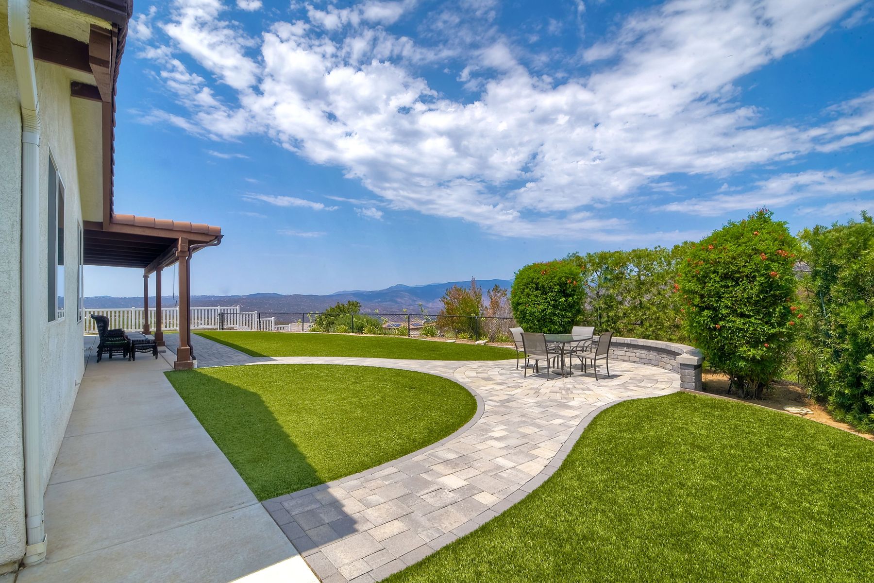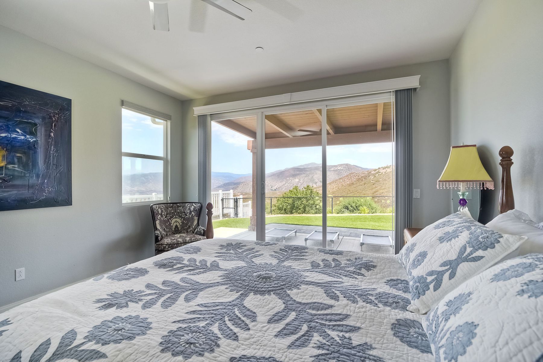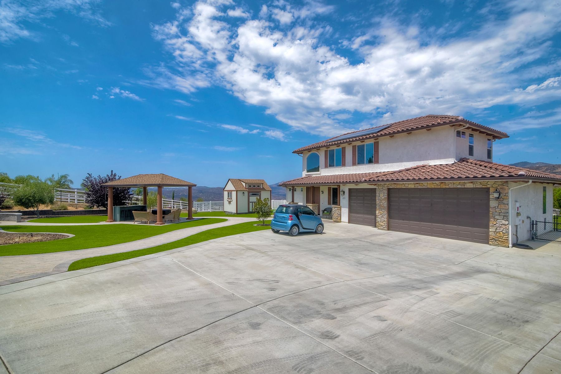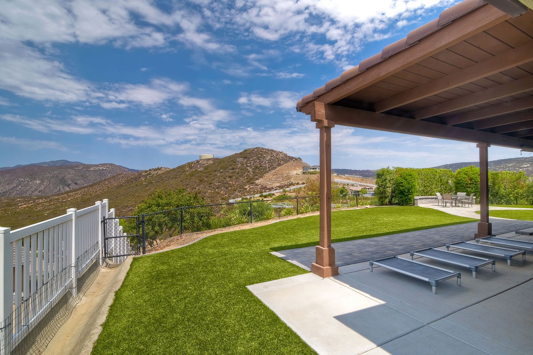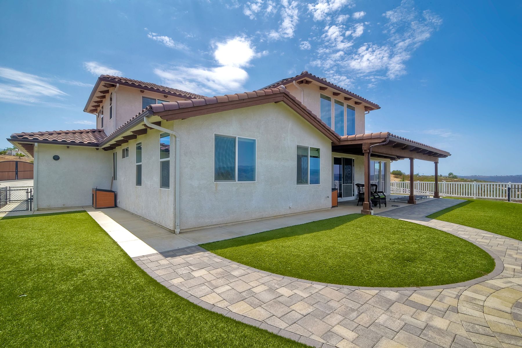 Magnificent 2 Story home on 2 usable acres with panoramic views of the mountains and valleys in every direction. Large master bedroom downstairs, with an additional bedroom/ bath downstairs and two jack and Jill bedrooms up with loft. Like new, this craftsman estate home, is located in exclusive Black Canyon Estates within quick and easy access to hiking and backpacking into the Cleveland National Forest or Black Canyon Falls. Attractive 3 rail white vinyl fencing surrounds the entire property with chain-link attached on the inside to keep pets in and other animals out. Ideal for the horse/animal enthusiast. This lot is one of the best lots for the views. With over 200K in upgrades this home has dramatic vaulted 20 foot ceilings in family room, with 10 foot ceilings in bedroom, crafted beautiful molding, and enhanced energy efficient dual glazed white vinyl windows, 3.0 KW solar system, tankless water system, fire resistant tile roofing, fire sprinklers with alarm. First time on the market, original seller, has beautiful interior details includes inviting tile entry, interior laundry rooms, large walk-in closets, large pantry, butler station, prewired for TV data and cable in living room, Master bedroom and secondary bedrooms. Includes a 3 car garage with tons of parking and room for an RV. An additional 10X10 storage shed conveys built on property that is prewired, and well insulated. Light Pecan stained kitchen cabinetry, granite counters includes 6" backsplash. Stainless Steel appliances, 30" gas range (Frigidaire) with built in micro/hood. Designer selected faucets, stainless steel dual sinks, with large island with counter seating for casual meals and elegant dining off the main entrance. Covered back patio off kitchen and master bedroom, which runs the length from family room to master bedroom. Designed pavers, with gas firepit and pergola in front yard, featured Led lighting through-out, sprinkler systems throughout front and back yard. There is no grass, but all turf. Garage has wall to wall built-in storage which includes closet space. Also your own generator! Peace and serenity all around.