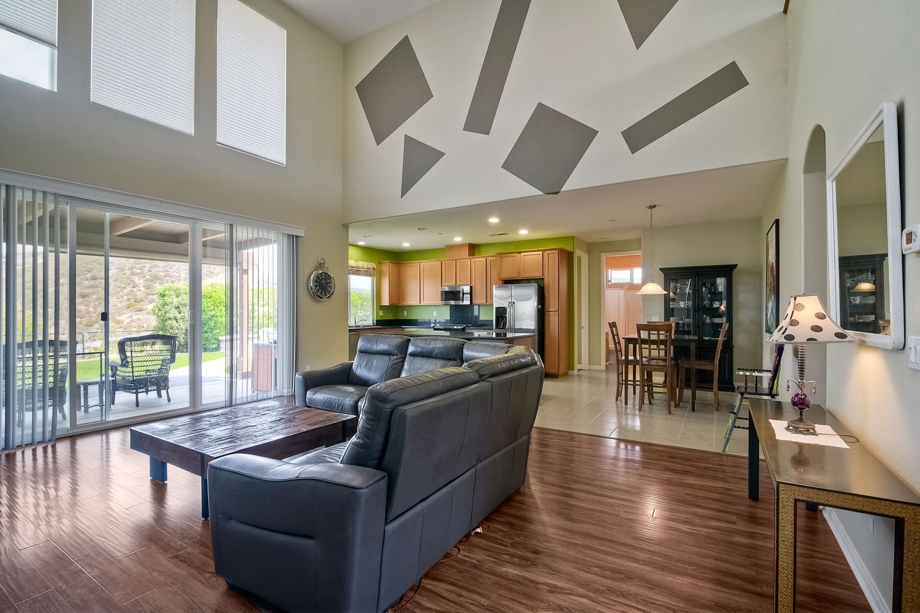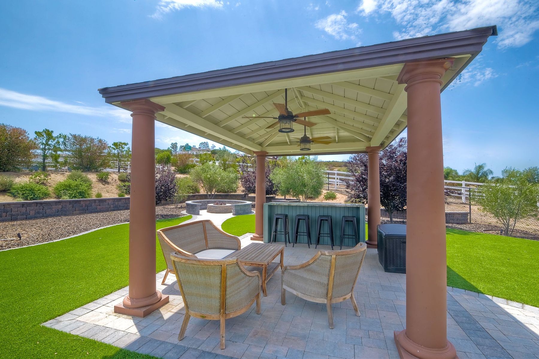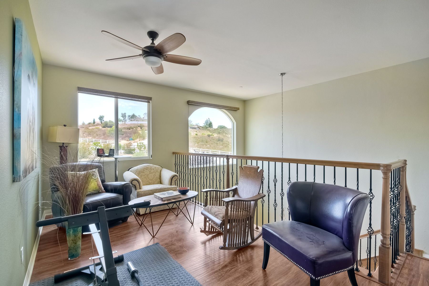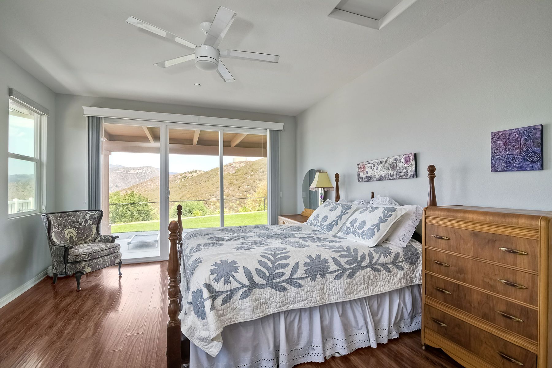 Magnificent 2 Story home on 2 usable acres with panoramic views of the mountains and valleys in every direction. Large master bedroom downstairs, with an additional bedroom/ bath downstairs and two jack and Jill bedrooms up with loft. Like new, this craftsman estate home, is located in exclusive Black Canyon Estates within quick and easy access to hiking and backpacking into the Cleveland National Forest or Black Canyon Falls. Attractive 3 rail white vinyl fencing surrounds the entire property with chain-link attached on the inside to keep pets in and other animals out. Ideal for the horse/animal enthusiast. This lot is one of the best lots for the views. With over 200K in upgrades this home has dramatic vaulted 20 foot ceilings in family room, with 10 foot ceilings in bedroom, crafted beautiful molding, and enhanced energy efficient dual glazed white vinyl windows, 3.0 KW solar system, tankless water system, fire resistant tile roofing, fire sprinklers with alarm. First time on the market, original seller, has beautiful interior details includes inviting tile entry, interior laundry rooms, large walk-in closets, large pantry, butler station, prewired for TV data and cable in living room, Master bedroom and secondary bedrooms. Includes a 3 car garage with tons of parking and room for an RV. An additional 10X10 storage shed conveys built on property that is prewired, and well insulated. Light Pecan stained kitchen cabinetry, granite counters includes 6" backsplash. Stainless Steel appliances, 30" gas range (Frigidaire) with built in micro/hood. Designer selected faucets, stainless steel dual sinks, with large island with counter seating for casual meals and elegant dining off the main entrance. Covered back patio off kitchen and master bedroom, which runs the length from family room to master bedroom. Designed pavers, with gas firepit and pergola in front yard, featured Led lighting through-out, sprinkler systems throughout front and back yard. There is no grass, but all turf. Garage has wall to wall built-in storage which includes closet space. Also your own generator! Peace and serenity all around.