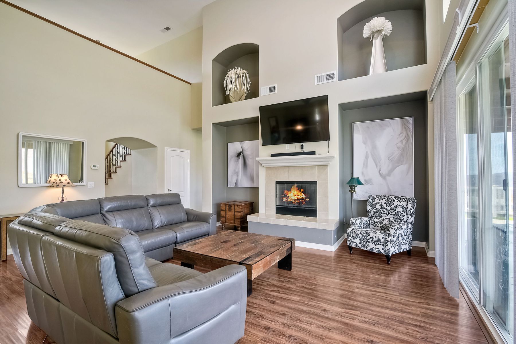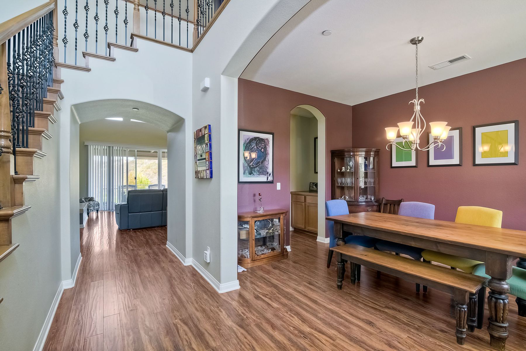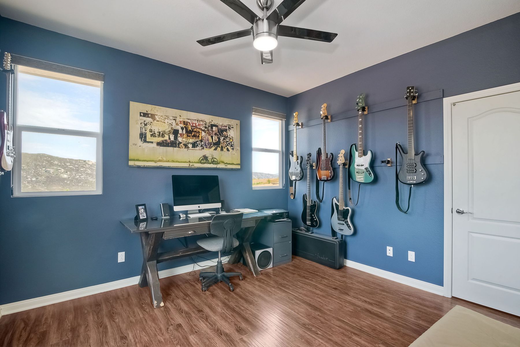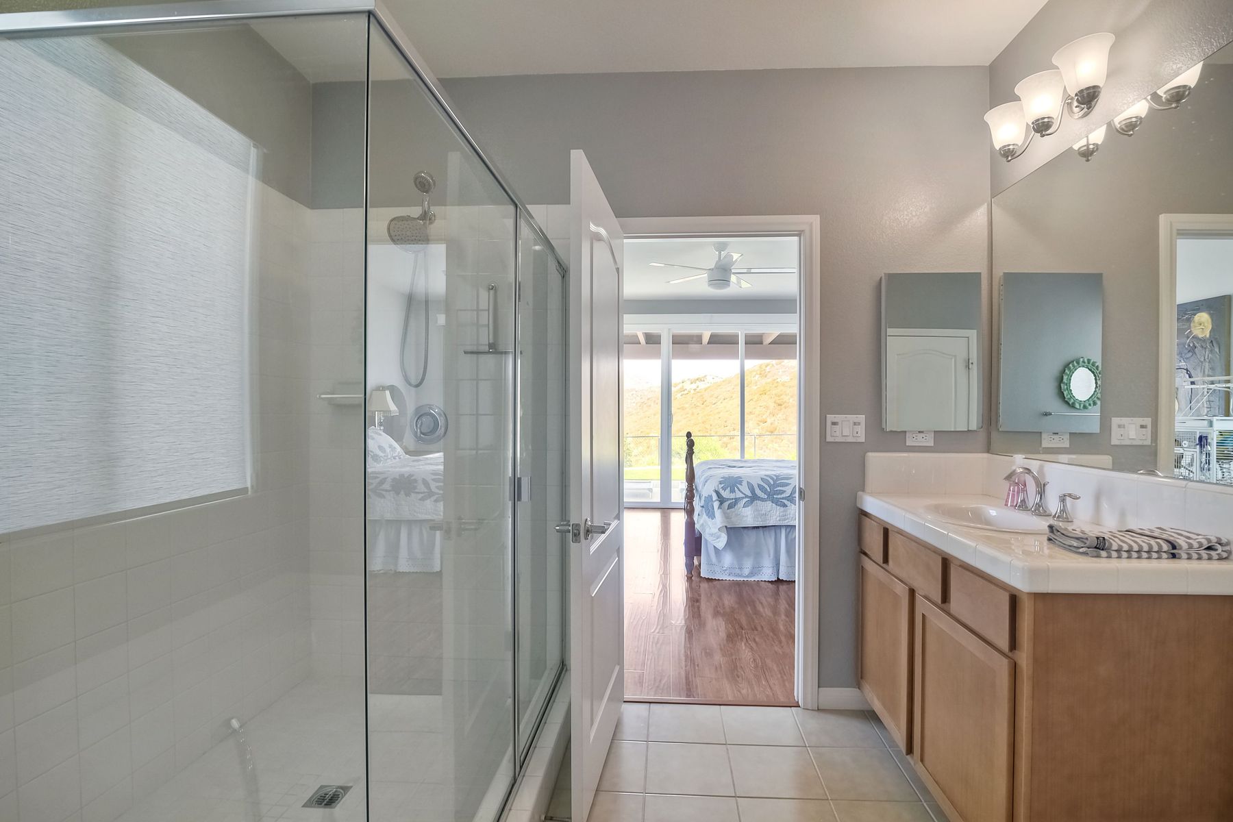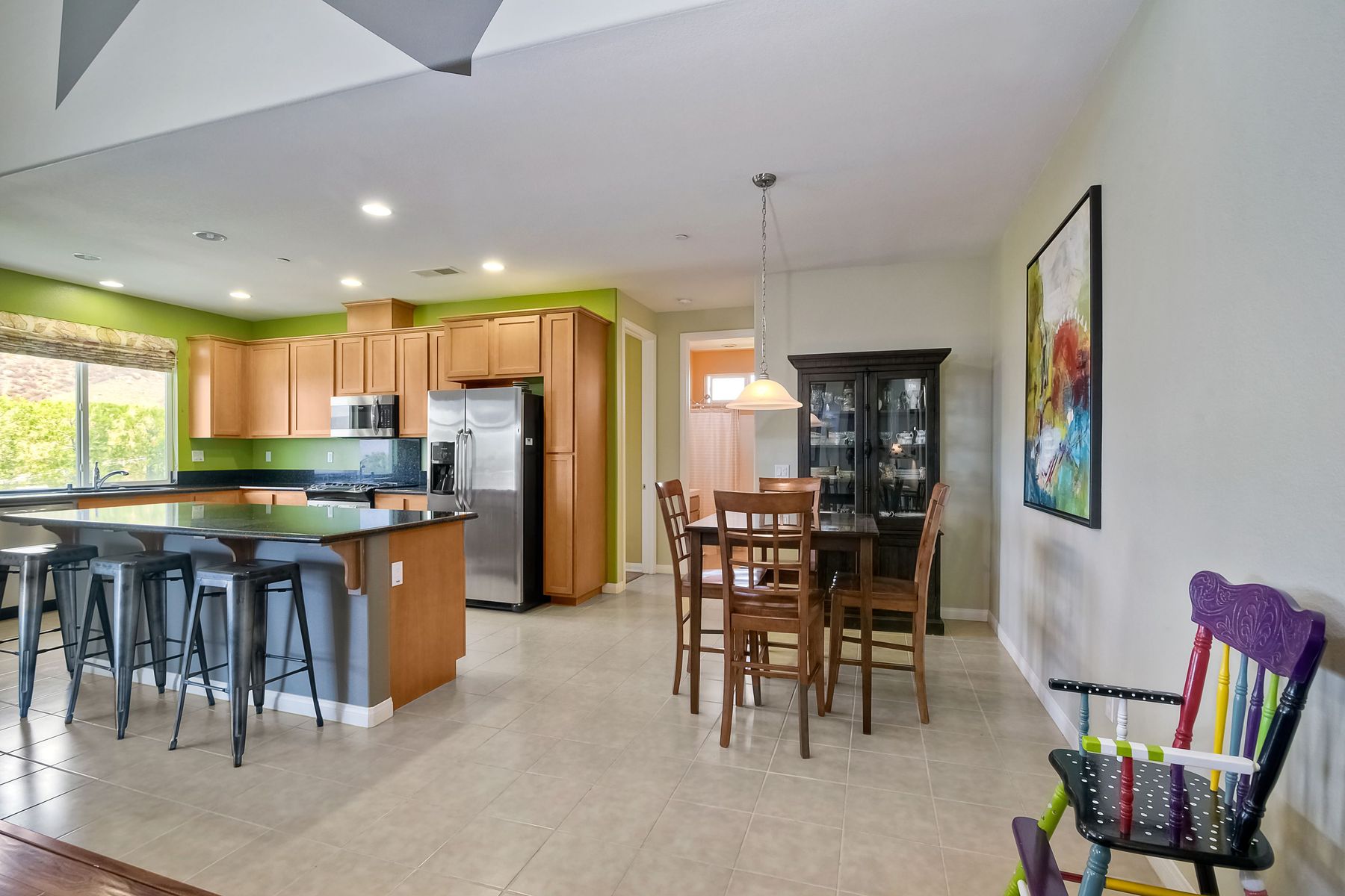 Magnificent 2 Story home on 2 usable acres with panoramic views of the mountains and valleys in every direction. Large master bedroom downstairs, with an additional bedroom/ bath downstairs and two jack and Jill bedrooms up with loft. Like new, this craftsman estate home, is located in exclusive Black Canyon Estates within quick and easy access to hiking and backpacking into the Cleveland National Forest or Black Canyon Falls. Attractive 3 rail white vinyl fencing surrounds the entire property with chain-link attached on the inside to keep pets in and other animals out. Ideal for the horse/animal enthusiast. This lot is one of the best lots for the views. With over 200K in upgrades this home has dramatic vaulted 20 foot ceilings in family room, with 10 foot ceilings in bedroom, crafted beautiful molding, and enhanced energy efficient dual glazed white vinyl windows, 3.0 KW solar system, tankless water system, fire resistant tile roofing, fire sprinklers with alarm. First time on the market, original seller, has beautiful interior details includes inviting tile entry, interior laundry rooms, large walk-in closets, large pantry, butler station, prewired for TV data and cable in living room, Master bedroom and secondary bedrooms. Includes a 3 car garage with tons of parking and room for an RV. An additional 10X10 storage shed conveys built on property that is prewired, and well insulated. Light Pecan stained kitchen cabinetry, granite counters includes 6" backsplash. Stainless Steel appliances, 30" gas range (Frigidaire) with built in micro/hood. Designer selected faucets, stainless steel dual sinks, with large island with counter seating for casual meals and elegant dining off the main entrance. Covered back patio off kitchen and master bedroom, which runs the length from family room to master bedroom. Designed pavers, with gas firepit and pergola in front yard, featured Led lighting through-out, sprinkler systems throughout front and back yard. There is no grass, but all turf. Garage has wall to wall built-in storage which includes closet space. Also your own generator! Peace and serenity all around.