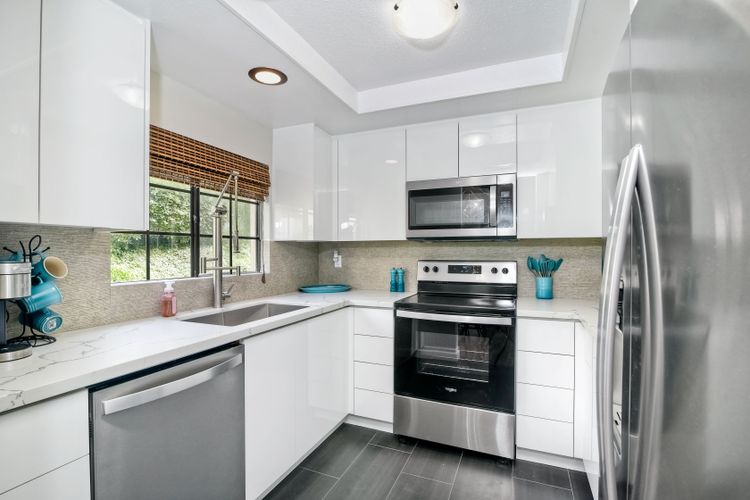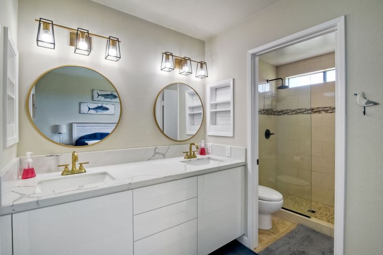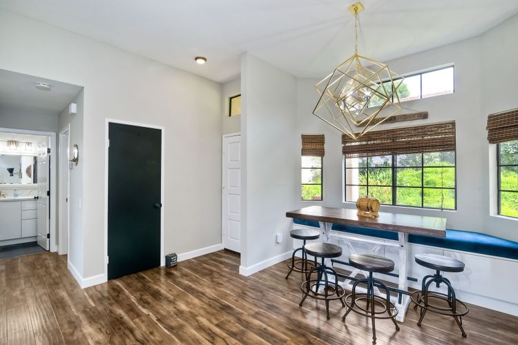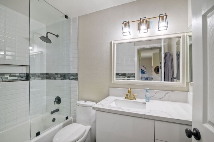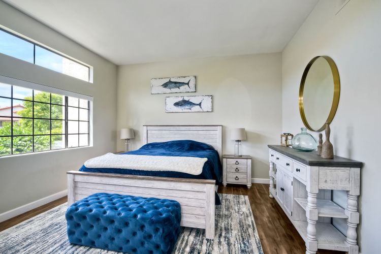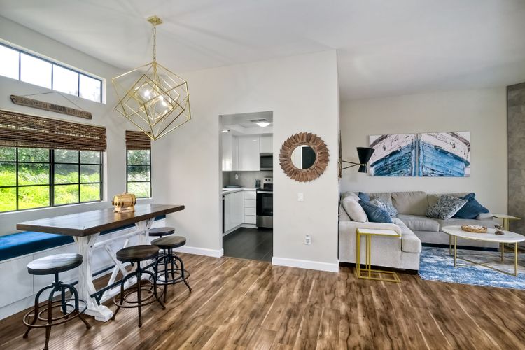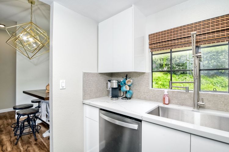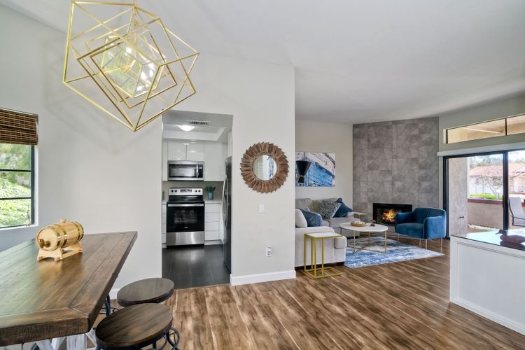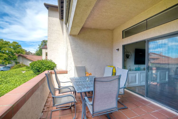 REMODELED & MOVE-IN READY! A Stunning Villa located in the upscale community of Calavera Hills of West Carlsbad. This 2 Bedroom 2 Bath custom ground-level condo includes Vaulted Ceilings, a Remodeled Kitchen with Maple Glossed cabinets, granite countertops, farmhouse sink, stainless steel appliance suite & textured/tile backsplash. Dining area with added breakfast nook with storage in front of a bay window & spectacular Chandelier. Open the custom automatic blinds to let in plenty of natural light! Enjoy the expansive modern-tiled fireplace, full-sized laundry in unit & luxury flooring throughout. Rest easy in a large master bedroom suite with new vanity, dual sinks, fixtures & walk-in closet. Enjoy your morning coffee or evening wine on the spacious patio with views of the Preserve. Plenty of parking included- detached 1-Car Garage, 1 Assigned Parking Space, & Guest Parking. Looking for a beach retreat? Drop a pin here...located off Carlsbad Village Drive this Condo is just minutes from Tamarack Surf beach, Carlsbad Lagoon water-sports & Carlsbad Village shopping, dining, coffee shops or entertainment. Plus close to walking trails & award-winning schools.