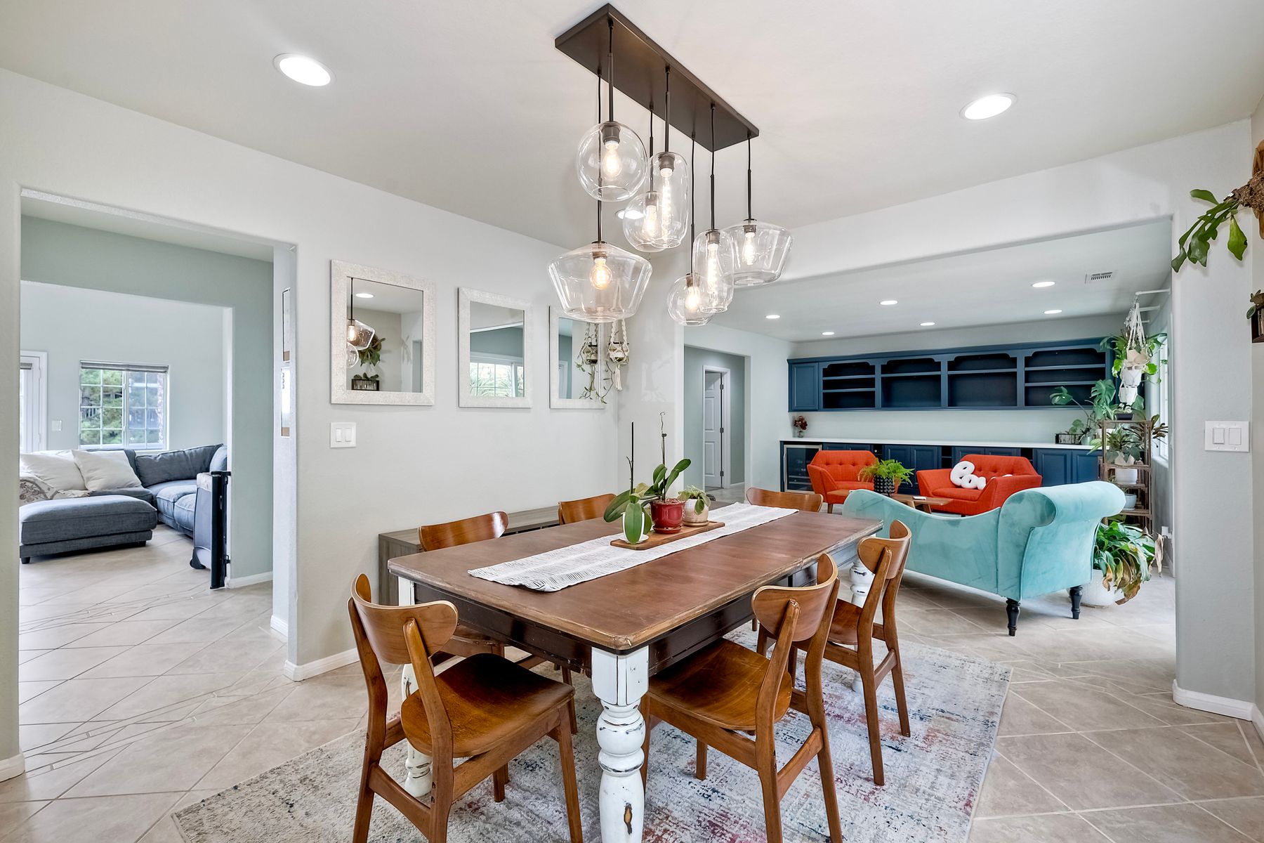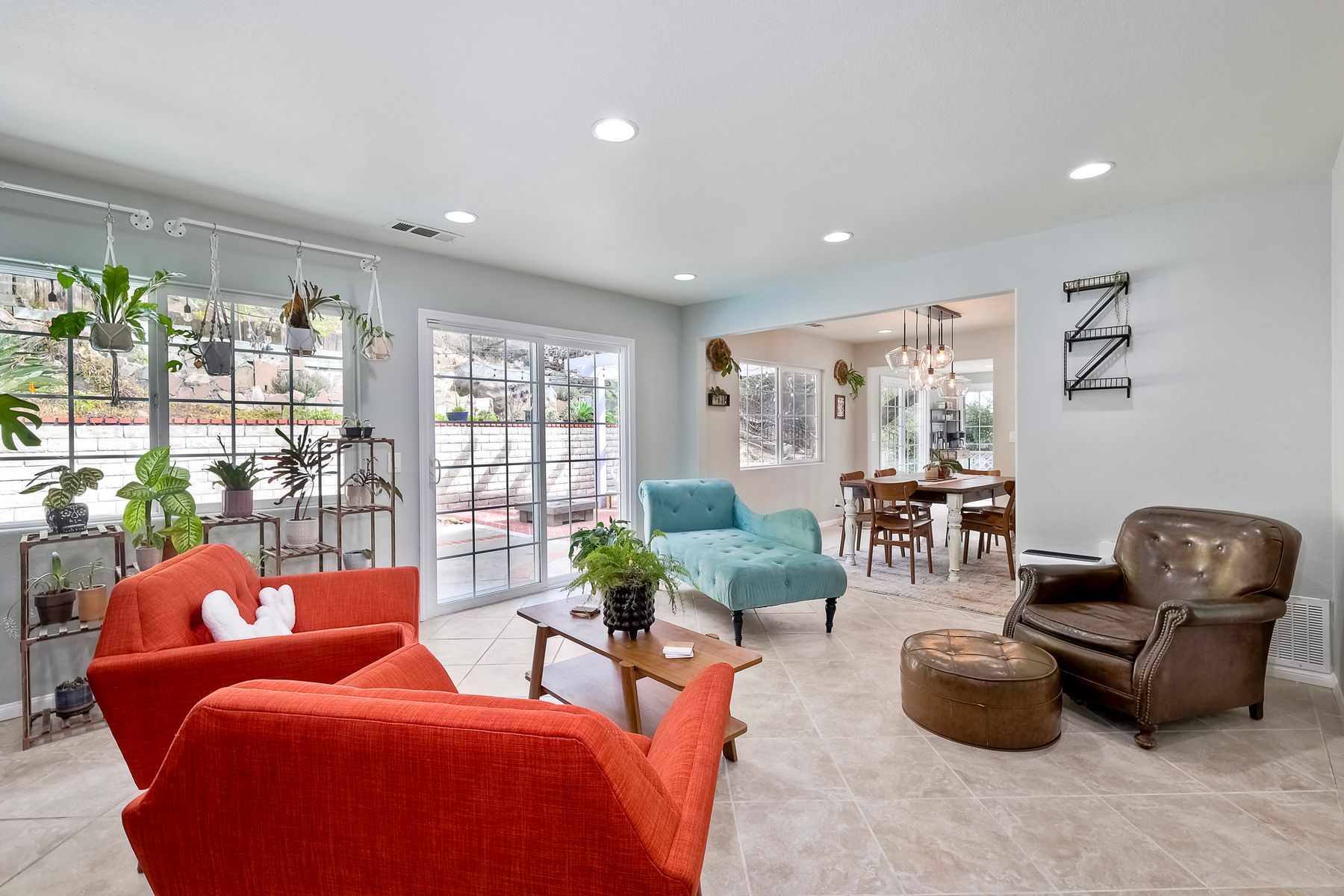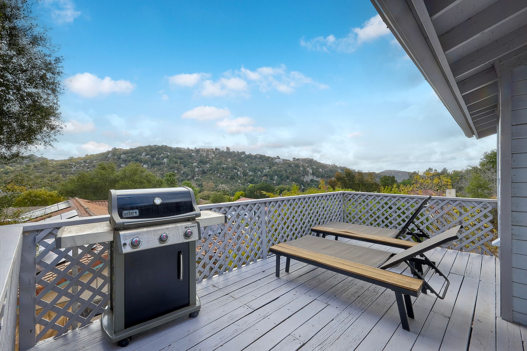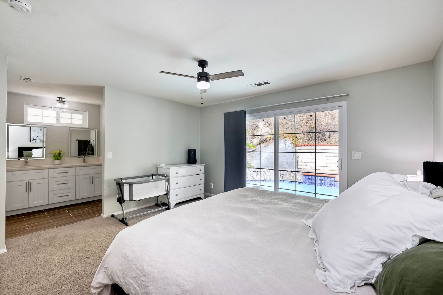 Welcome home to this gorgeous Hidden Meadows property that was completely remodeled in 2019. This 3-bedroom, 3-bathroom, with bonus office is a must see. Located on a dead end street offering privacy and minimal traffic. The kitchen includes quartz countertops, quiet-close cabinets, stainless steel appliances, and breakfast nook with bar seating. The kitchen is open to the large living room with fireplace and french doors to the deck to view those gorgeous sunsets and mountains. The functioning family room offers built-in cabinets, bar area, and beverage/wine frig for intimate gatherings. The primary suite is spacious with a walk-in closet and private bathroom. Tons of natural light throughout this home. The bonus room downstairs is perfect for office/media/gaming. There’s also a laundry room and full bath down. Entertainers dream yard with pool/spa, both resurfaced in 2019. Don't miss the avocado trees, citrus trees, and well manicured front yard! Oversized two-car garage at approx 750 sq ft and 33 feet deep with enough space for a workout room, shop, and ample driveway parking. Community pool, tennis courts, clubhouse, and walking trails. Just take a short stroll to the Meadows Market & Deli, grab a bite at the Side Yard Public House, or play a round of golf at Boulder Oaks Golf Course.