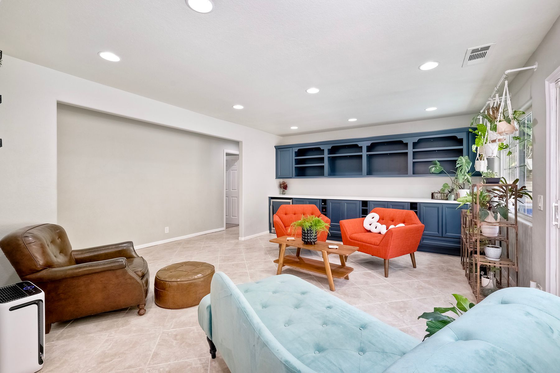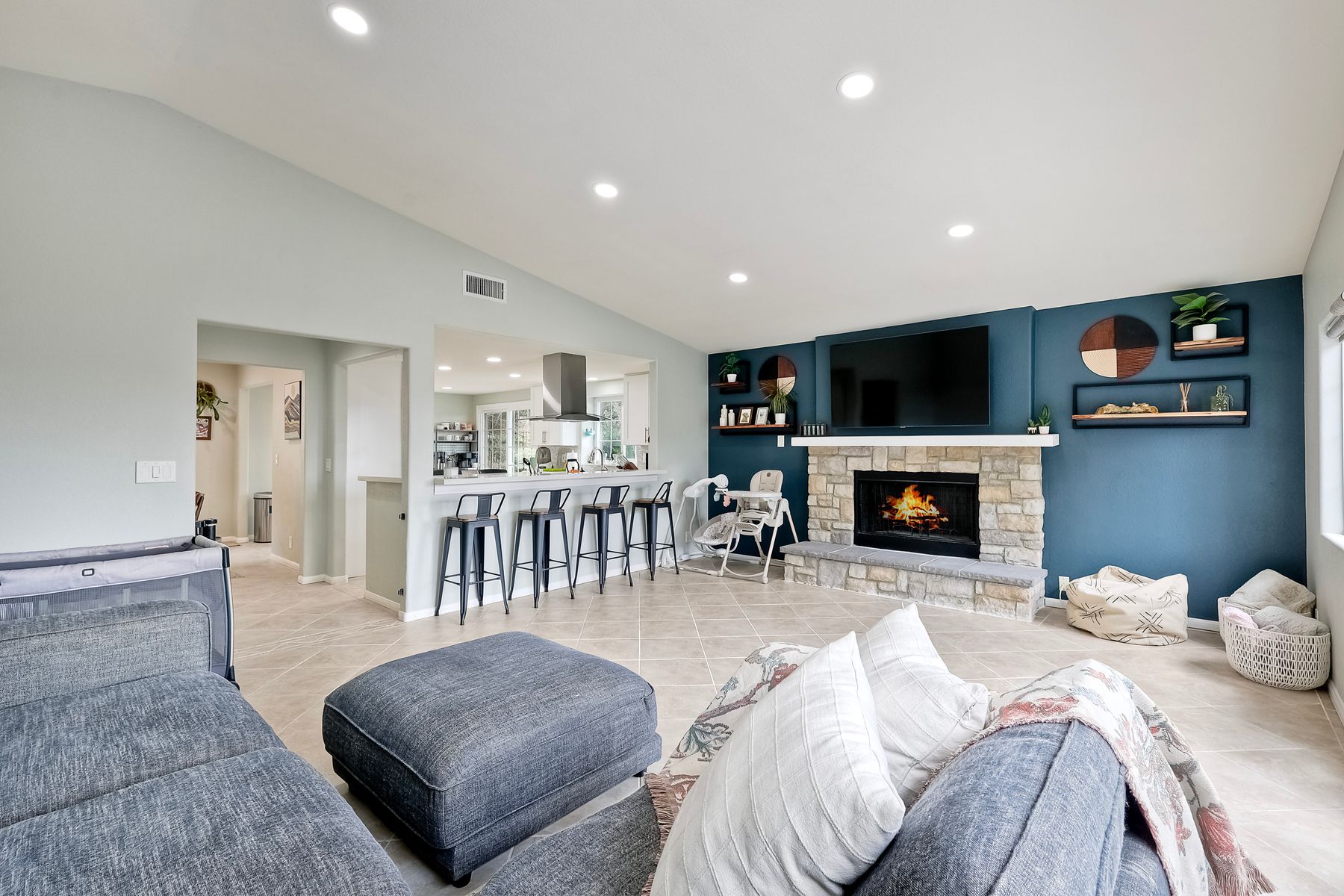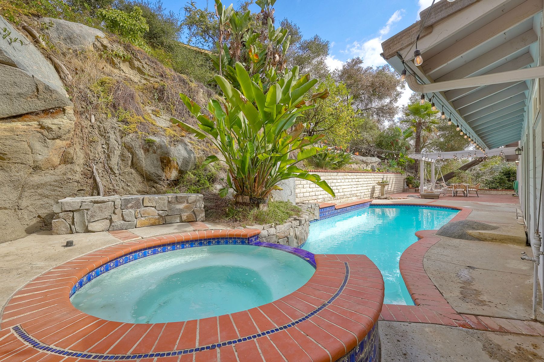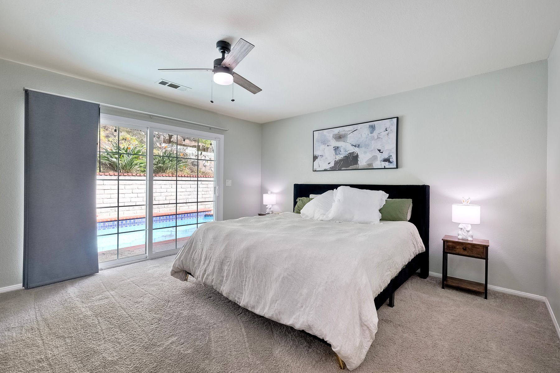 Welcome home to this gorgeous Hidden Meadows property that was completely remodeled in 2019. This 3-bedroom, 3-bathroom, with bonus office is a must see. Located on a dead end street offering privacy and minimal traffic. The kitchen includes quartz countertops, quiet-close cabinets, stainless steel appliances, and breakfast nook with bar seating. The kitchen is open to the large living room with fireplace and french doors to the deck to view those gorgeous sunsets and mountains. The functioning family room offers built-in cabinets, bar area, and beverage/wine frig for intimate gatherings. The primary suite is spacious with a walk-in closet and private bathroom. Tons of natural light throughout this home. The bonus room downstairs is perfect for office/media/gaming. There’s also a laundry room and full bath down. Entertainers dream yard with pool/spa, both resurfaced in 2019. Don't miss the avocado trees, citrus trees, and well manicured front yard! Oversized two-car garage at approx 750 sq ft and 33 feet deep with enough space for a workout room, shop, and ample driveway parking. Community pool, tennis courts, clubhouse, and walking trails. Just take a short stroll to the Meadows Market & Deli, grab a bite at the Side Yard Public House, or play a round of golf at Boulder Oaks Golf Course.