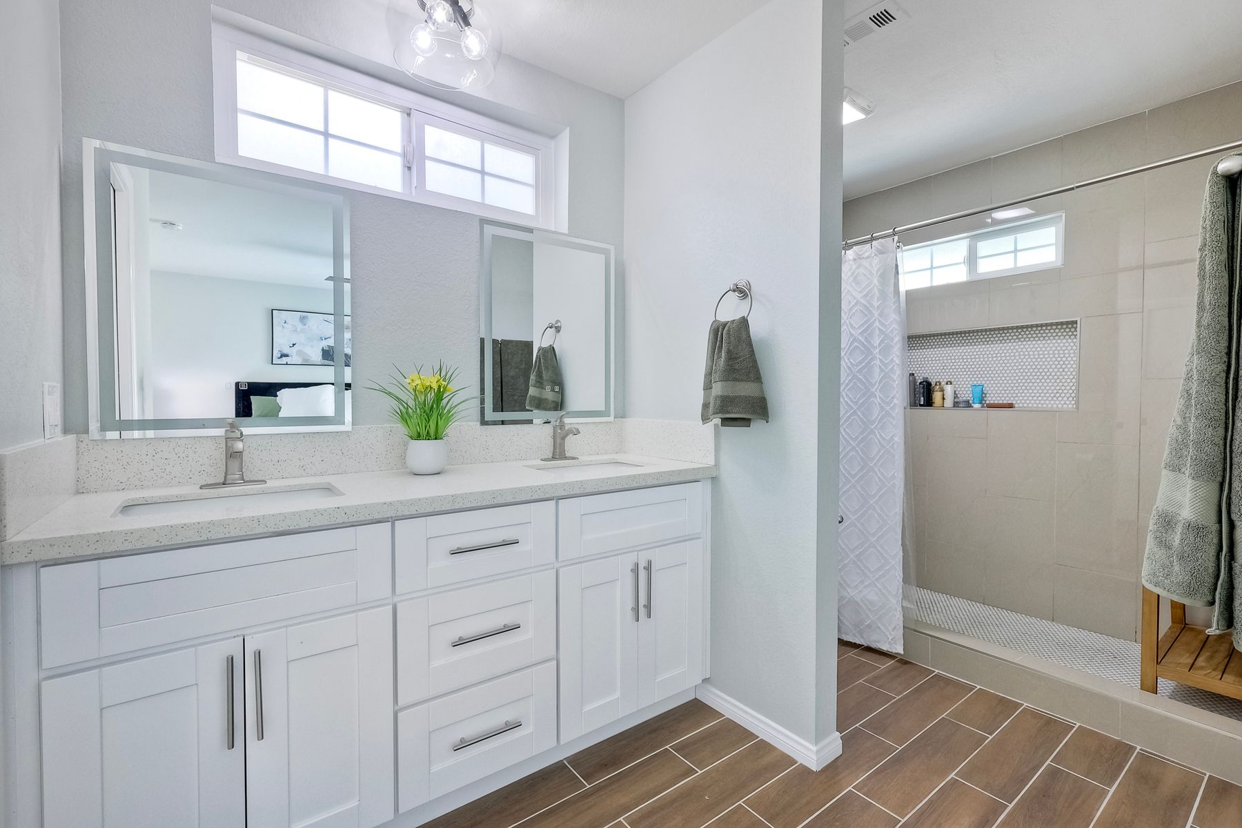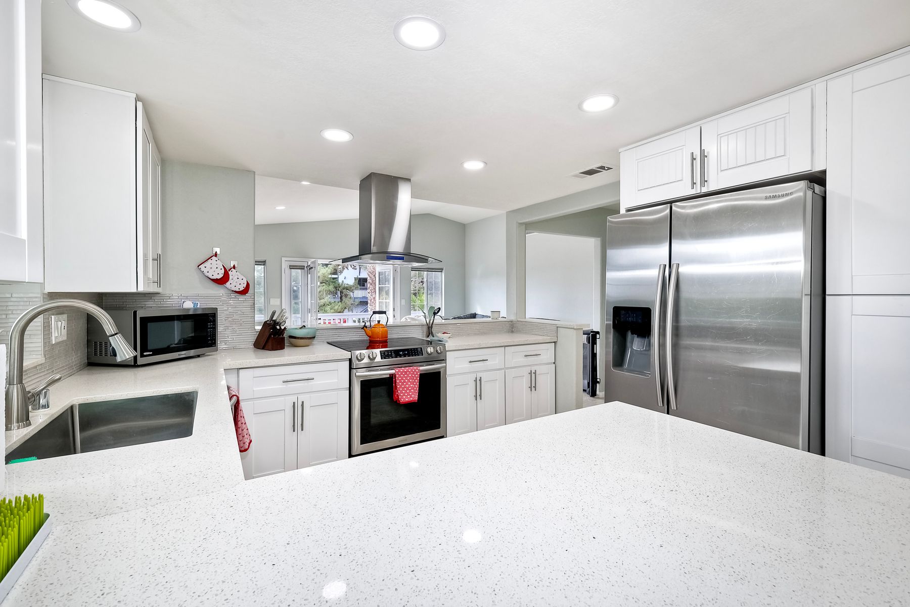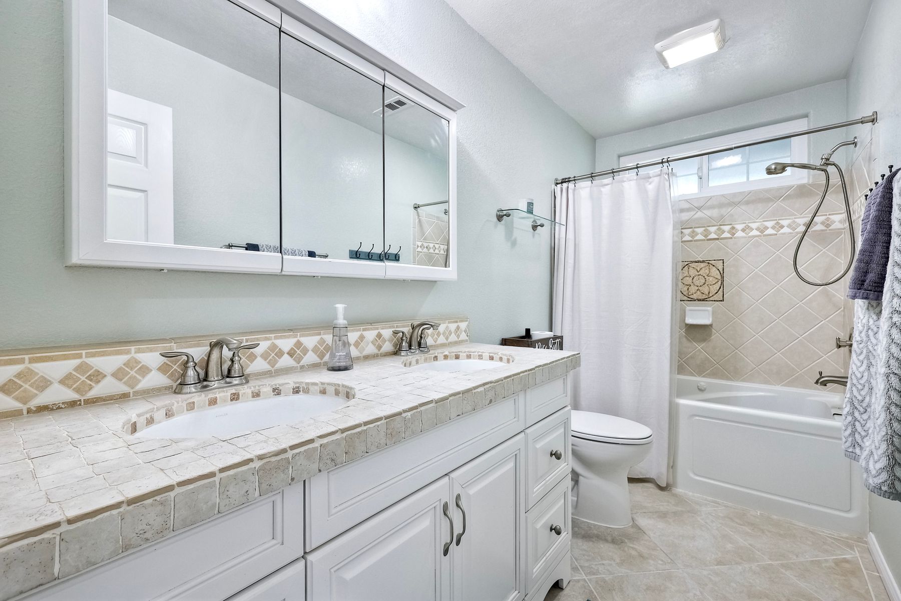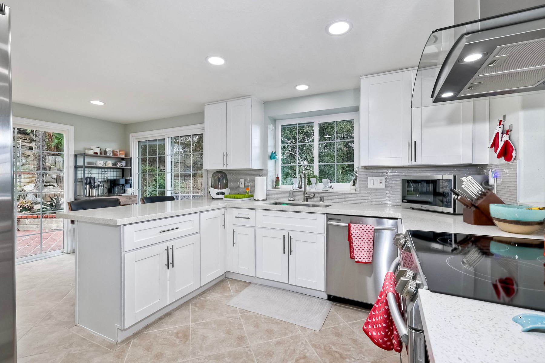Welcome home to this gorgeous Hidden Meadows property that was completely remodeled in 2019. This 3-bedroom, 3-bathroom, with bonus office is a must see. Located on a dead end street offering privacy and minimal traffic. The kitchen includes quartz countertops, quiet-close cabinets, stainless steel appliances, and breakfast nook with bar seating. The kitchen is open to the large living room with fireplace and french doors to the deck to view those gorgeous sunsets and mountains. The functioning family room offers built-in cabinets, bar area, and beverage/wine frig for intimate gatherings. The primary suite is spacious with a walk-in closet and private bathroom. Tons of natural light throughout this home. The bonus room downstairs is perfect for office/media/gaming. There’s also a laundry room and full bath down. Entertainers dream yard with pool/spa, both resurfaced in 2019. Don't miss the avocado trees, citrus trees, and well manicured front yard! Oversized two-car garage at approx 750 sq ft and 33 feet deep with enough space for a workout room, shop, and ample driveway parking. Community pool, tennis courts, clubhouse, and walking trails. Just take a short stroll to the Meadows Market & Deli, grab a bite at the Side Yard Public House, or play a round of golf at Boulder Oaks Golf Course.
