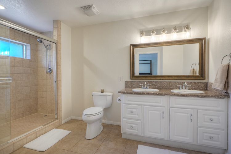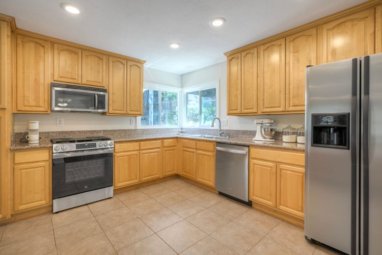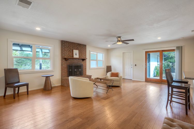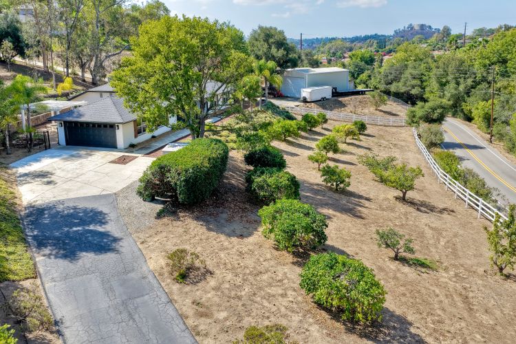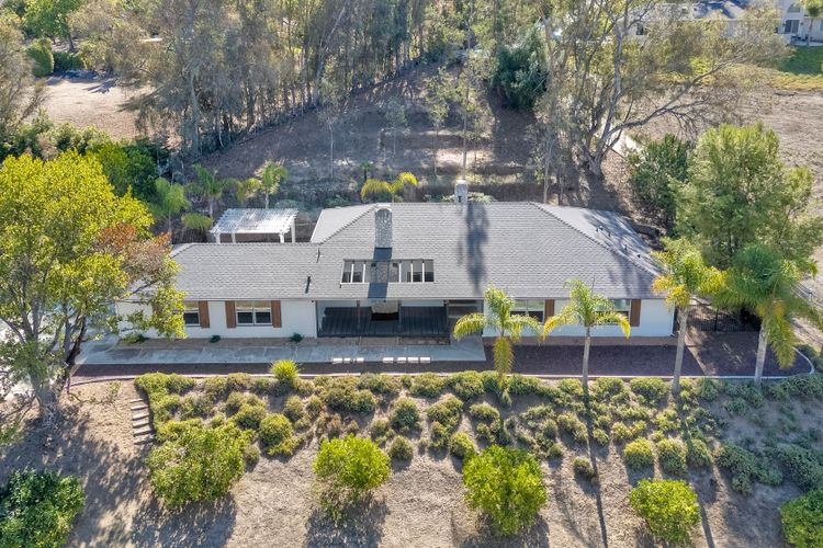 This single-level custom home is located in Fallbrook. This property offers a unique blend of comfort, space, and privacy. The home features 3 bedrooms and 2.5 baths, situated on a spacious 42,000+ sq ft lot. Key highlights include a large country-style kitchen equipped with stainless steel appliances and a new gas range/oven, ensuring a modern and functional cooking space. The property also boasts a new roof, providing peace of mind for years to come. Inside, you'll find a welcoming family room and a formal entry leading to the living room. The bedrooms are spacious, with a particularly large primary bedroom offering a comfortable retreat. The home has been updated with upgraded doors and windows, enhancing both aesthetics and energy efficiency. Flooring throughout includes elegant hickory plank, durable tile, and cozy carpet in the bedrooms. Additional interior features include granite countertops, two wood-burning fireplaces in the family and living rooms, plenty of storage space. Practical amenities such as an extra-long garage accommodating 3 cars, central AC, and ceiling fans are also included. The exterior of the property is equally impressive with fully irrigated landscaping, featuring a charming small orchard. This orchard includes a variety of mature fruit trees such as orange, grapefruit, plum, lemon, lime, pomegranate, and pear, offering fresh produce right at your doorstep. You'll love entertaining on the ample outdoor patio. The home's central location in Fallbrook provides easy access to downtown shopping and is conveniently close to the 15 & 76 freeways, balancing a peaceful living environment with accessibility.