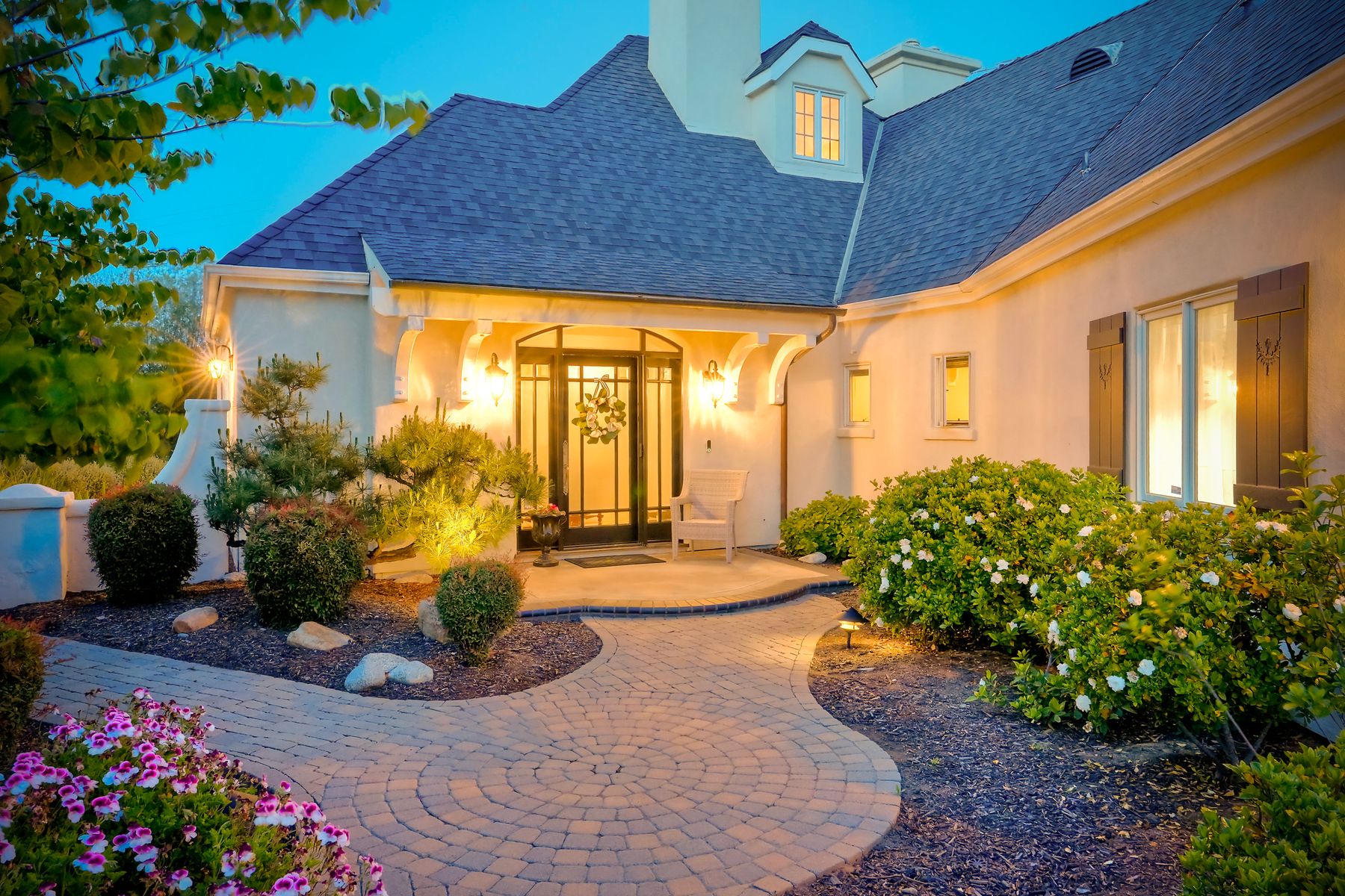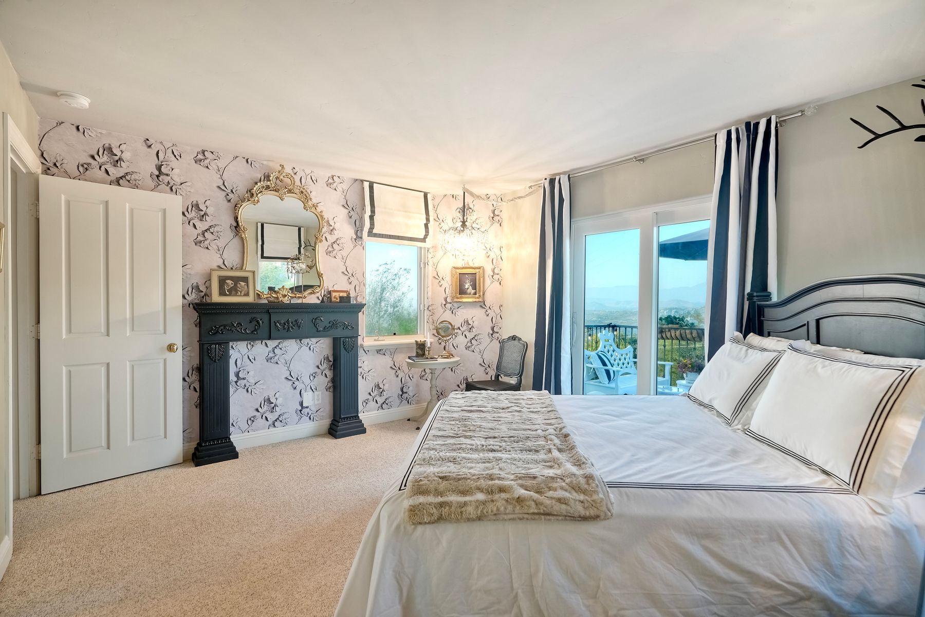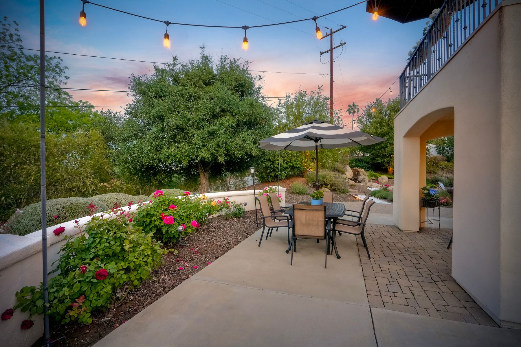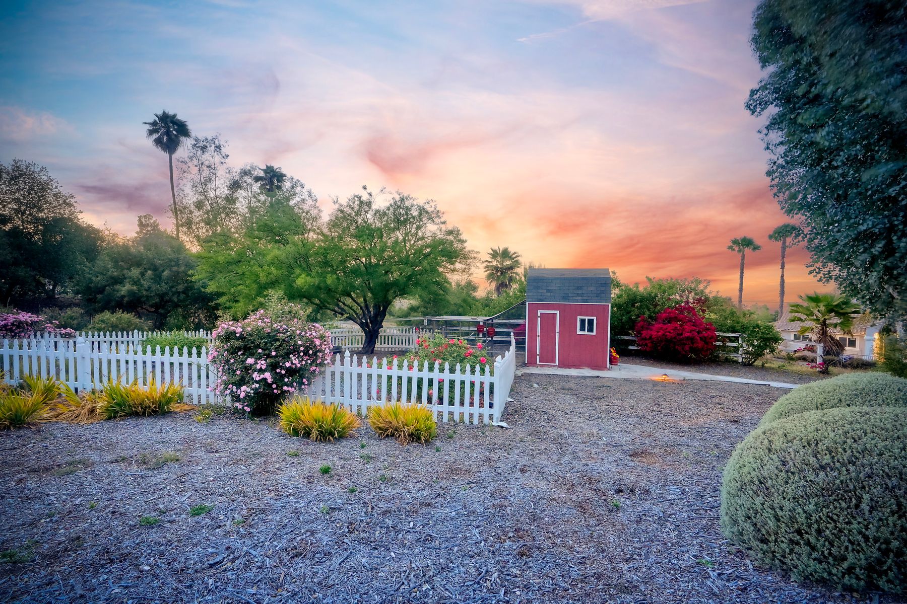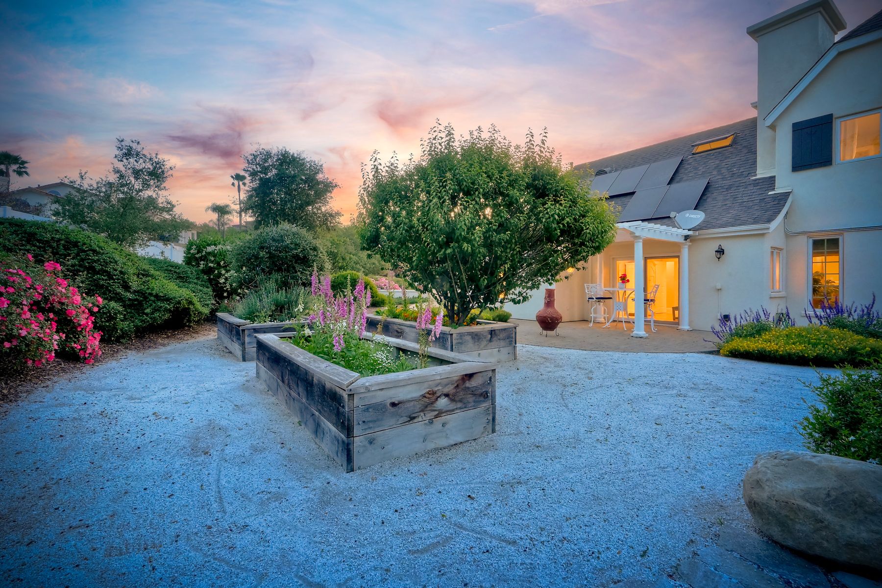 Meet "Petit Maison De Joie", a gorgeous estate where storybook charm meets serene luxury in this 3-bedroom, 2.5 bath French chateau-style home. Tucked away at the end of a quiet cul-de-sac on over an acre of land, this home has NO HOA! Plenty of space to store your Boat or RV! From the long, private driveway to the fairy tale exterior, this home offers beauty, privacy, and everyday comfort in equal measure. The spacious primary MASTER SUITE is located on the FIRST FLOOR and features a clawfoot tub, a large MARBLE walk-in shower, and even remote-controlled toilets with auto-lift lids, a thoughtful touch of modern convenience. There are gorgeous wood floors throughout. Two additional bedrooms and a full bath are upstairs, with access to a private balcony overlooking the backyard. Home has transferable SOLAR, Built-in stainless steel newer appliances in kitchen with lovely crystal chandelier and many other RECENT UPGRADES! Outdoors, unwind in a tranquil setting complete with a waterfall, ROSE GARDENS, a gentle stream, and a charming chicken coop on this gorgeous 1.06 ACRE LOT! Whether you're sipping your morning coffee or enjoying a glass of wine at sunset, this peaceful setting makes it hard to believe you're only 35 minutes from the Beach! This is more than a home—it's a retreat you’ll never want to leave.