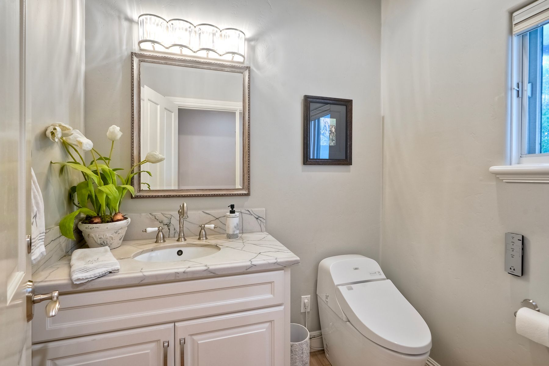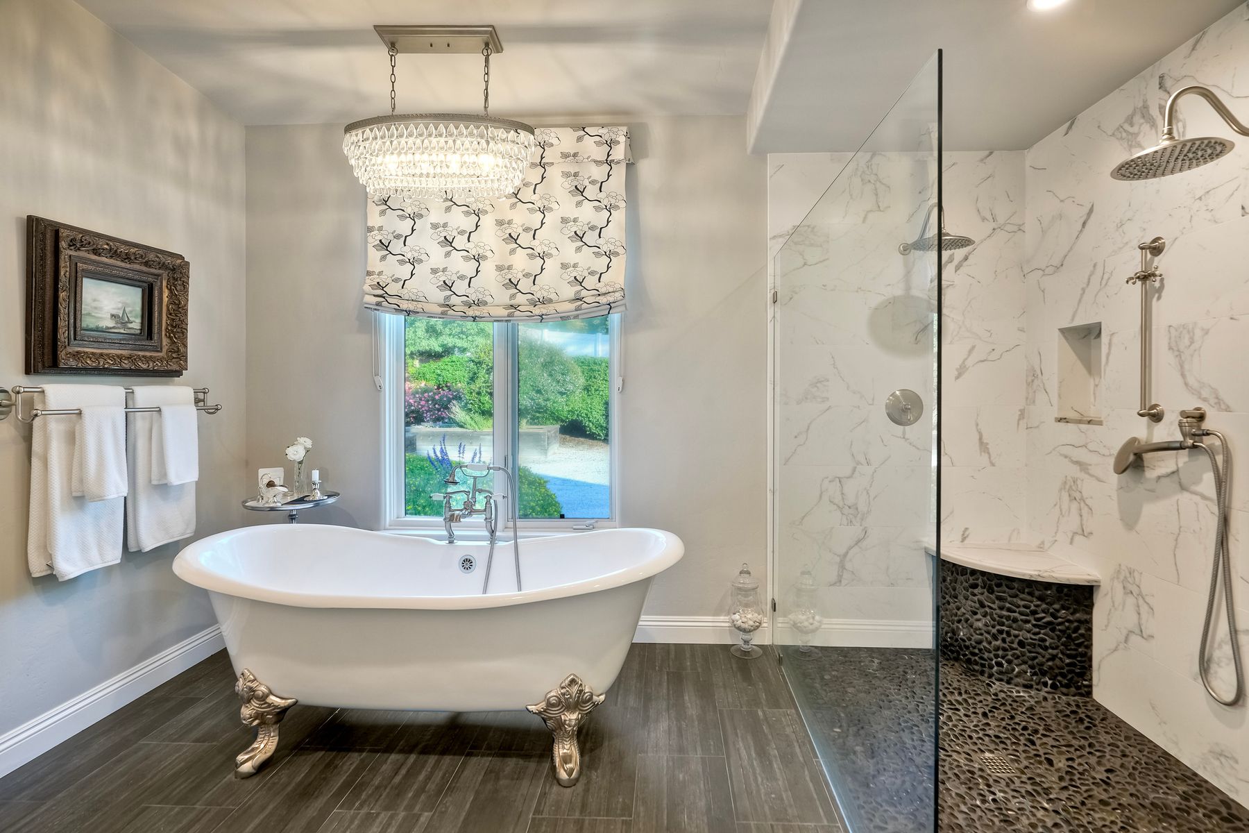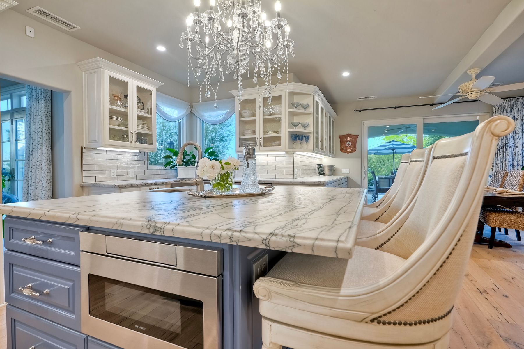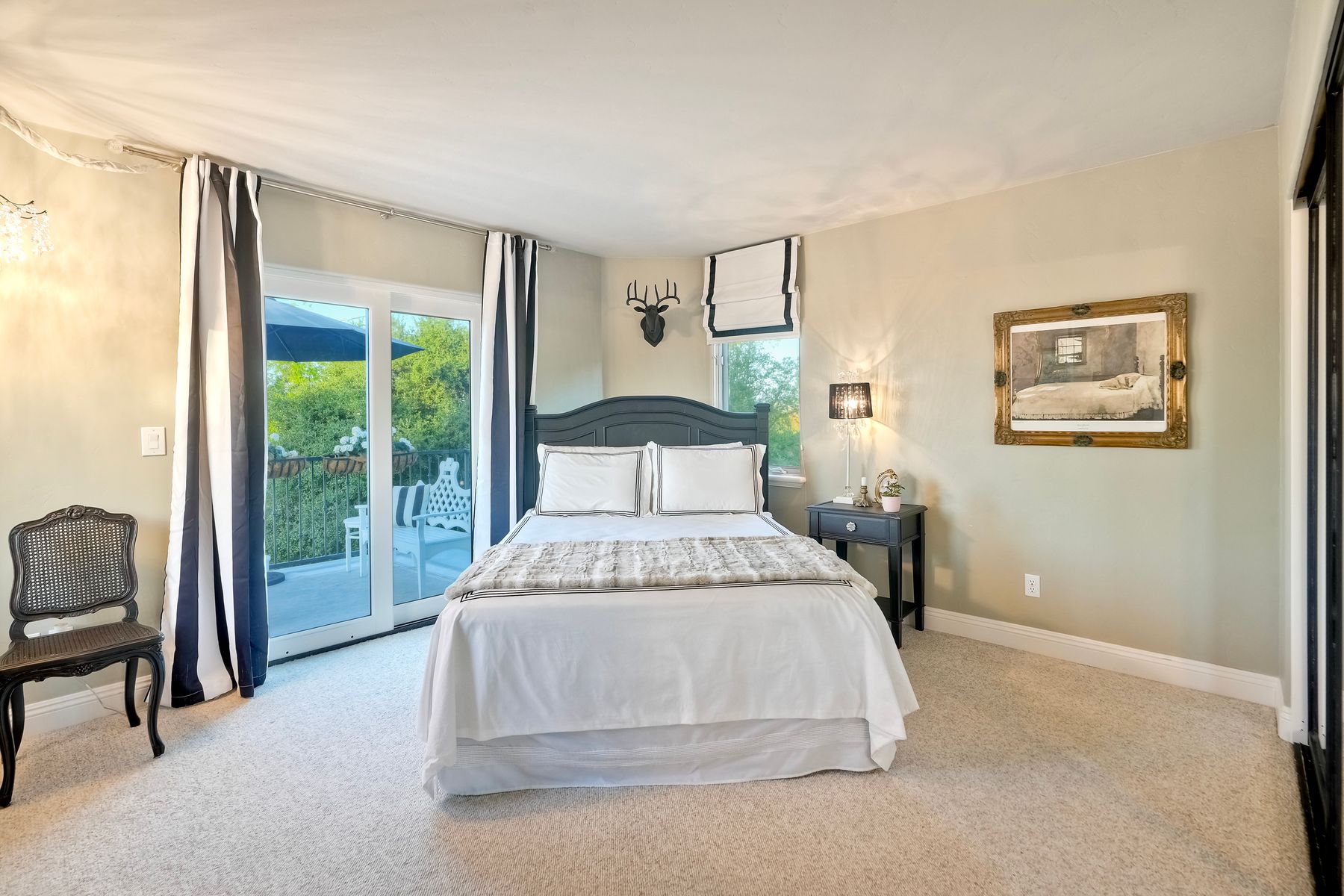 Meet "Petit Maison De Joie", a gorgeous estate where storybook charm meets serene luxury in this 3-bedroom, 2.5 bath French chateau-style home. Tucked away at the end of a quiet cul-de-sac on over an acre of land, this home has NO HOA! Plenty of space to store your Boat or RV! From the long, private driveway to the fairy tale exterior, this home offers beauty, privacy, and everyday comfort in equal measure. The spacious primary MASTER SUITE is located on the FIRST FLOOR and features a clawfoot tub, a large MARBLE walk-in shower, and even remote-controlled toilets with auto-lift lids, a thoughtful touch of modern convenience. There are gorgeous wood floors throughout. Two additional bedrooms and a full bath are upstairs, with access to a private balcony overlooking the backyard. Home has transferable SOLAR, Built-in stainless steel newer appliances in kitchen with lovely crystal chandelier and many other RECENT UPGRADES! Outdoors, unwind in a tranquil setting complete with a waterfall, ROSE GARDENS, a gentle stream, and a charming chicken coop on this gorgeous 1.06 ACRE LOT! Whether you're sipping your morning coffee or enjoying a glass of wine at sunset, this peaceful setting makes it hard to believe you're only 35 minutes from the Beach! This is more than a home—it's a retreat you’ll never want to leave.