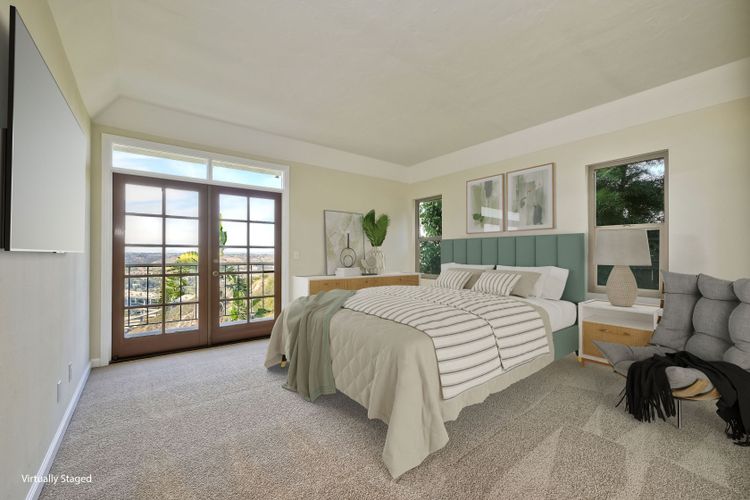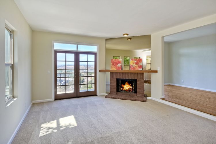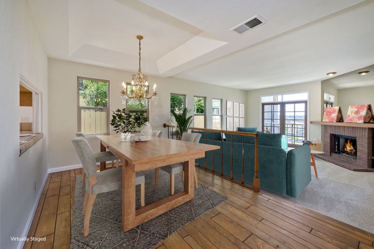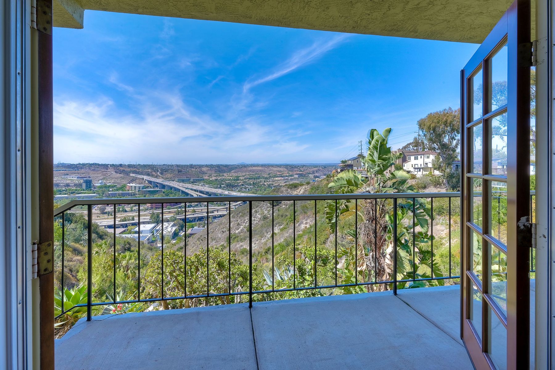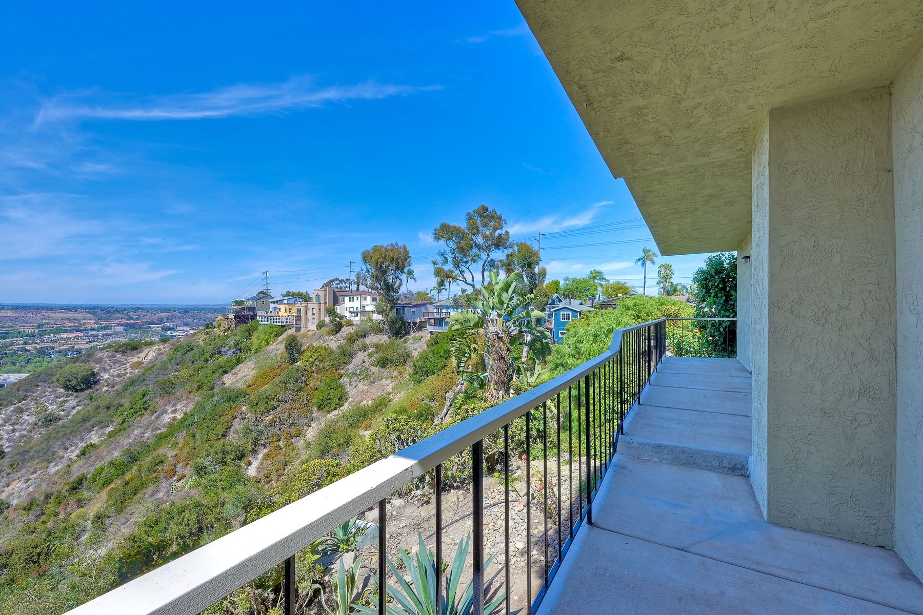 Among the most charming residences in Normal Heights and North of Adams Avenue... Rarely available, spacious single level, first floor condo with panoramic views and off-street parking. Perched above Mission Valley, gaze all the way to the mountains in North County! Lives much like a detached home. This is one of 3 units in a self-managed HOA. The main rooms are oriented for privacy and to maximize views. Terrific function and flow. 1470 square feet, 2 Bedrooms plus an office, 2 full bathrooms, generous-sized master, French doors open to expansive balcony. Step down into the spacious living room and onto a balcony that runs the entire expanse of the unit. Gas fireplace, air conditioning, furnace, electric blinds on some windows. Master bath features a dual vanity and a separate tub and shower. Abundant storage inside the home and in the single car garage. One bathroom has been remodeled, brand new carpet and fresh paint throughout. Incredible opportunity for someone wanting easy access to the freeway, walking distance to the boutiques and restaurants in the Adams Avenue district, but with the serenity of a quiet, beautiful residential neighborhood. Curbside charm in a condo that lives like a detached home. 1470 square feet, 2 bedrooms, a sunny office, 2 full bathrooms (master bath is enormous!), and amazing views. Privacy, one level, brand new carpet and fresh paint. Kitchen has a garden window, and eat-in space for a wee table and chairs, plenty of storage and all appliances convey to the buyer. Stunning, ever-changing views, too. This home is a "must see" to appreciate the rare view and the quiet allure of the location. Super walkable neighborhood, too!
