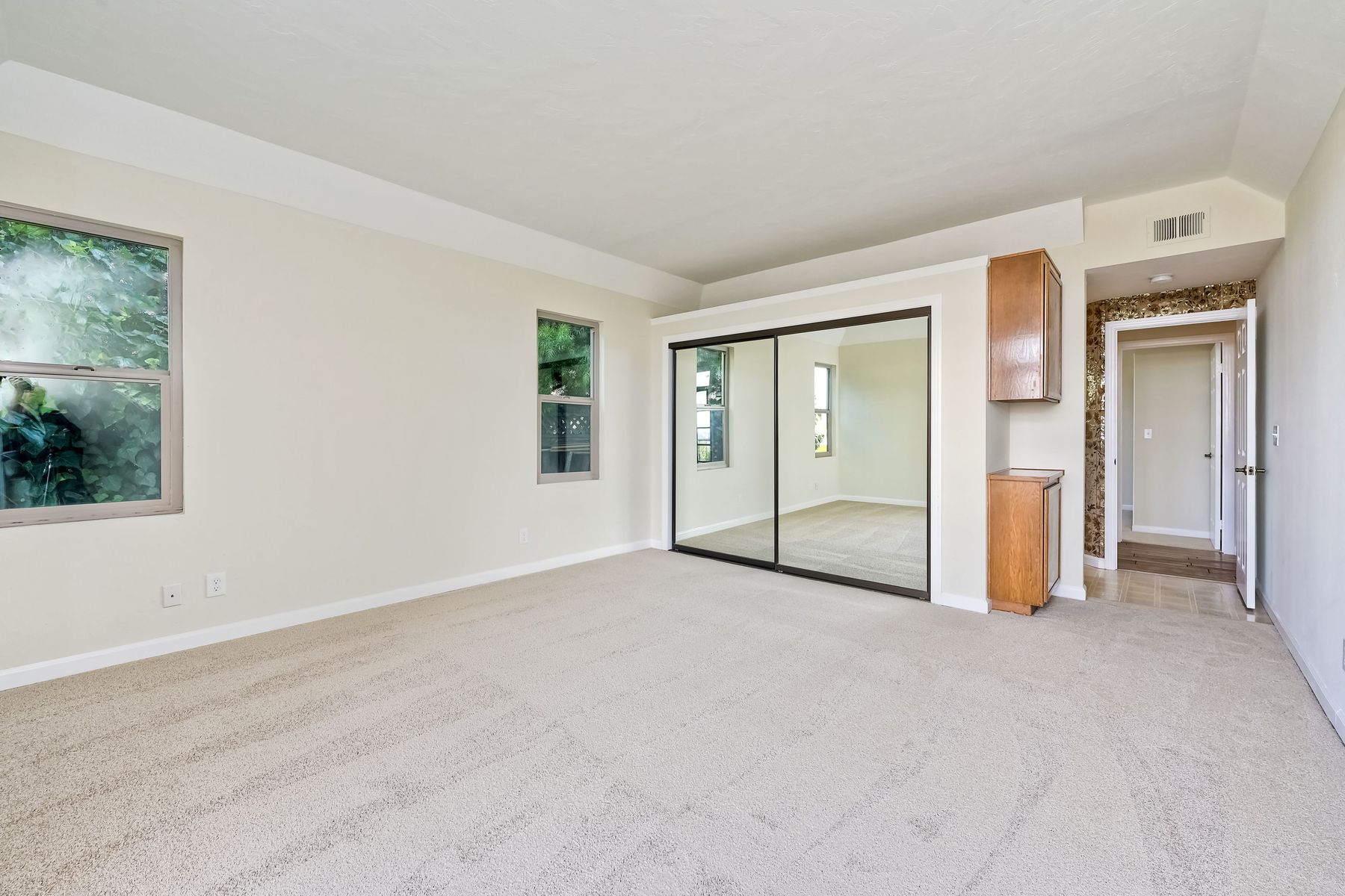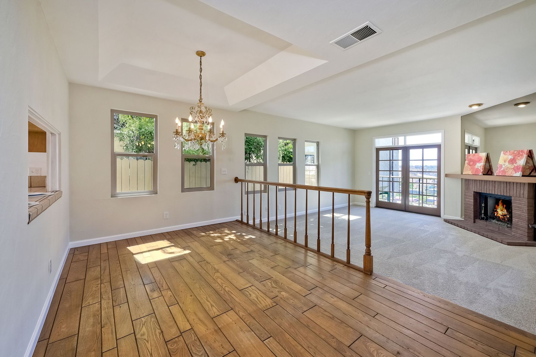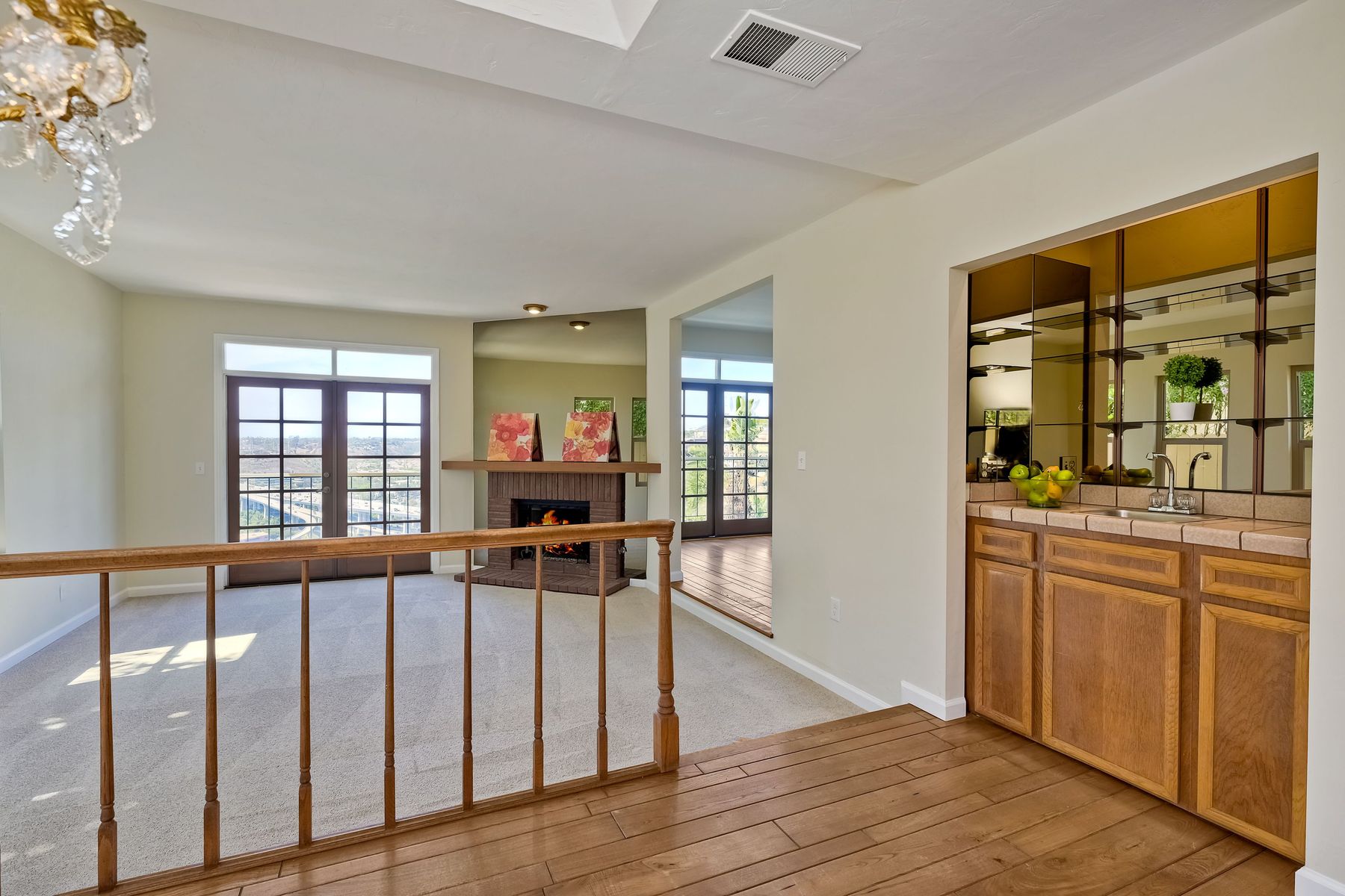 Among the most charming residences in Normal Heights and North of Adams Avenue... Rarely available, spacious single level, first floor condo with panoramic views and off-street parking. Perched above Mission Valley, gaze all the way to the mountains in North County! Lives much like a detached home. This is one of 3 units in a self-managed HOA. The main rooms are oriented for privacy and to maximize views. Terrific function and flow. 1470 square feet, 2 Bedrooms plus an office, 2 full bathrooms, generous-sized master, French doors open to expansive balcony. Step down into the spacious living room and onto a balcony that runs the entire expanse of the unit. Gas fireplace, air conditioning, furnace, electric blinds on some windows. Master bath features a dual vanity and a separate tub and shower. Abundant storage inside the home and in the single car garage. One bathroom has been remodeled, brand new carpet and fresh paint throughout. Incredible opportunity for someone wanting easy access to the freeway, walking distance to the boutiques and restaurants in the Adams Avenue district, but with the serenity of a quiet, beautiful residential neighborhood. Curbside charm in a condo that lives like a detached home. 1470 square feet, 2 bedrooms, a sunny office, 2 full bathrooms (master bath is enormous!), and amazing views. Privacy, one level, brand new carpet and fresh paint. Kitchen has a garden window, and eat-in space for a wee table and chairs, plenty of storage and all appliances convey to the buyer. Stunning, ever-changing views, too. This home is a "must see" to appreciate the rare view and the quiet allure of the location. Super walkable neighborhood, too!