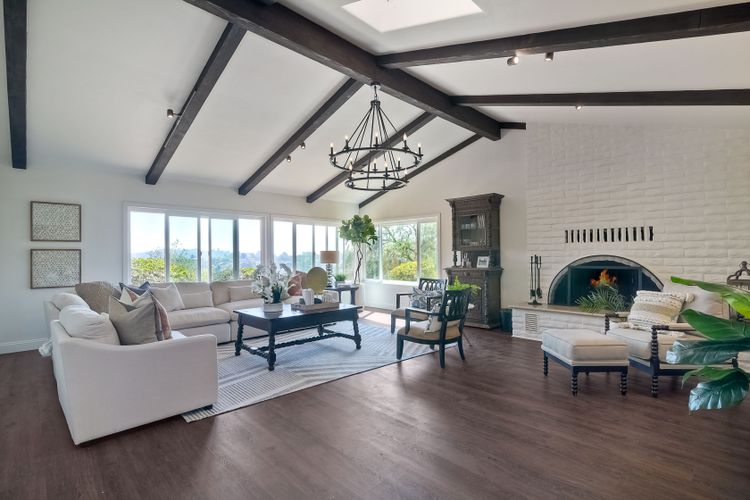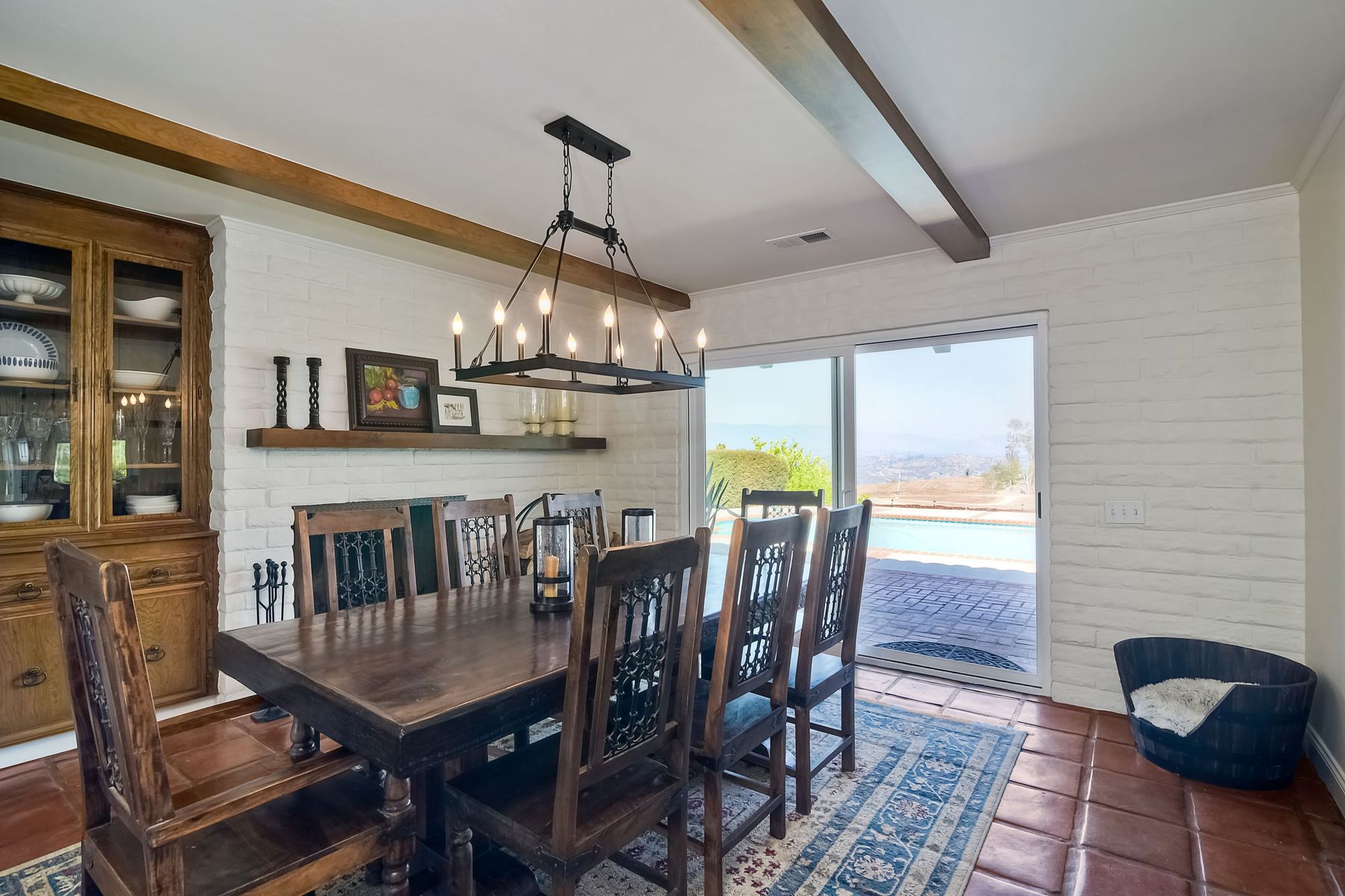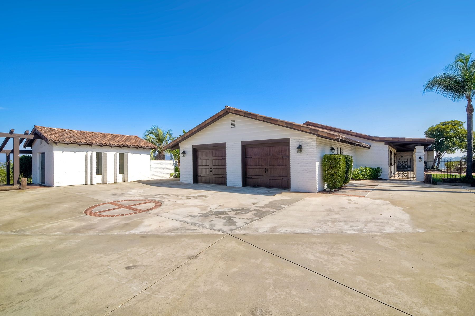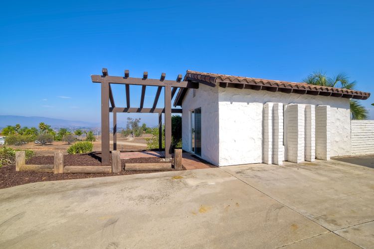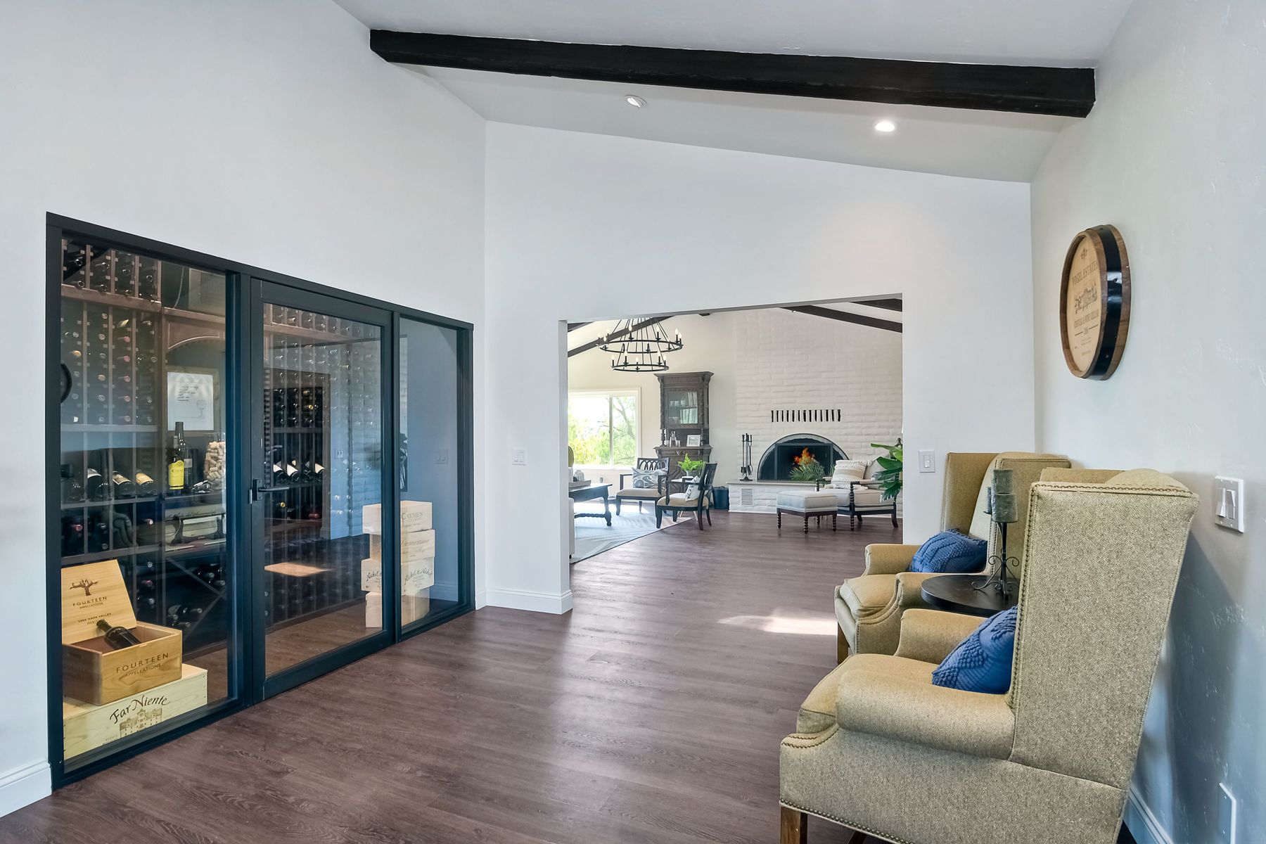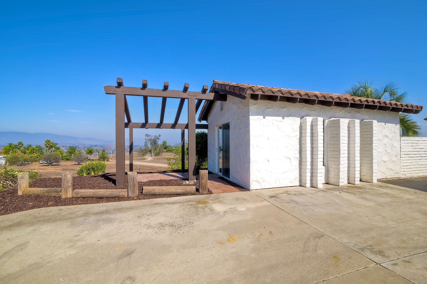Driving up the private drive you realize you're about to experience something exceptional. This classic Hacienda style hilltop home in the coveted Hidden Meadows community of north Escondido has been beautifully renovated. The covered porch entry leads to decorative wood double doors and is surrounded by a brick courtyard, lovely fountain, artificial turf and low maintenance landscaping. The dramatic foyer is full of light, accented with a rich tile floor and leads to a custom wine room with glass doors. The adjacent living room has a dark beam vaulted ceiling, painted brick walls, a Spanish style fireplace and rich dark vinyl plank flooring which runs throughout the living space. See Supplement . . . Move into a cozy family room with beamed ceilings, multiple windows and casual dining area with back patio and kitchen access.The chef's kitchen is stunning with architectural features, stainless steel appliances, 6 burner gas stove, expansive white cabinets with quartz countertops, beautiful tile backsplash, dark wood island with seating for 4, pendant lighting and a large window open to the sparkling pool and wonderful view.The kitchen opens to the formal dining room with its dramatic beamed ceiling, elegant chandelier, inviting fireplace, built in wood cabinets and sliding glass door to the back patio creating a wonderful place to entertain. The main master suite is an oasis with calm colors, cozy carpet, an oversized fan and an expansive sliding glass door to the backyard. The attached bath is spacious and beautifully finished. A second master at the opposite end of the house is perfect for an in-law suite or guest room offering lots of space and beautiful finishes in the bathroom. An optional bedroom is being used as an office with dark barn doors being utilized as closet doors which compliment the dark wood plank floors and wood accents. Another guest room, full hall bath, and full size laundry room complete the flow of this wonderful floorplan. Separate from the house is a large casita with tile floors, 2 sliding glass doors and a cooling fan, perfect for an office, workout room, project room, whatever accommodates your lifestyle. The backyard is an entertainers dream with a covered porch that runs almost the entire length of the home. The brick patio extends to multiple conversation areas, surrounds the sparkling pool and includes a rock firepit with a rock bench for seating. Access to a full bath and the breathtaking views of the Palomar Mounting range are the perfect combination for everyday relaxation or easy entertaining. This home sits on over an acre of land and includes a covered dog run, paid solar and a 3 car garage.