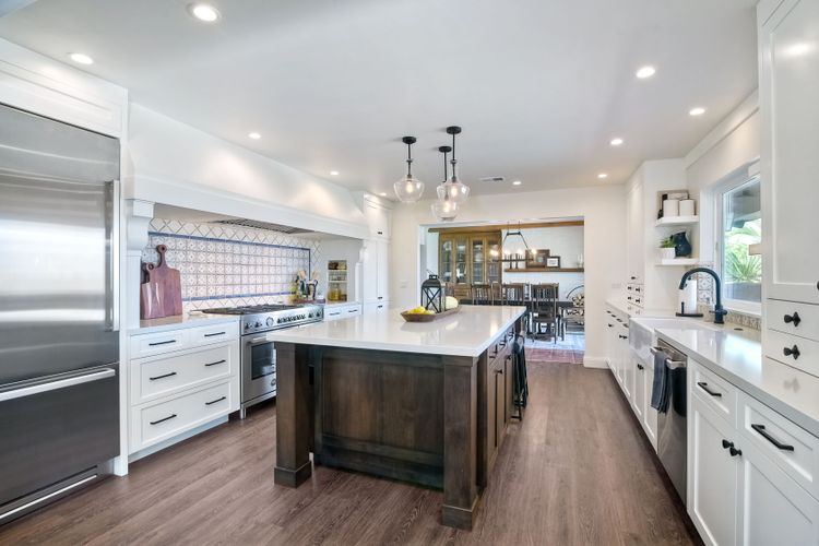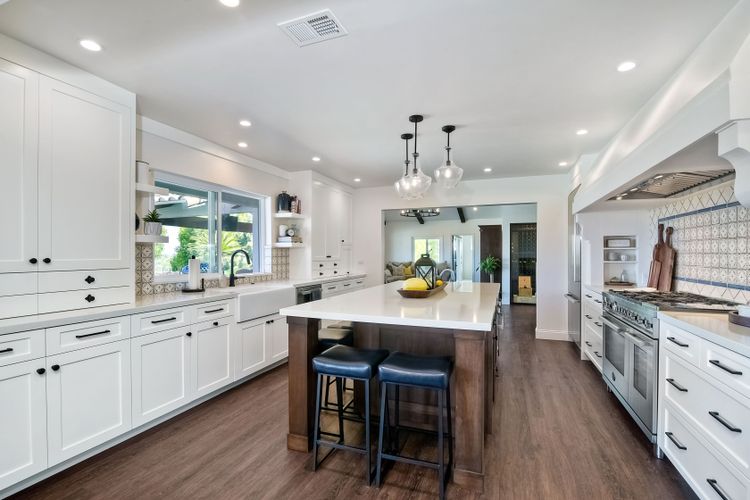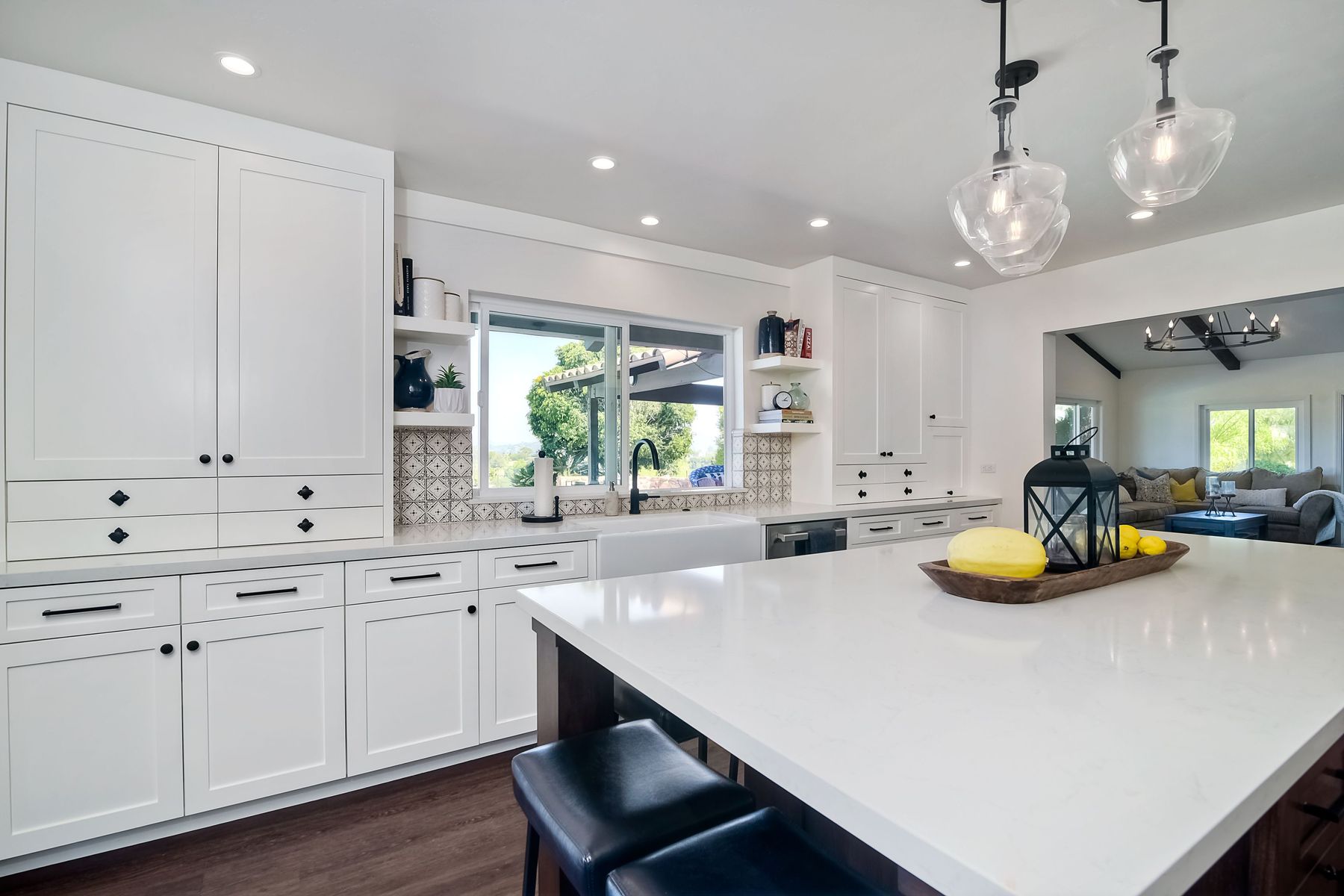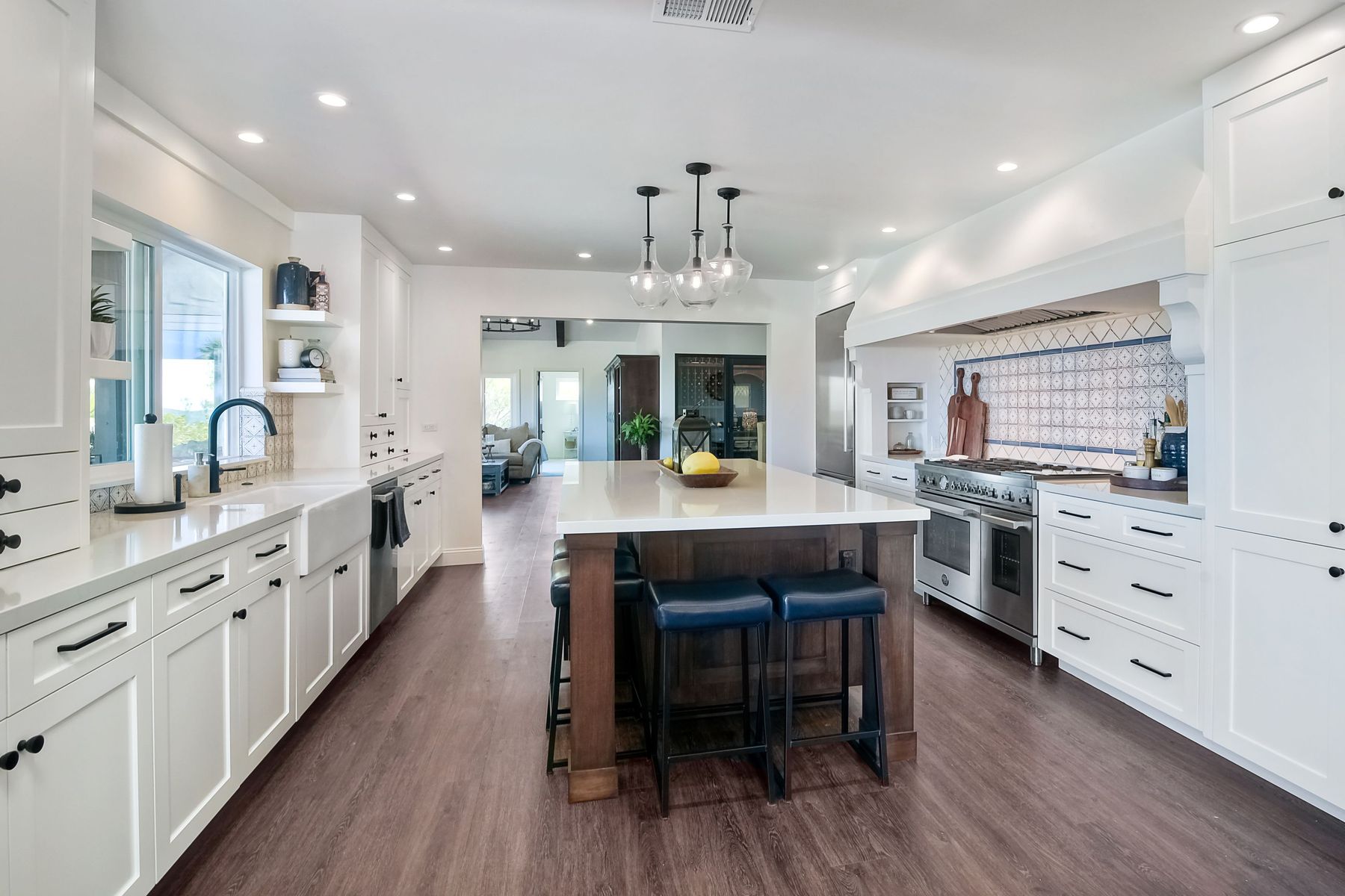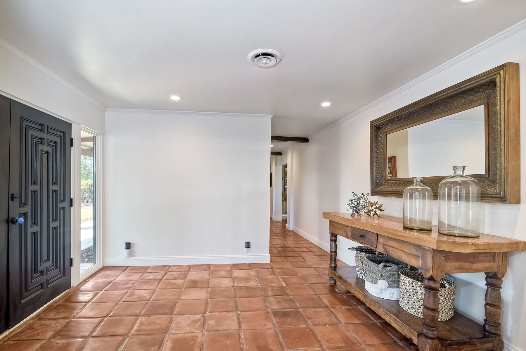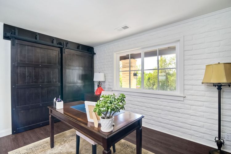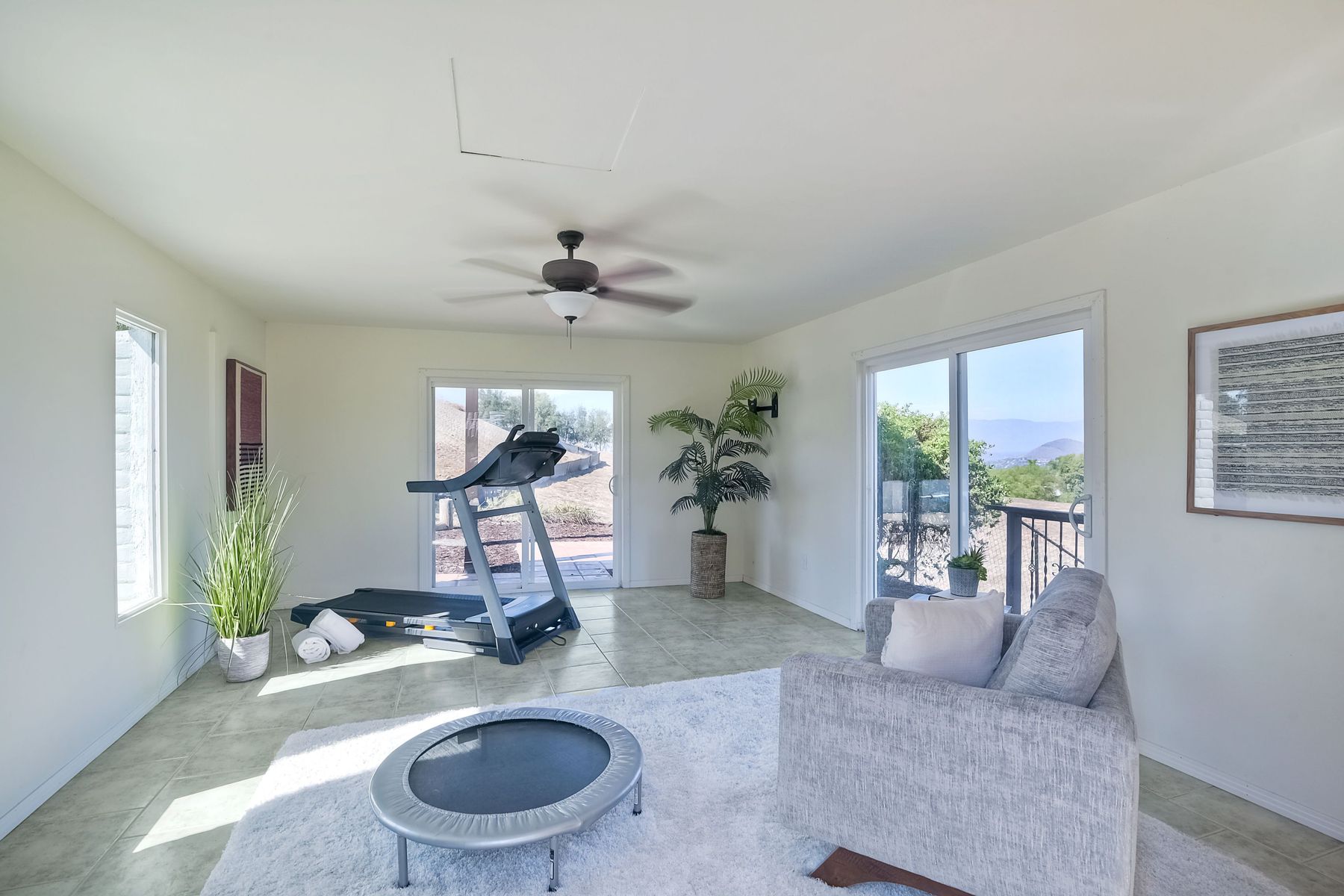 Driving up the private drive you realize you're about to experience something exceptional. This classic Hacienda style hilltop home in the coveted Hidden Meadows community of north Escondido has been beautifully renovated. The covered porch entry leads to decorative wood double doors and is surrounded by a brick courtyard, lovely fountain, artificial turf and low maintenance landscaping. The dramatic foyer is full of light, accented with a rich tile floor and leads to a custom wine room with glass doors. The adjacent living room has a dark beam vaulted ceiling, painted brick walls, a Spanish style fireplace and rich dark vinyl plank flooring which runs throughout the living space. See Supplement . . . Move into a cozy family room with beamed ceilings, multiple windows and casual dining area with back patio and kitchen access.The chef's kitchen is stunning with architectural features, stainless steel appliances, 6 burner gas stove, expansive white cabinets with quartz countertops, beautiful tile backsplash, dark wood island with seating for 4, pendant lighting and a large window open to the sparkling pool and wonderful view.The kitchen opens to the formal dining room with its dramatic beamed ceiling, elegant chandelier, inviting fireplace, built in wood cabinets and sliding glass door to the back patio creating a wonderful place to entertain. The main master suite is an oasis with calm colors, cozy carpet, an oversized fan and an expansive sliding glass door to the backyard. The attached bath is spacious and beautifully finished. A second master at the opposite end of the house is perfect for an in-law suite or guest room offering lots of space and beautiful finishes in the bathroom. An optional bedroom is being used as an office with dark barn doors being utilized as closet doors which compliment the dark wood plank floors and wood accents. Another guest room, full hall bath, and full size laundry room complete the flow of this wonderful floorplan. Separate from the house is a large casita with tile floors, 2 sliding glass doors and a cooling fan, perfect for an office, workout room, project room, whatever accommodates your lifestyle. The backyard is an entertainers dream with a covered porch that runs almost the entire length of the home. The brick patio extends to multiple conversation areas, surrounds the sparkling pool and includes a rock firepit with a rock bench for seating. Access to a full bath and the breathtaking views of the Palomar Mounting range are the perfect combination for everyday relaxation or easy entertaining. This home sits on over an acre of land and includes a covered dog run, paid solar and a 3 car garage.