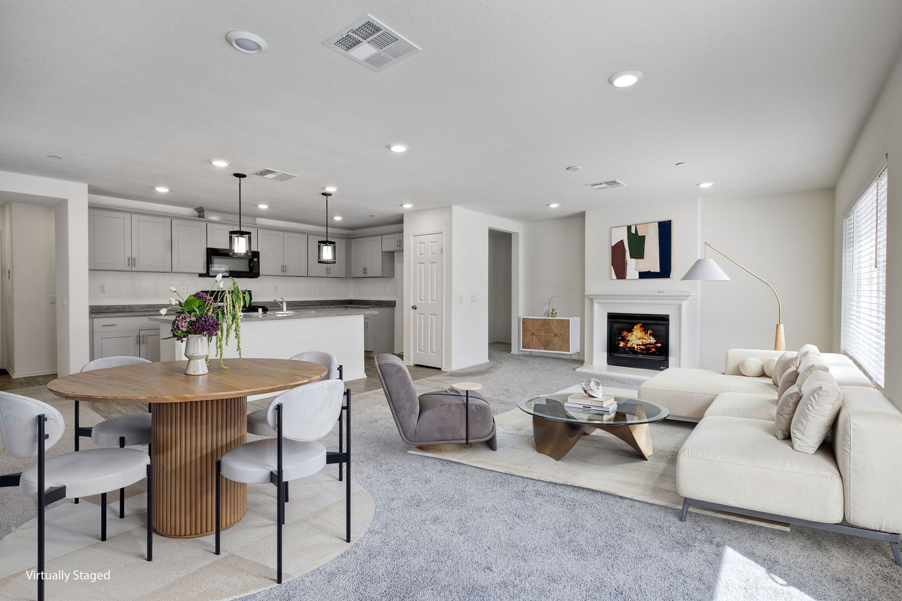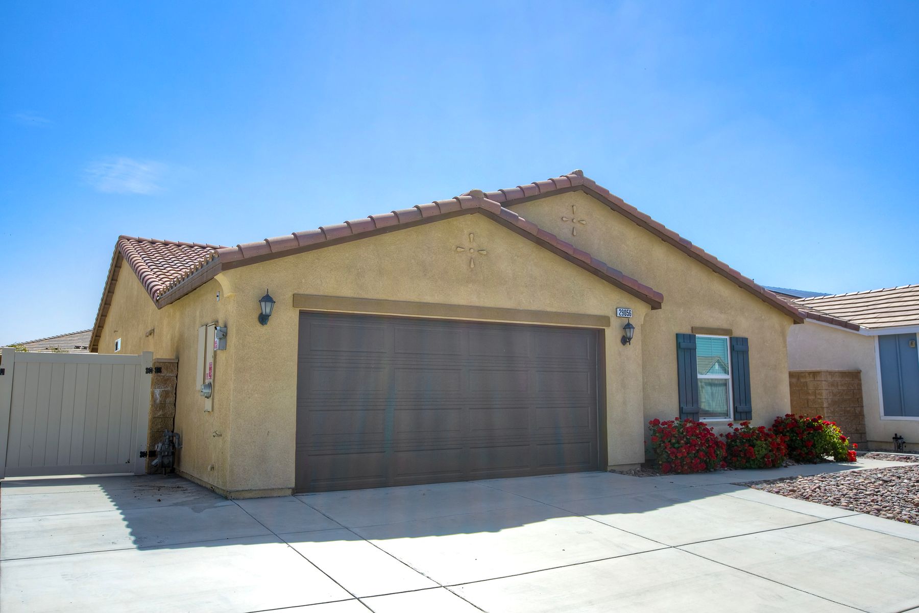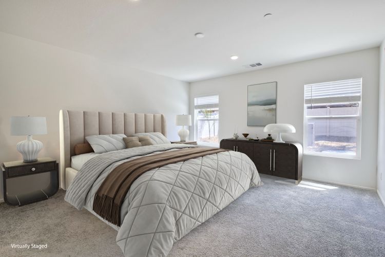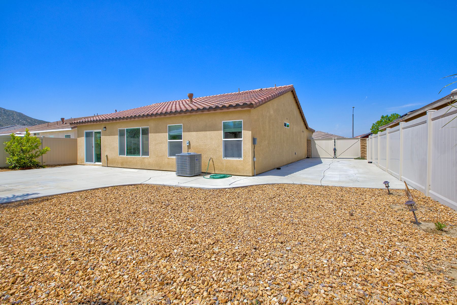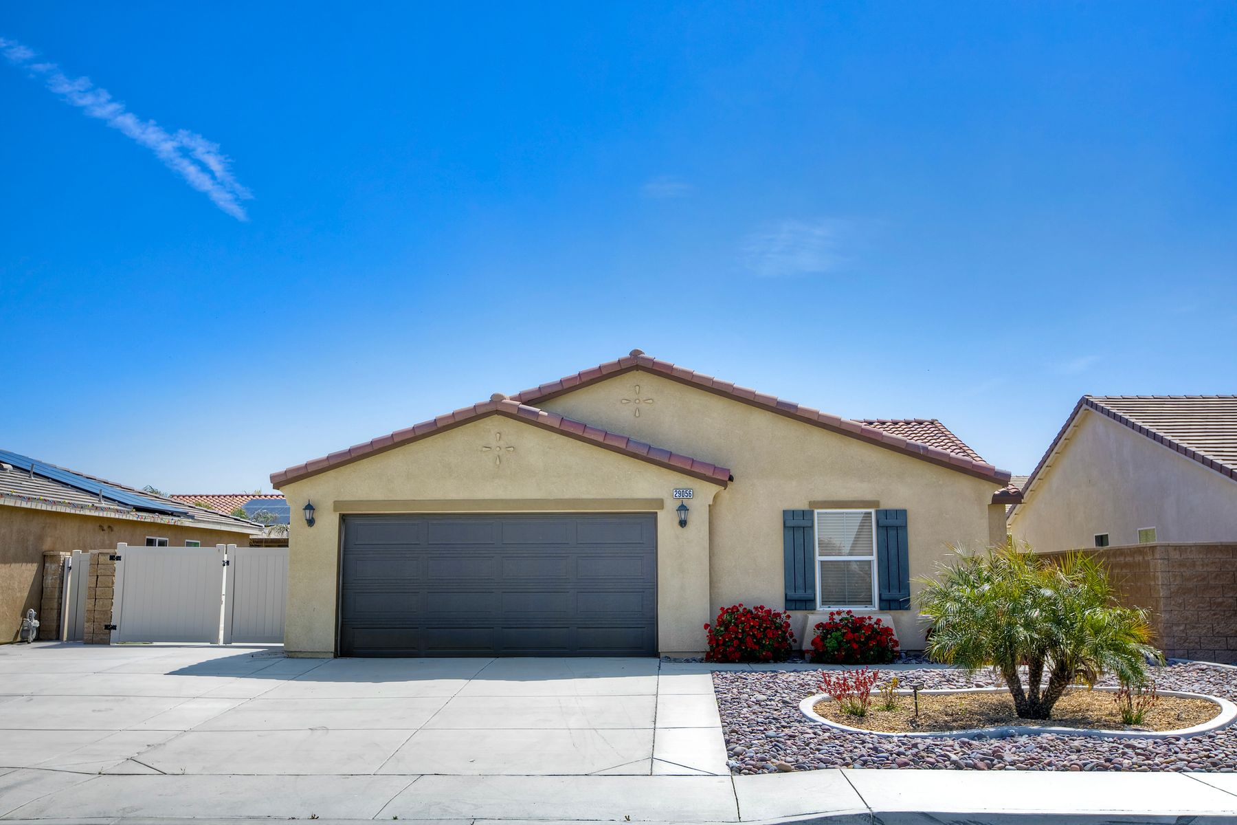 Autumn Winds Beauty - A charming single-story 3 bdrm / 2 ba. You'll love the open-concept living and dining areas, which create a perfect harmony of modern elegance and comfortable living. Step inside and discover a thoughtfully designed floor plan filled with natural light. The inviting living room offers an ideal space for relaxation and entertaining with a cozy fireplace, complete with recessed lighting and an abundance of open space. The seamless flow connects you to its functional and modern kitchen, boasting upgraded cabinetry, a large sink, and beautiful pendant lights illuminating the island with convenient bar seating. The primary suite provides a spacious retreat with a generous walk-in closet a separate powder/staging space and a beautiful en-suite bathroom featuring a large shower. The thoughtful separation of the additional 2 bdrms in this home offers versatility for family, guest or a home office. This wonderful home also includes the convenience of an indoor laundry room with the existing laundry units staying, a tankless water heater, as well as the benefits of a leased solar system. You'll find a delightful backyard perfect for lounging, complemented by a large, gated RV parking area suitable for all your recreational toys, extra storage, or additional outdoor entertaining space. Adding to the appeal is also the additional parking that comes with a spacious 2 car garage, & up to 3 more driveway parking spaces. Did I mention NO HOA or MELLO ROO fees! Ask about seller rate buydown promotion-see supplement. One or more photos was virtually staged. All of this and you're minutes from Diamond Valley Lake as well as an easy commute to shopping, wineries, resorts and casinos. AS A SPECIAL PROMOTION: The seller is offering an interest rate point buydown on the buyer's loan for applicable offers presented during the months of May and July of 2025. Call agent for full details and terms of the promotion. Don't miss out on this incredible opportunity!
