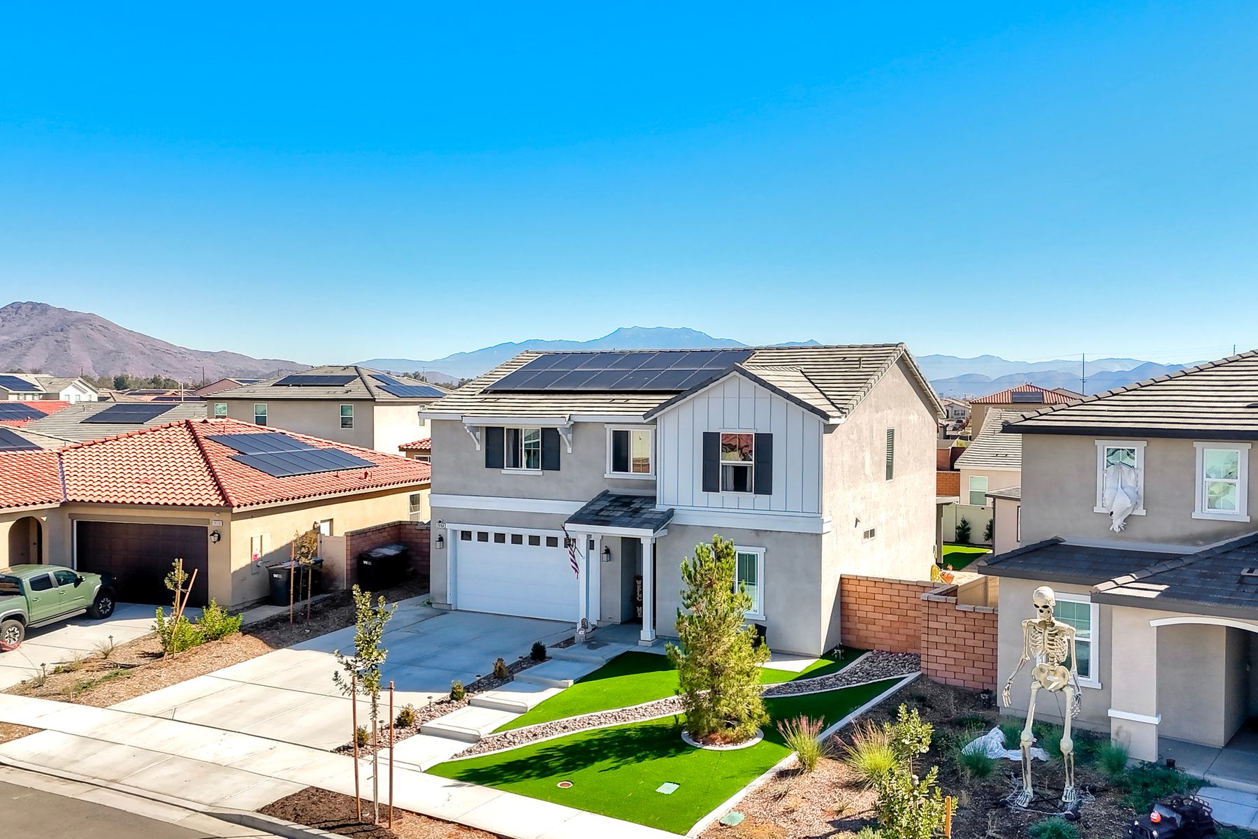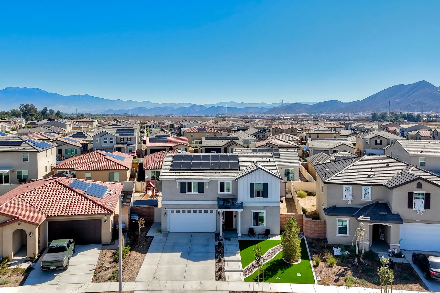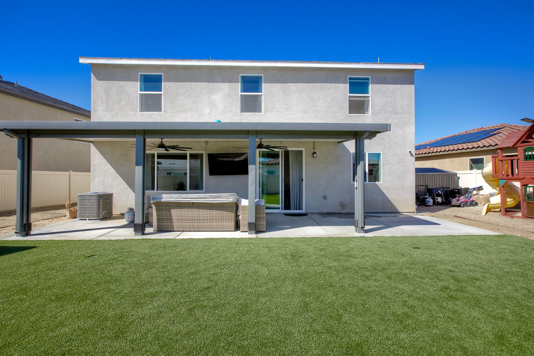 'Price Improvement!! Seller is open to a buyer concession towards interest rate buydown or closing costs!'Beautiful 2024-Built Home with No HOA! Move in Ready!! Very low maintenance yards!!. Tucked away in a peaceful cul-de-sac, this stunning 5-bedroom, 3-bath home with a spacious loft offers modern living at its finest. Step inside to an inviting open-concept layout filled with natural light, soaring ceilings, and recessed lighting that seamlessly connect the living room and formal dining area--perfect for everyday living and entertaining. The gourmet kitchen features elegant quartz countertops, ample cabinetry, and sleek modern finishes. A sliding glass door from the great room opens to the private backyard with a large covered patio--ideal for relaxing or hosting gatherings. You'll also find a convenient outdoor office space and low-maintenance landscaping in both the front and back yards. Upstairs, enjoy a separate laundry room with built-in cabinets for extra storage. The home also includes a two-car attached garage and thoughtful design details throughout. Located near Highways 215, 74, and 79, this home offers easy access to parks, shopping, and dining. Don't miss the opportunity to make this move-in-ready gem yours!