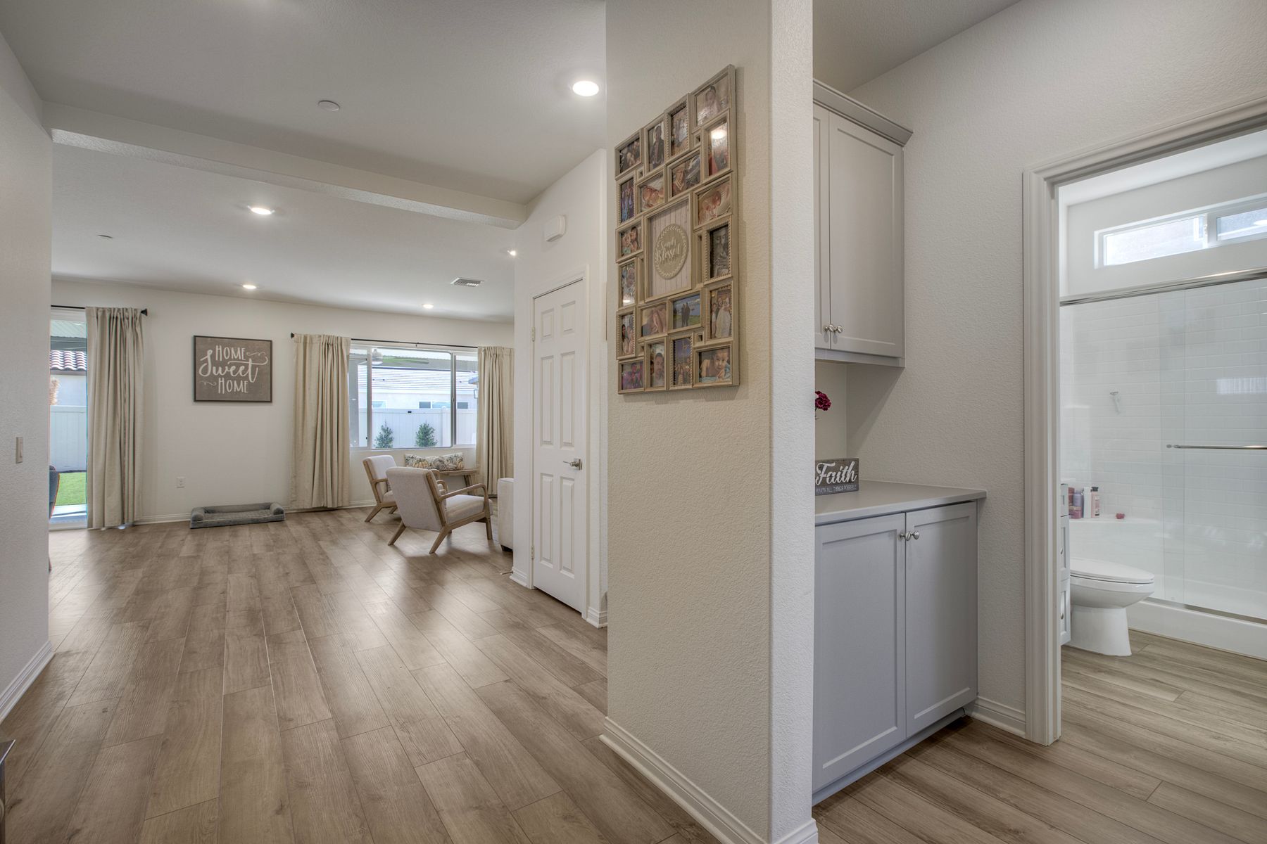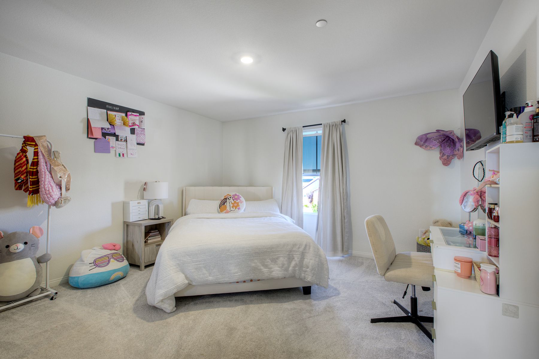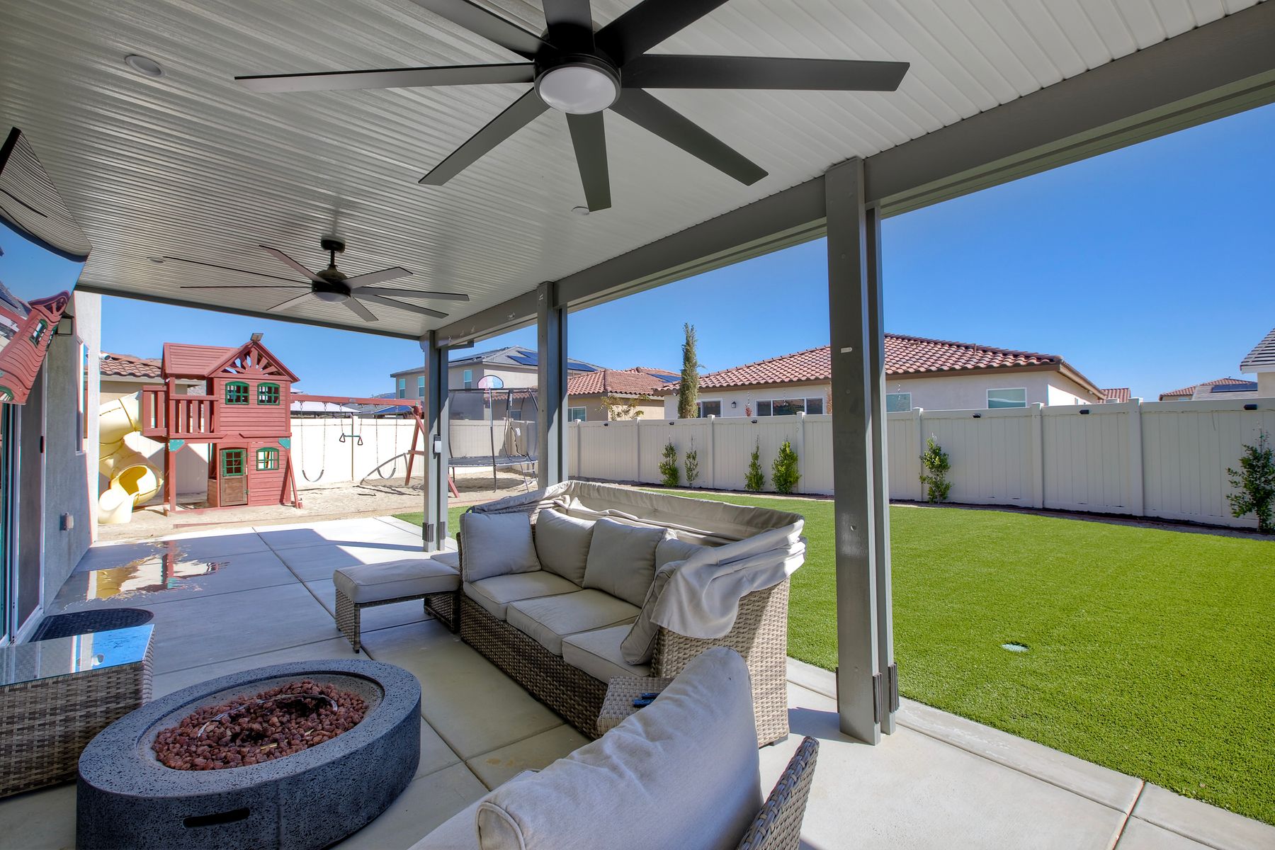 'Price Improvement!! Seller is open to a buyer concession towards interest rate buydown or closing costs!'Beautiful 2024-Built Home with No HOA! Move in Ready!! Very low maintenance yards!!. Tucked away in a peaceful cul-de-sac, this stunning 5-bedroom, 3-bath home with a spacious loft offers modern living at its finest. Step inside to an inviting open-concept layout filled with natural light, soaring ceilings, and recessed lighting that seamlessly connect the living room and formal dining area--perfect for everyday living and entertaining. The gourmet kitchen features elegant quartz countertops, ample cabinetry, and sleek modern finishes. A sliding glass door from the great room opens to the private backyard with a large covered patio--ideal for relaxing or hosting gatherings. You'll also find a convenient outdoor office space and low-maintenance landscaping in both the front and back yards. Upstairs, enjoy a separate laundry room with built-in cabinets for extra storage. The home also includes a two-car attached garage and thoughtful design details throughout. Located near Highways 215, 74, and 79, this home offers easy access to parks, shopping, and dining. Don't miss the opportunity to make this move-in-ready gem yours!