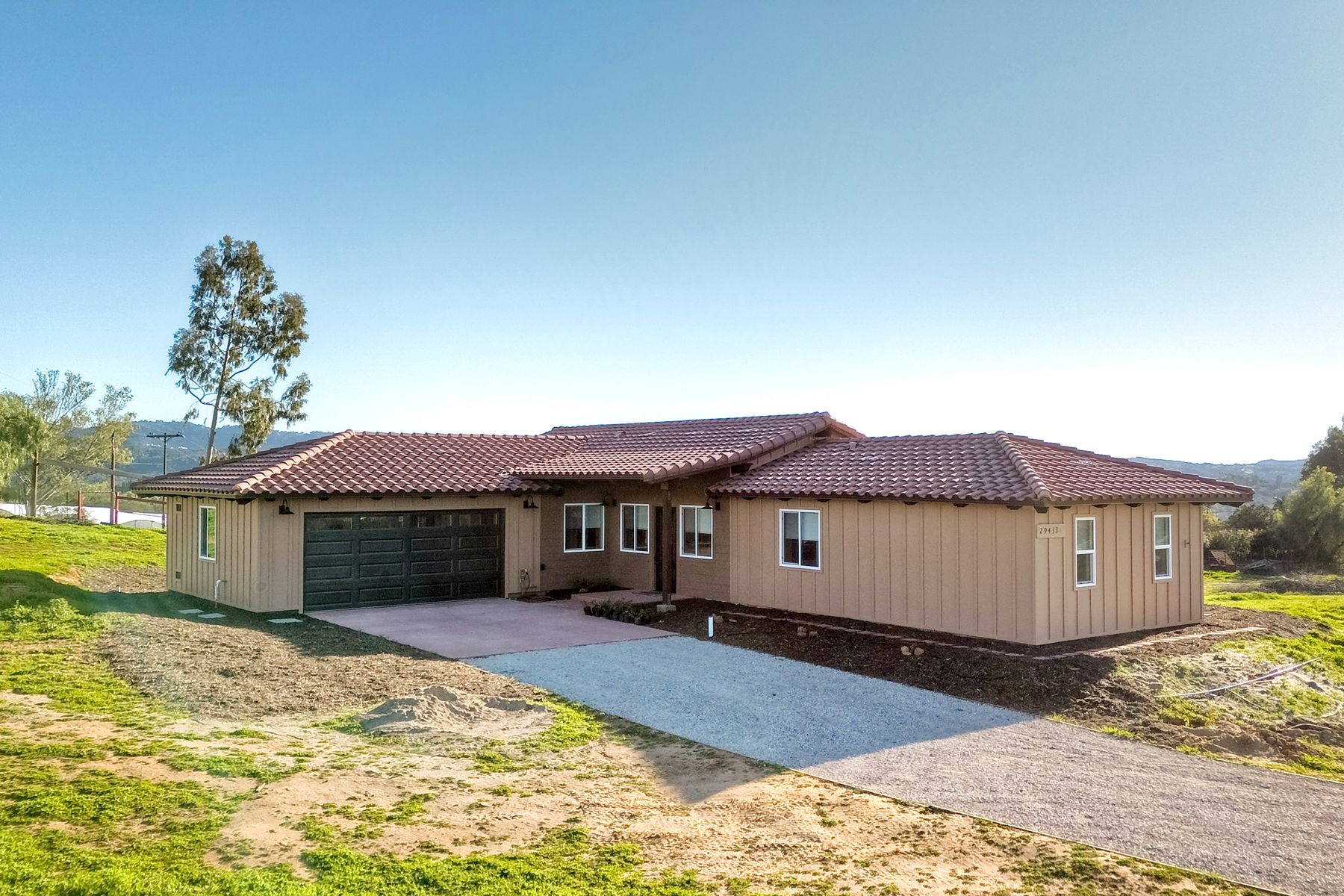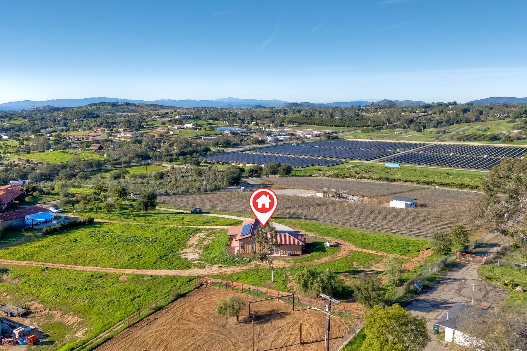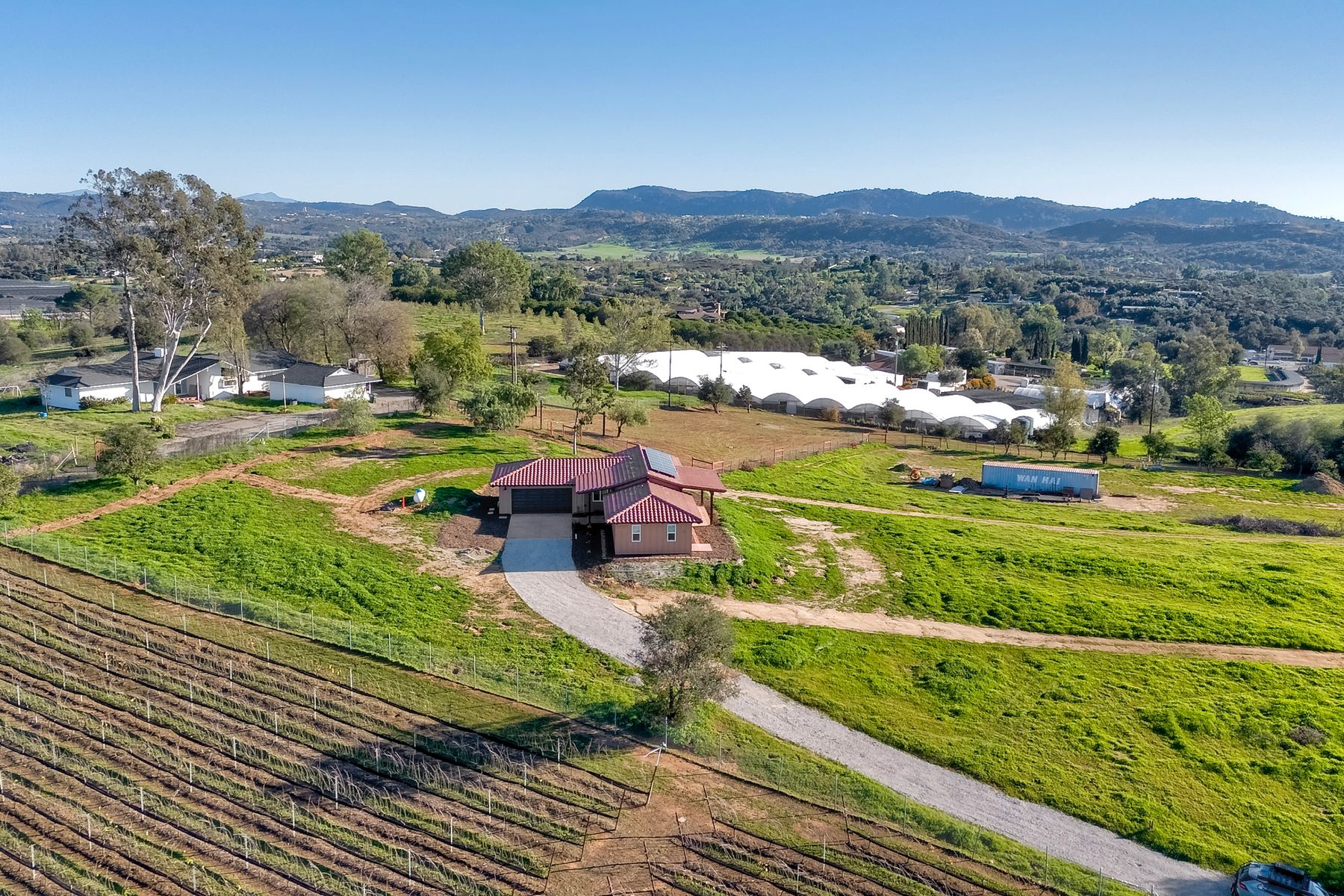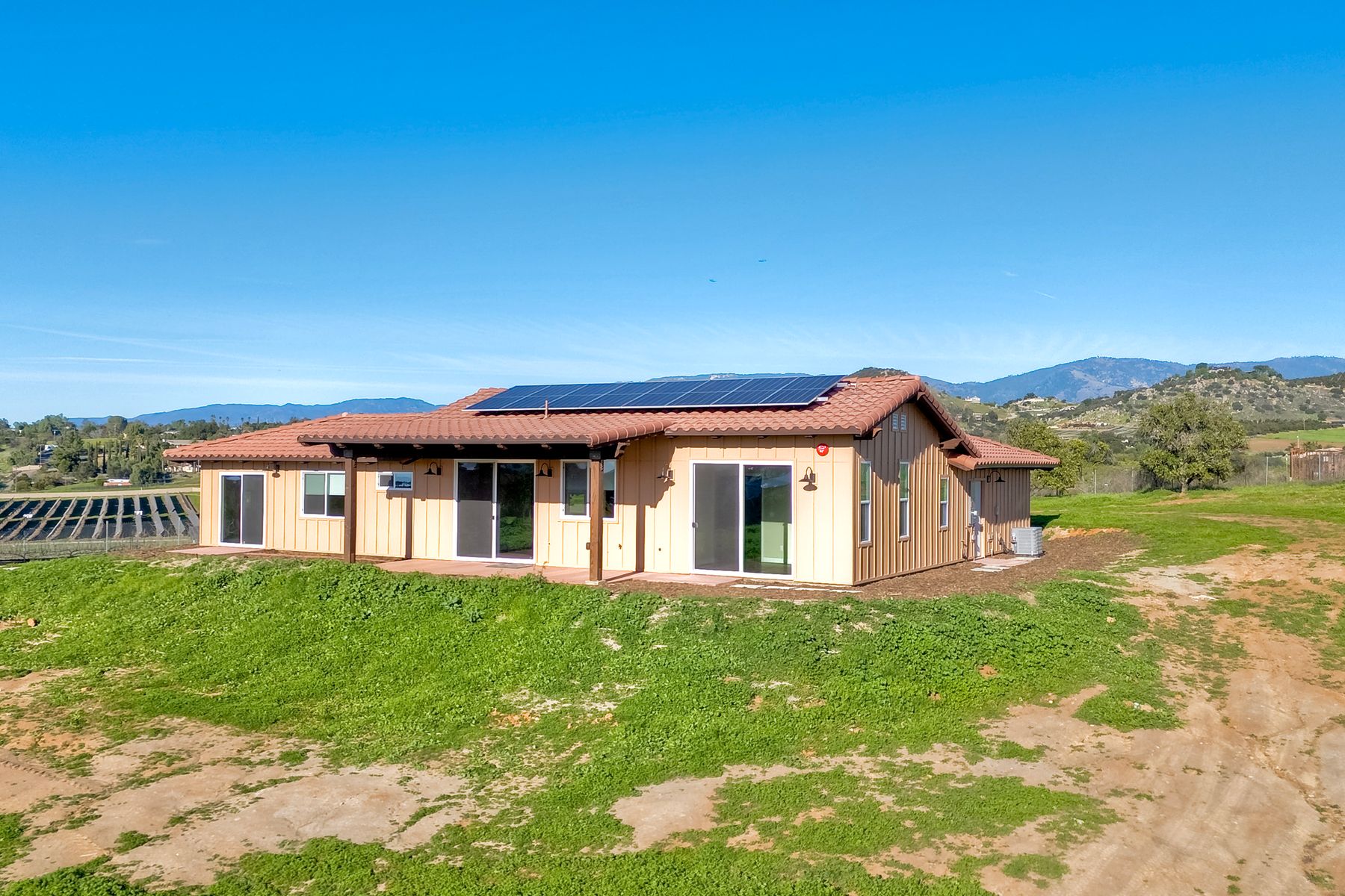 Newly constructed Luxury ADU for Lease Modern 3 Bedroom, 2 Bath with 2-Car Garage on Private 7-Acre Estate. Be the first to live in this stunning single-story ADU on a picturesque 7-acre gated property in Valley Center. This thoughtfully designed home combines modern luxury with peaceful country living and breathtaking mountain views. Inside, the bright open-concept living area features vaulted wood-beam ceilings and abundant natural light. The chef's kitchen boasts elegant white cabinetry, soft-close drawers, and stainless steel appliances, including a refrigerator with filtered water, gas stove, microwave, and dishwasher. The spacious primary suite includes sliding glass doors to a private patio with panoramic views. Its elegant ensuite bathroom offers dual vanities, a soaking tub/shower combo, and a large walk-in closet. Two additional bedrooms are positioned on the opposite side for privacy one has sliding doors to a patio. Additional highlights include an attached finished two-car garage with washer/dryer hookups, ample parking space for an RV or recreational vehicles, and plenty of room for pets, a garden, or even small livestock. Whether you're looking for open space to breathe, room for your hobbies, or simply a serene retreat surrounded by nature this property is a rare find.