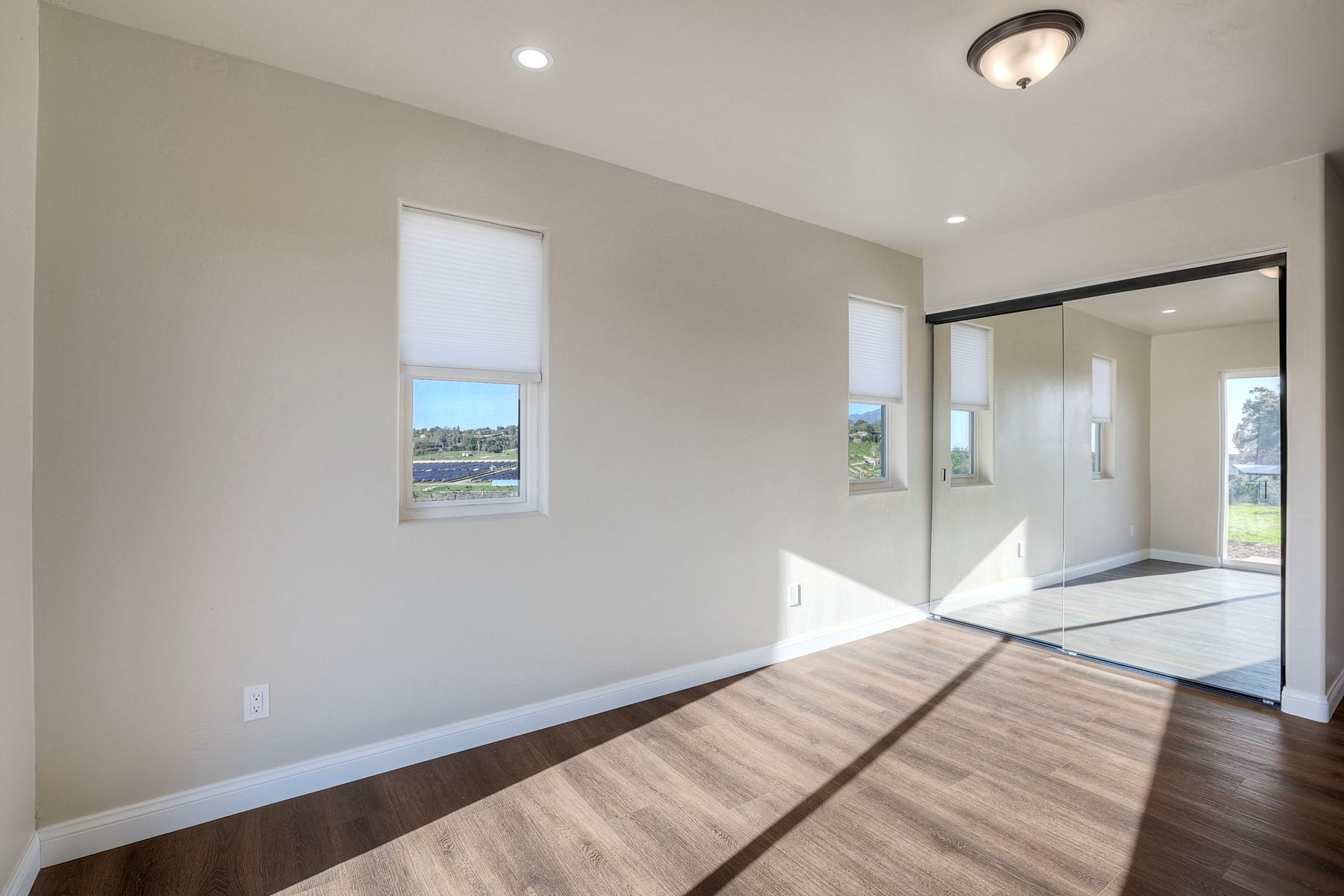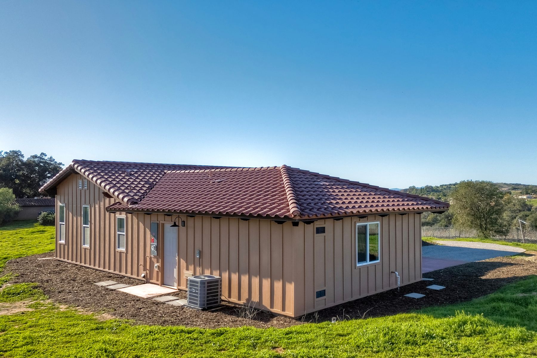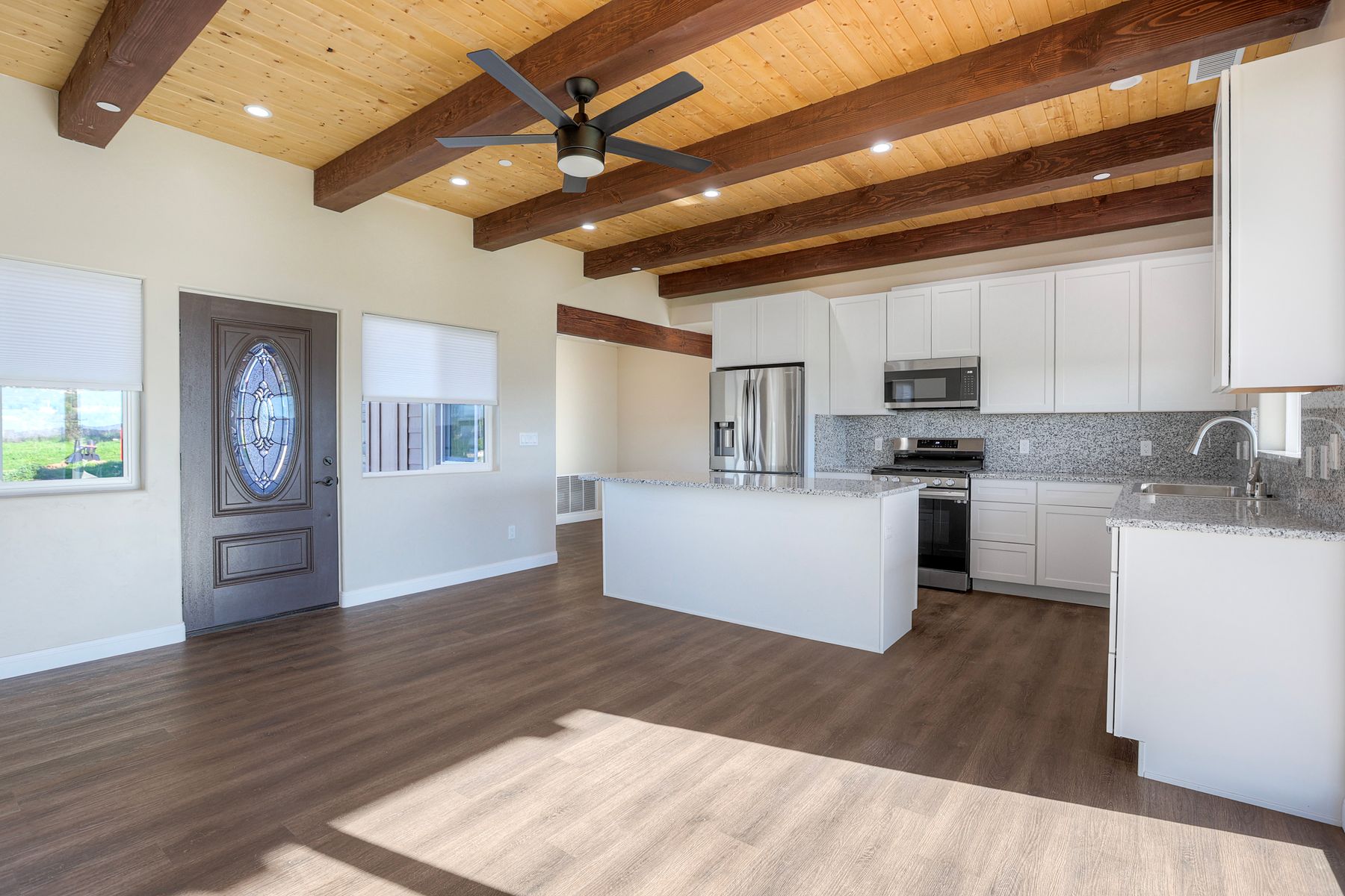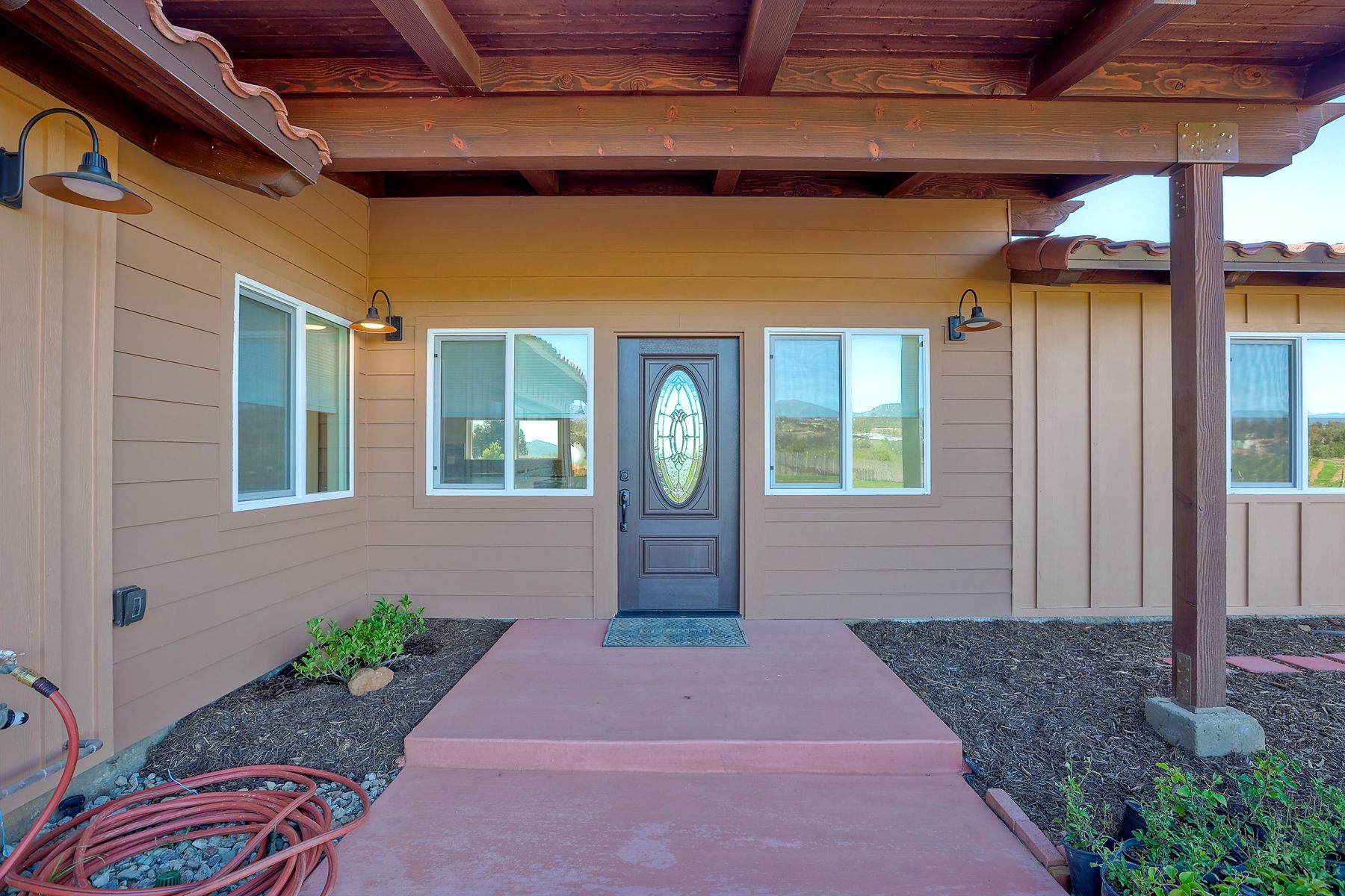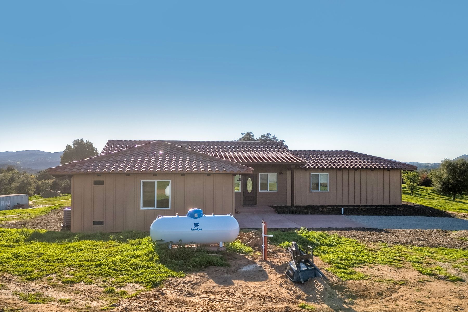 Newly constructed Luxury ADU for Lease Modern 3 Bedroom, 2 Bath with 2-Car Garage on Private 7-Acre Estate. Be the first to live in this stunning single-story ADU on a picturesque 7-acre gated property in Valley Center. This thoughtfully designed home combines modern luxury with peaceful country living and breathtaking mountain views. Inside, the bright open-concept living area features vaulted wood-beam ceilings and abundant natural light. The chef's kitchen boasts elegant white cabinetry, soft-close drawers, and stainless steel appliances, including a refrigerator with filtered water, gas stove, microwave, and dishwasher. The spacious primary suite includes sliding glass doors to a private patio with panoramic views. Its elegant ensuite bathroom offers dual vanities, a soaking tub/shower combo, and a large walk-in closet. Two additional bedrooms are positioned on the opposite side for privacy one has sliding doors to a patio. Additional highlights include an attached finished two-car garage with washer/dryer hookups, ample parking space for an RV or recreational vehicles, and plenty of room for pets, a garden, or even small livestock. Whether you're looking for open space to breathe, room for your hobbies, or simply a serene retreat surrounded by nature this property is a rare find.
