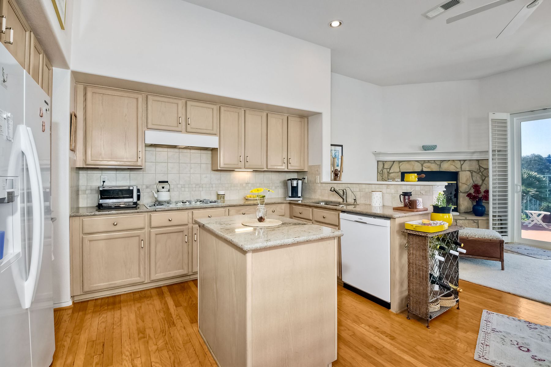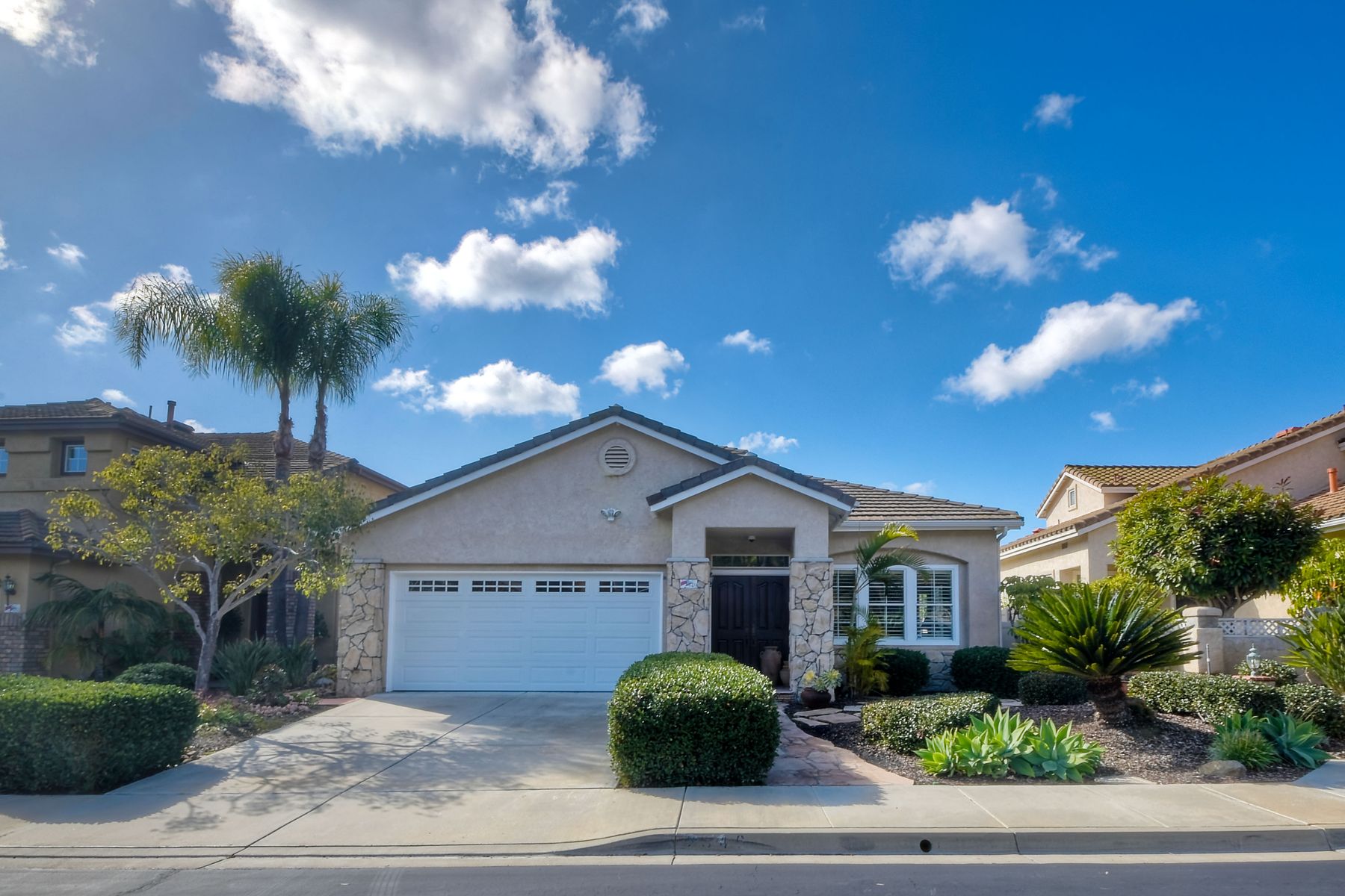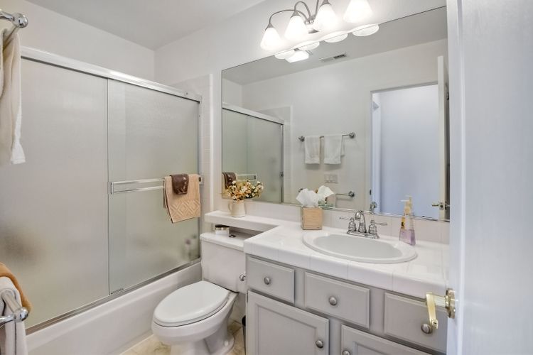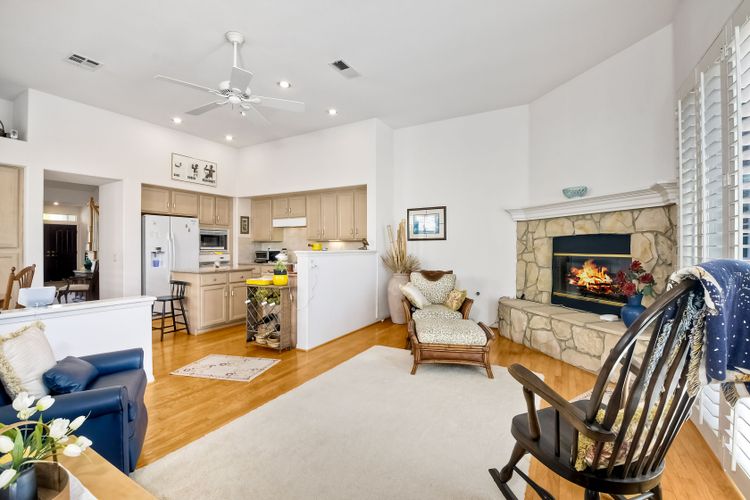 The one you have been waiting for! Fairways Plan 2 featuring master plus secondary bedroom on the first floor ... 2 bedrooms plus bathroom upstairs. Indoor laundry room. Gated community with 2 walking trails, 7 interior parks, private streets. Low HOF and no mello roos. House is in pristine condition and has been well cared for by current owners. Property is directly above the golf course at the Omni La Costa Resort and has partial views due to some trees on the golf course. Remodeled kitchen with slab granite counters, backsplash, Bosch dishwasher. Lots of cabinets with roll-out drawers. Adjacent eating nook with double pantry and coffee bar. Romantic fireplace in the family room. New sliding doors in family room and master bedroom. Master has a private sitting area, large walk-in closet, adjoining bathroom with separate tub and shower and slab granite countertops. Backyard is easy-care slab with new vinyl fencing on the sides, shared with neighbors. Central air and furnace replaced in 2015. Roof has been replaced approximately 2016. Attached 2 car garage. Most popular floorplan as your everyday living can be done on the first floor. Guests, adult children or caregiver can live upstairs for great privacy for all parties. Very quiet location in a great community.