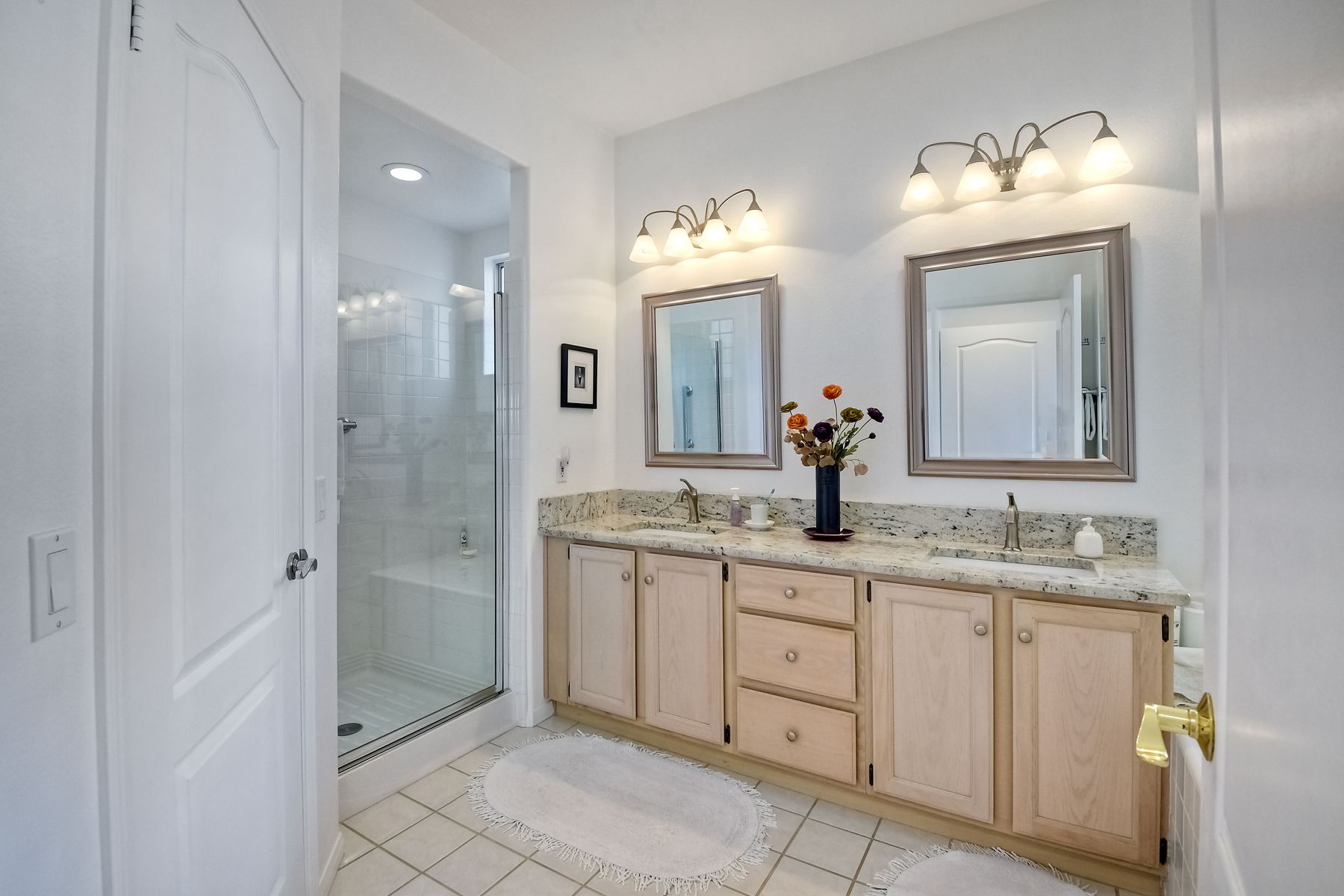 Double sinks in bath(s), Double Sinks In Master Bath, Exhaust fan(s), Granite Counters, Low Flow Toilet(s), Remodeled, Separate tub and shower, Walk-in shower, Bathtub