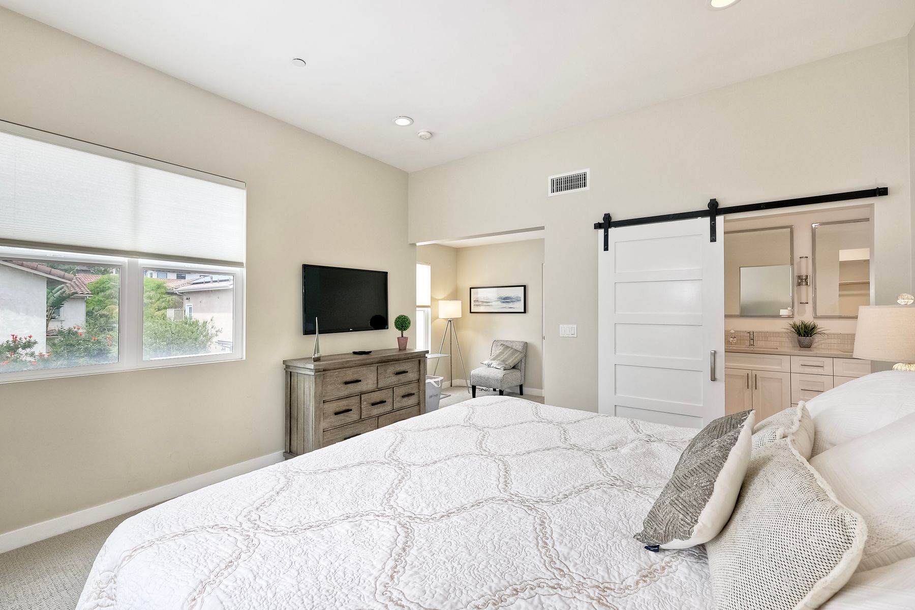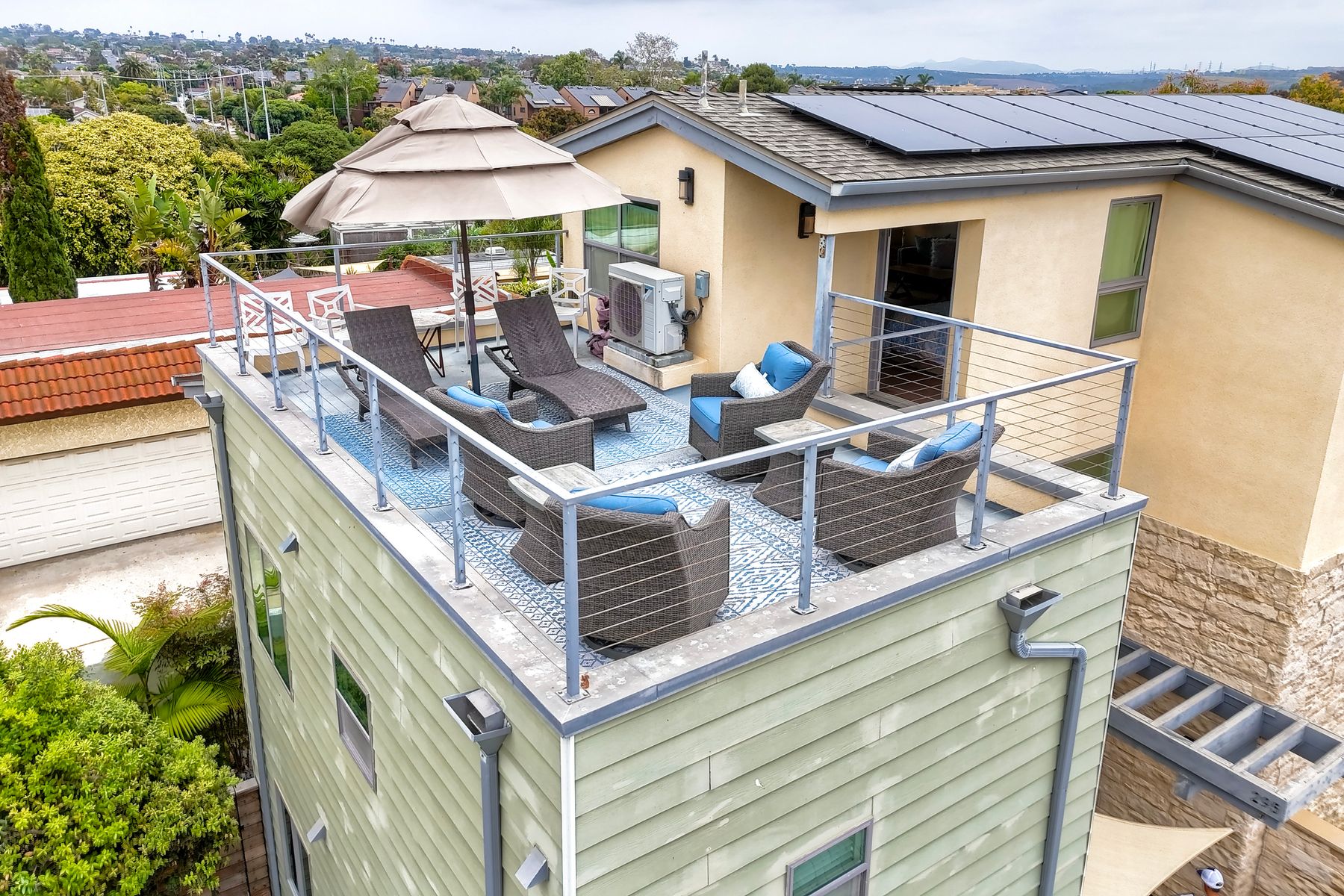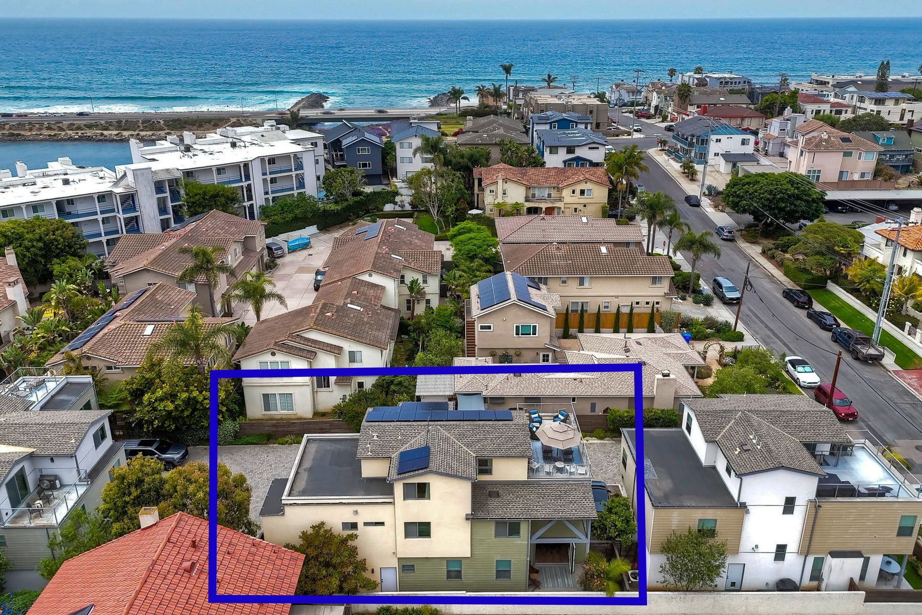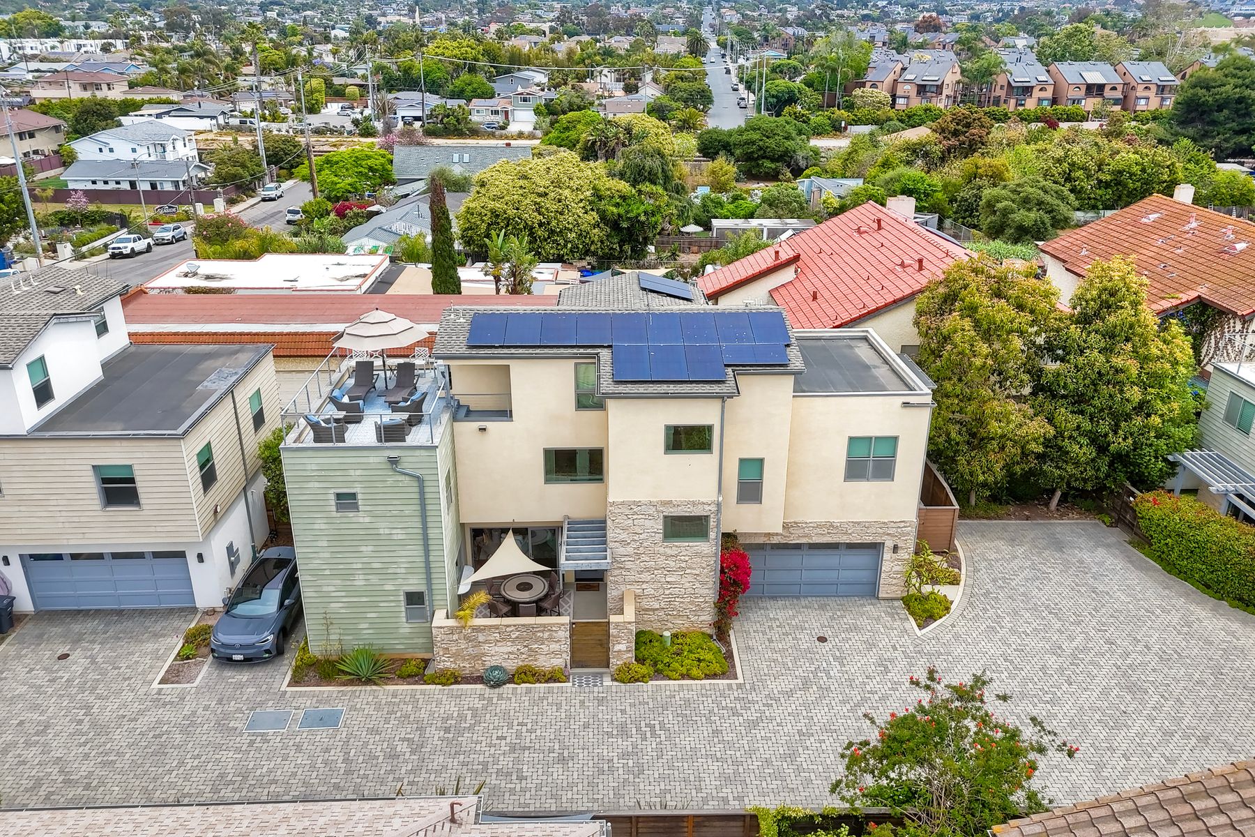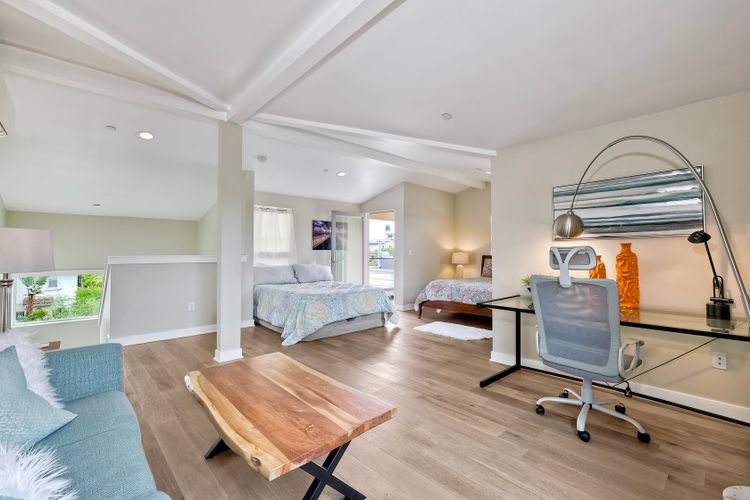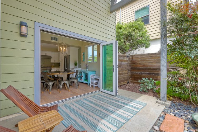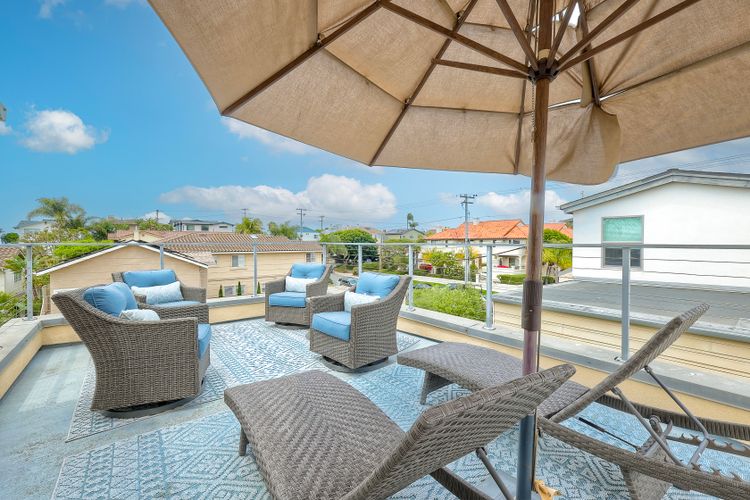 Modern Coastal Luxury – Fully Furnished 2016 Build Single Family Detached Home – Steps to the Beach Discover the ultimate in coastal living with this beautifully designed, fully furnished detached single-family residence, built in 2016 and just steps from the ocean with a backyard for the pets. This turnkey three-story gem surprises visitors with its spacious, private feel—photos simply don't capture the full allure! Ideal as a primary home, second residence, or lucrative rental, it offers 4 bedrooms, 3.5 baths, and approx. 2,645 sq. ft. of living space, complete with paid-off solar, premium upgrades, and seamless indoor-outdoor flow. Enter through a private gated courtyard to plank wood floors and abundant natural light. The open great room, with accordion-glass doors to front/rear patios, is an entertainer's delight. The chef's kitchen features stainless appliances (Bertazzoni 6-burner range, French-door fridge), shaker cabinets, chevron backsplash, and bi-fold window to the patio bar. Soaring two-story ceilings enhance the airy dining area. Upstairs, the primary suite includes a reading nook, walk-in closet, and spa bath with freestanding tub, dual vanities, and glass shower. Two more bedrooms, full bath, and laundry with sink/storage complete this level. The third-floor bonus room opens to a rooftop deck with hill, city light, and ocean peek views—adaptable as a guest suite, office, or gym. Enjoy central A/C, tankless water heater, outdoor shower, 2-car garage + 3 spots, and curated beach gear (bikes, surfboards, boogie boards). Walk to Carlsbad State Beach, Agua Hedionda Lagoon, and Village amenities. Schedule a private tour today to experience the magic in person!