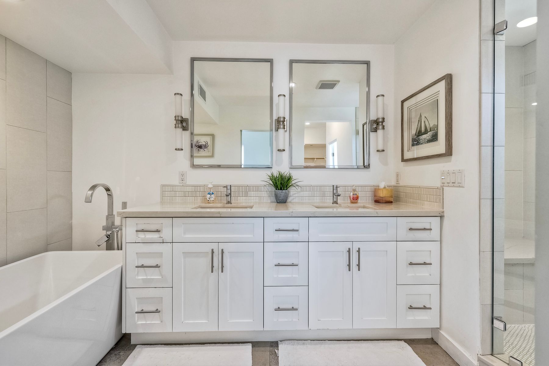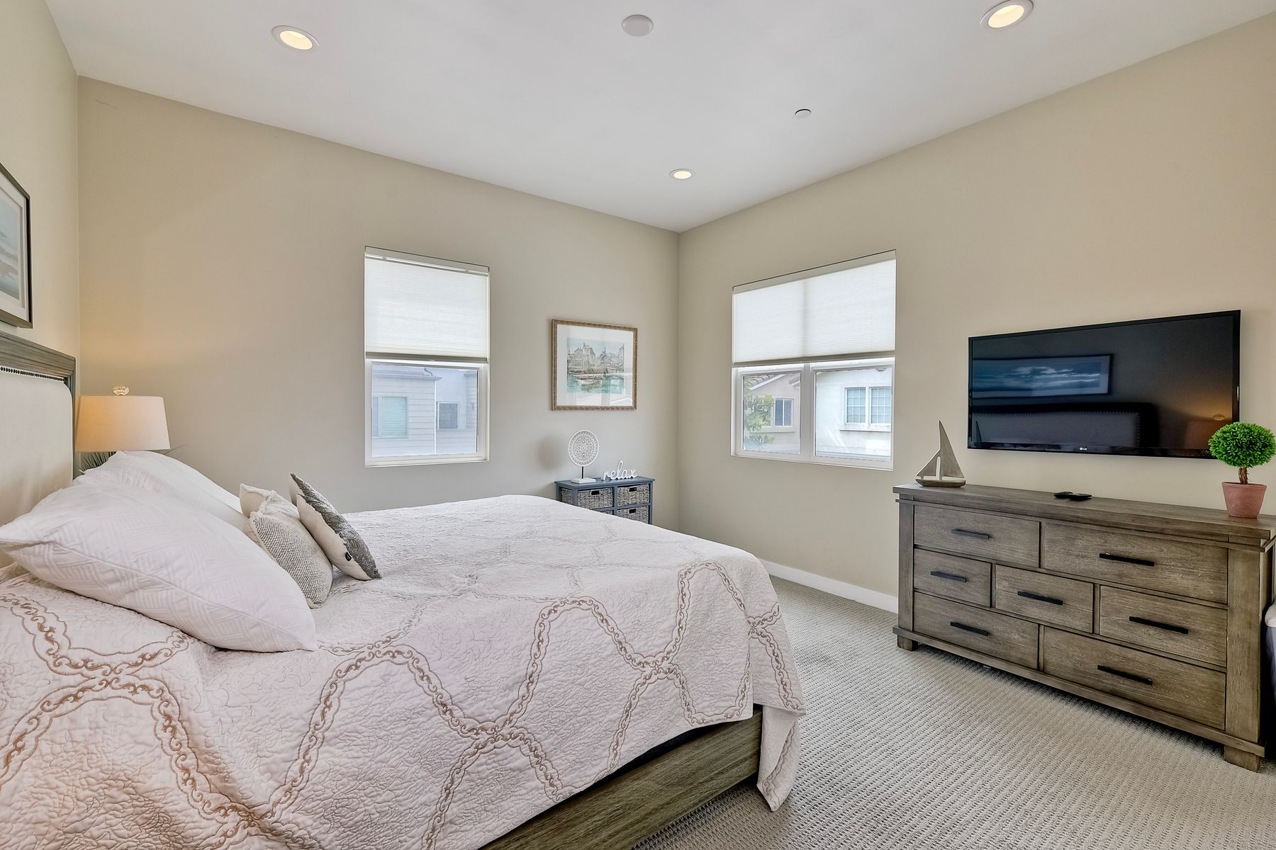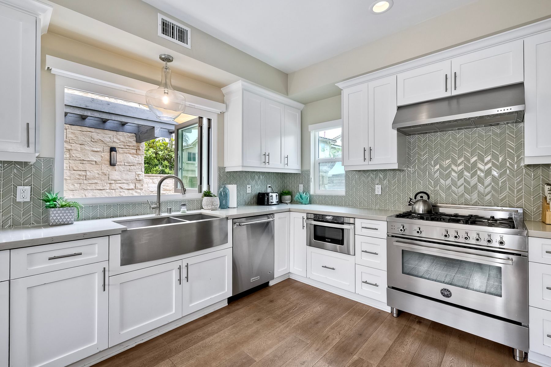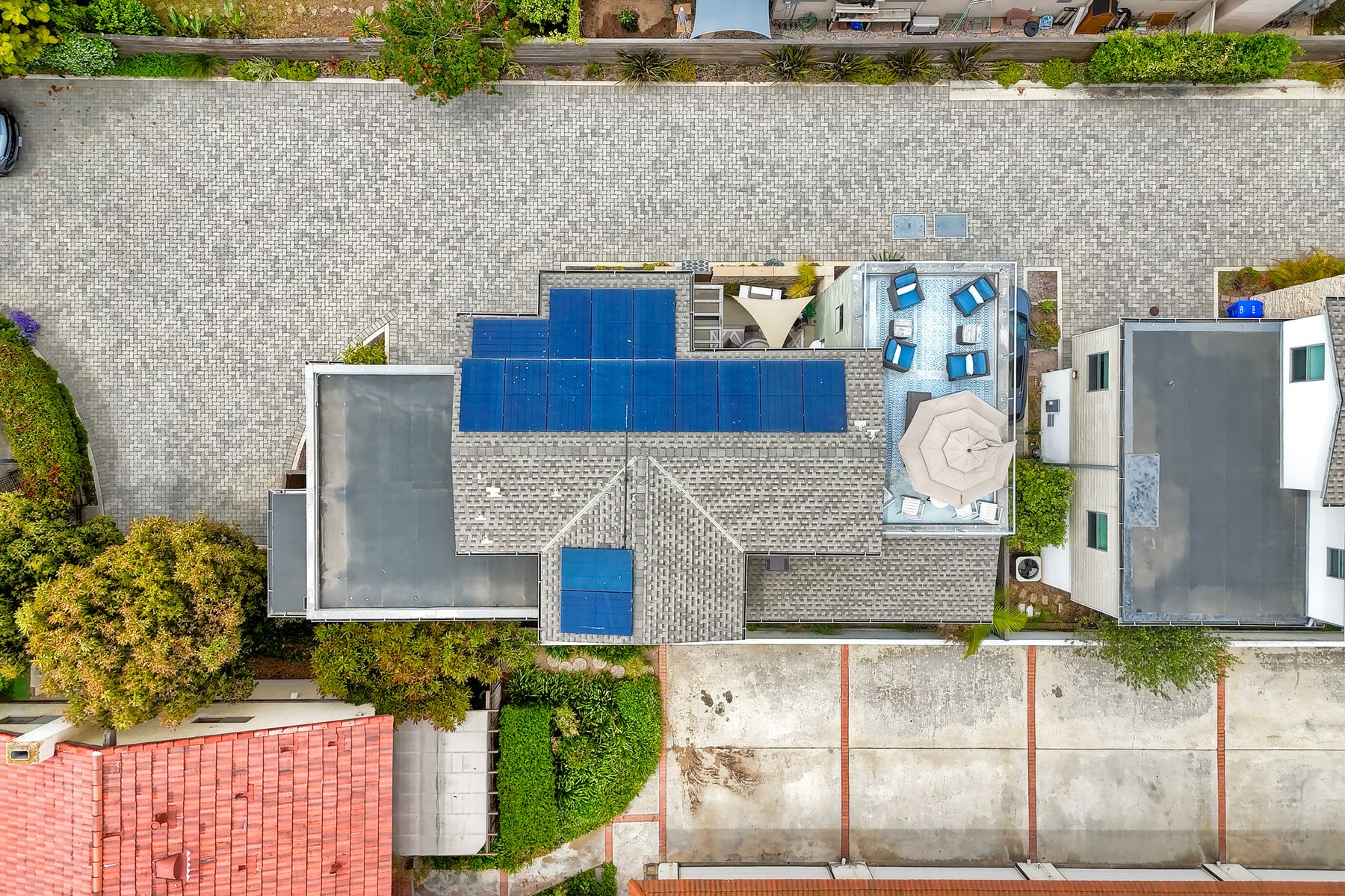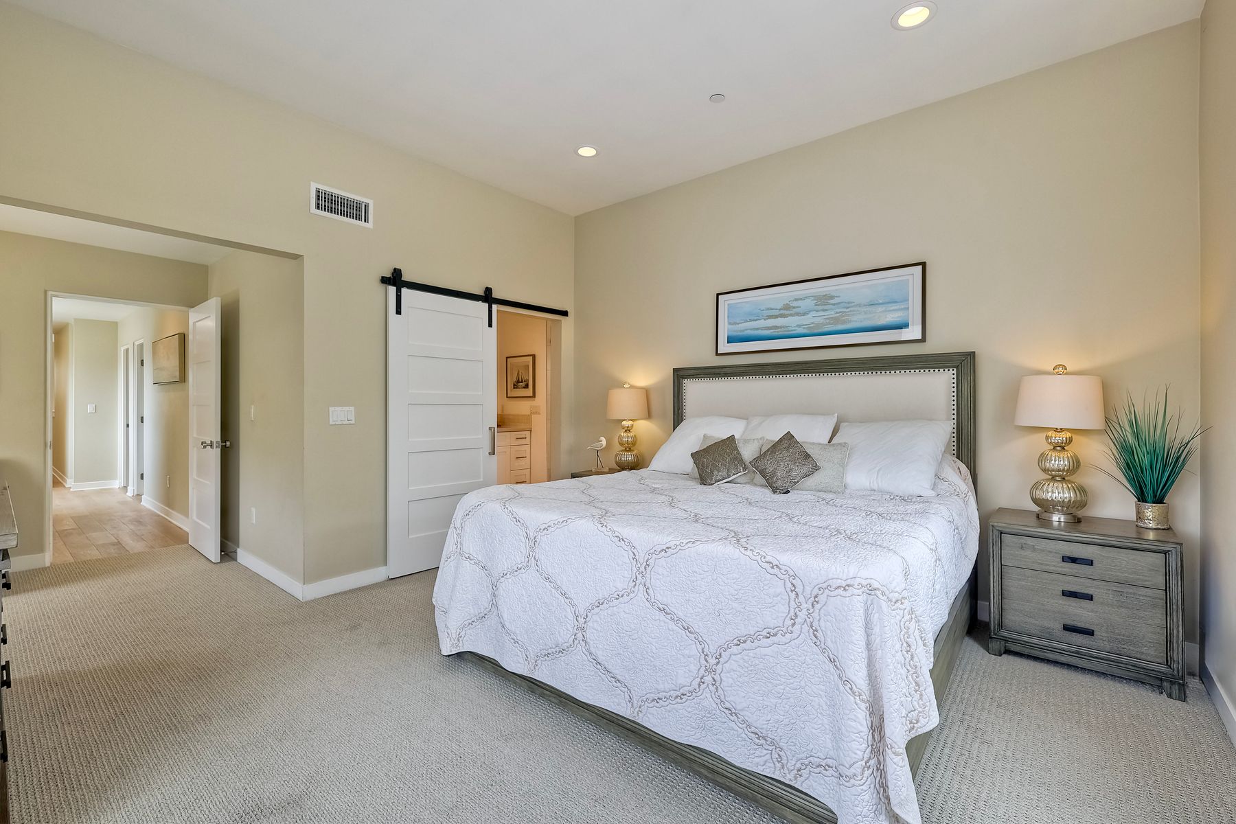 Modern Coastal Luxury – Fully Furnished 2016 Build Single Family Detached Home – Steps to the Beach Discover the ultimate in coastal living with this beautifully designed, fully furnished detached single-family residence, built in 2016 and just steps from the ocean with a backyard for the pets. This turnkey three-story gem surprises visitors with its spacious, private feel—photos simply don't capture the full allure! Ideal as a primary home, second residence, or lucrative rental, it offers 4 bedrooms, 3.5 baths, and approx. 2,645 sq. ft. of living space, complete with paid-off solar, premium upgrades, and seamless indoor-outdoor flow. Enter through a private gated courtyard to plank wood floors and abundant natural light. The open great room, with accordion-glass doors to front/rear patios, is an entertainer's delight. The chef's kitchen features stainless appliances (Bertazzoni 6-burner range, French-door fridge), shaker cabinets, chevron backsplash, and bi-fold window to the patio bar. Soaring two-story ceilings enhance the airy dining area. Upstairs, the primary suite includes a reading nook, walk-in closet, and spa bath with freestanding tub, dual vanities, and glass shower. Two more bedrooms, full bath, and laundry with sink/storage complete this level. The third-floor bonus room opens to a rooftop deck with hill, city light, and ocean peek views—adaptable as a guest suite, office, or gym. Enjoy central A/C, tankless water heater, outdoor shower, 2-car garage + 3 spots, and curated beach gear (bikes, surfboards, boogie boards). Walk to Carlsbad State Beach, Agua Hedionda Lagoon, and Village amenities. Schedule a private tour today to experience the magic in person!