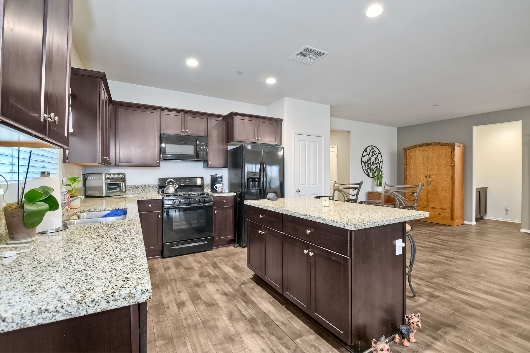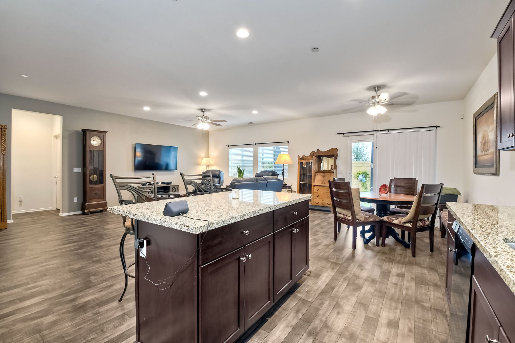MOVE-IN READY! This ONE STORY HOME features 3 bedroom and 2 bathrooms with a den. The Kitchen features Giallo Atlantico granite counters and 36" Java cabinets. Large island with seating, and pantry. No HOA. Leased solar to save $$. Nearby shopping, dining and entertainment.