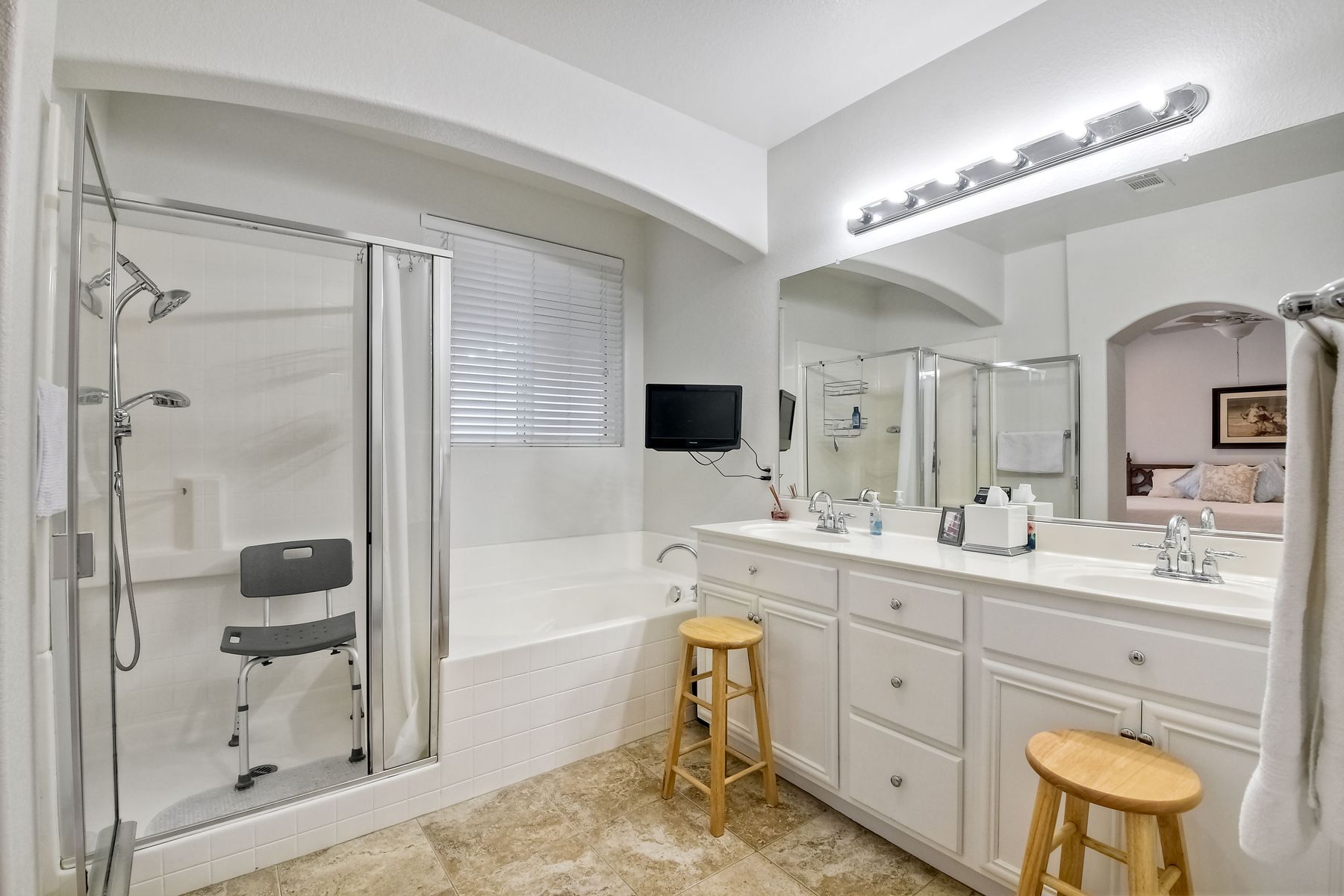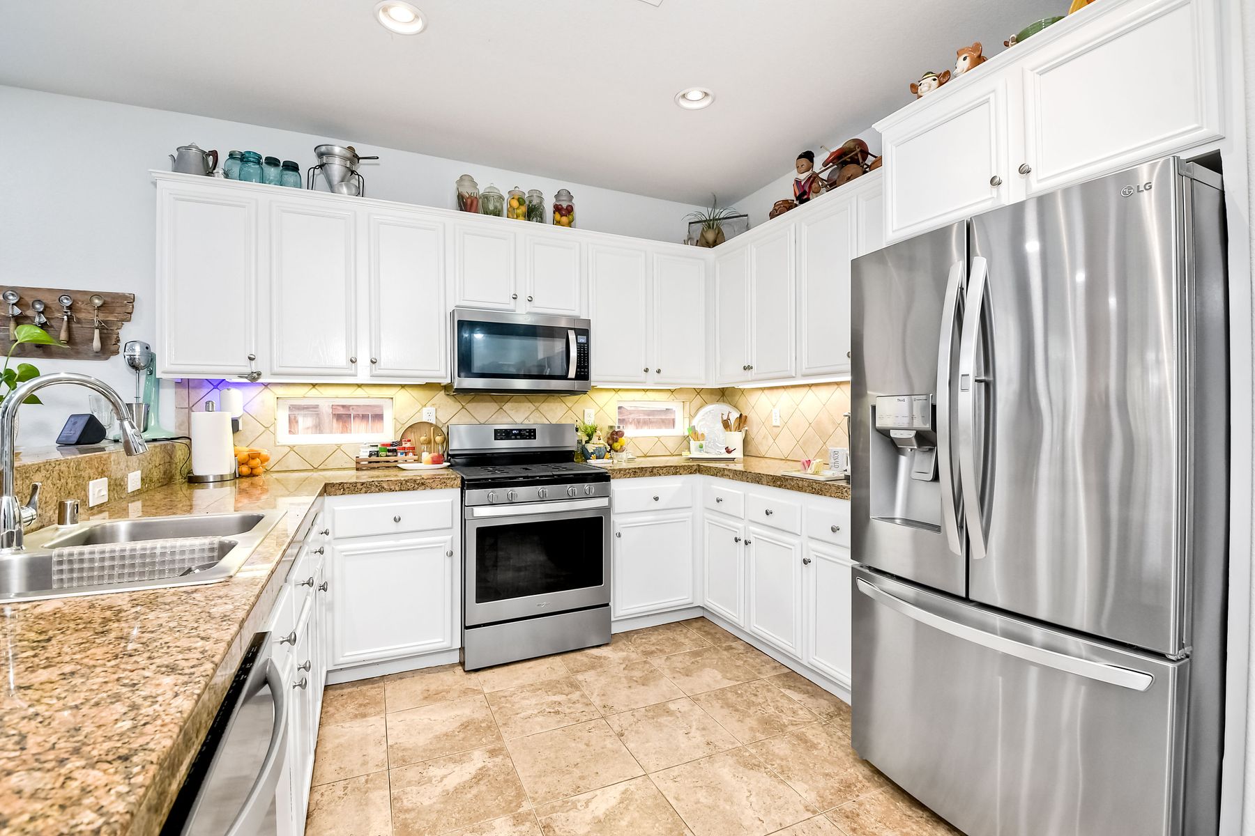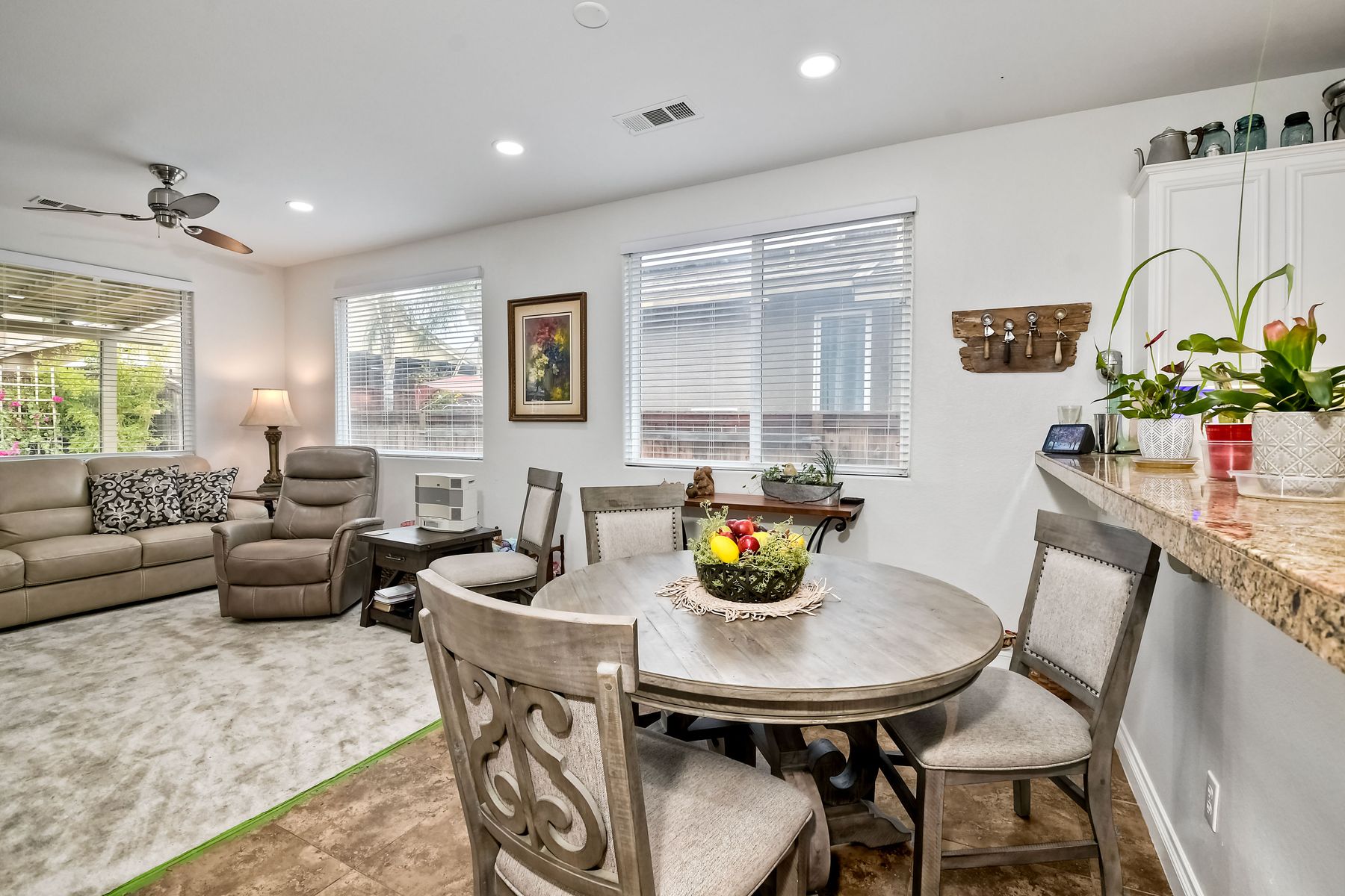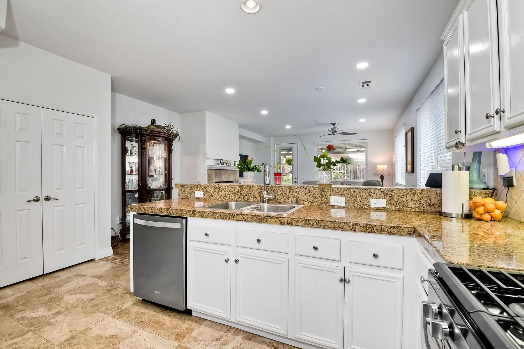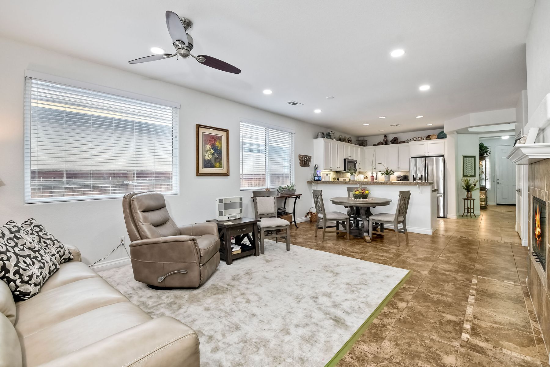 NO HOA! Turnkey single story with a highly desirable open floor plan. The Kitchen and Great Room have been remodeled in the last 2 years. Neutral paint, tile flooring, recessed canned lighting & ceiling fans throughout the home! The Owner's Bedroom has French doors to the backyard. Owner's bathroom has dual vanities, large walk-in closet, walk-in shower w/ separate tub. Front bedroom and bath are just off the entry, perfect for guest, generational family or a home office. The 3nd and 4rd bedrooms are across the hall way form 3rd bathroom which has a dual vanity and a tub/shower combo. Indoor laundry room w/additional closet storage space. Large side yards! Large 2 car attached garage! This home also has solar. Great location to parks, biking, and schools!