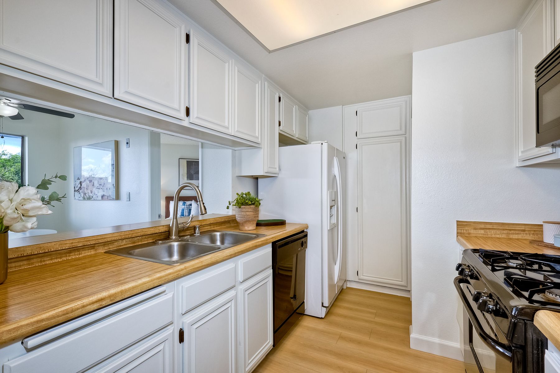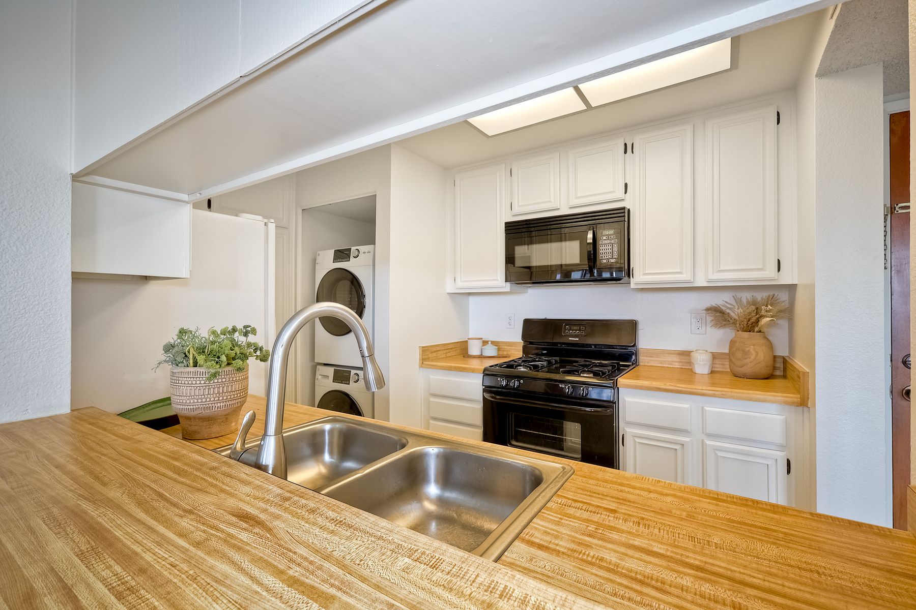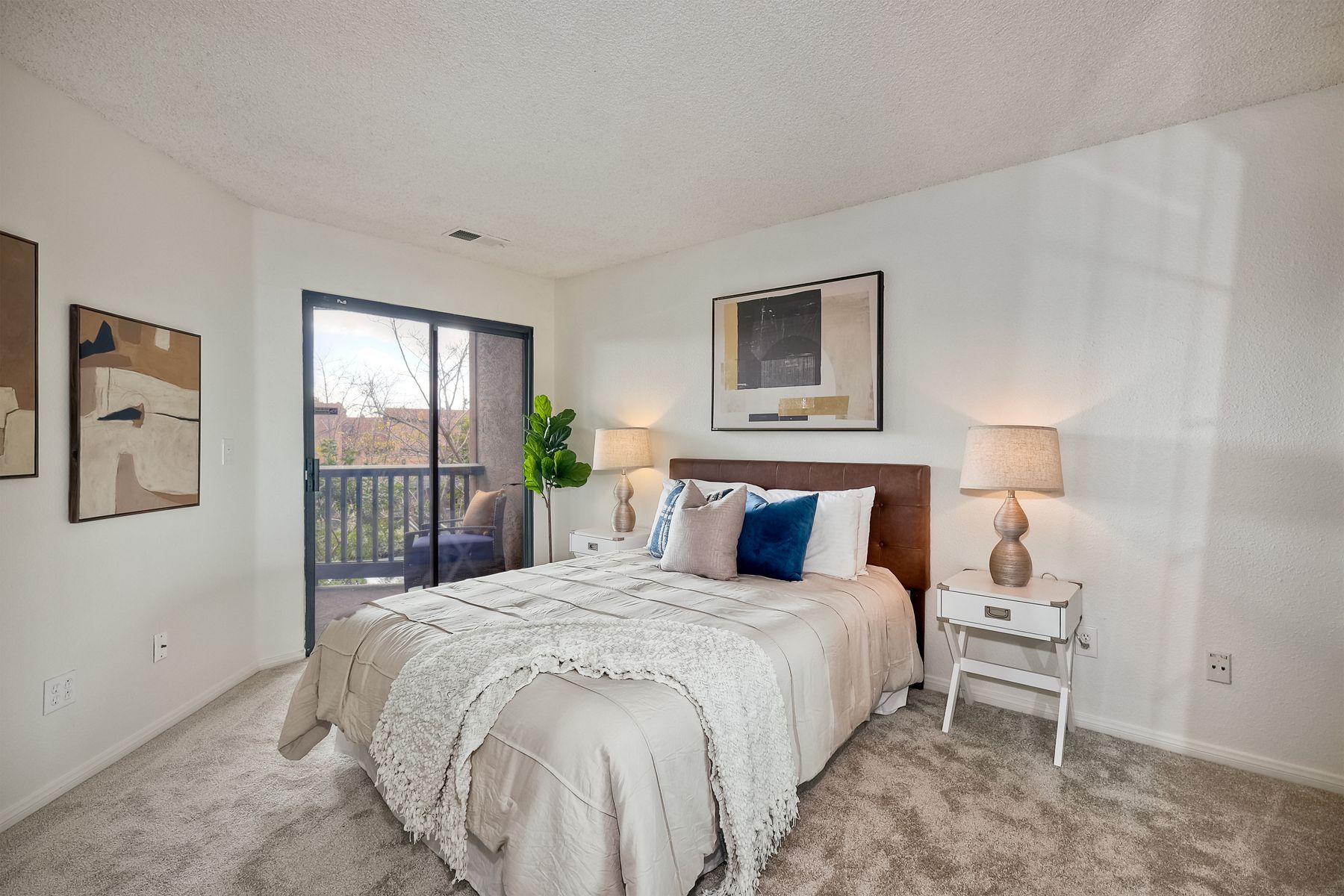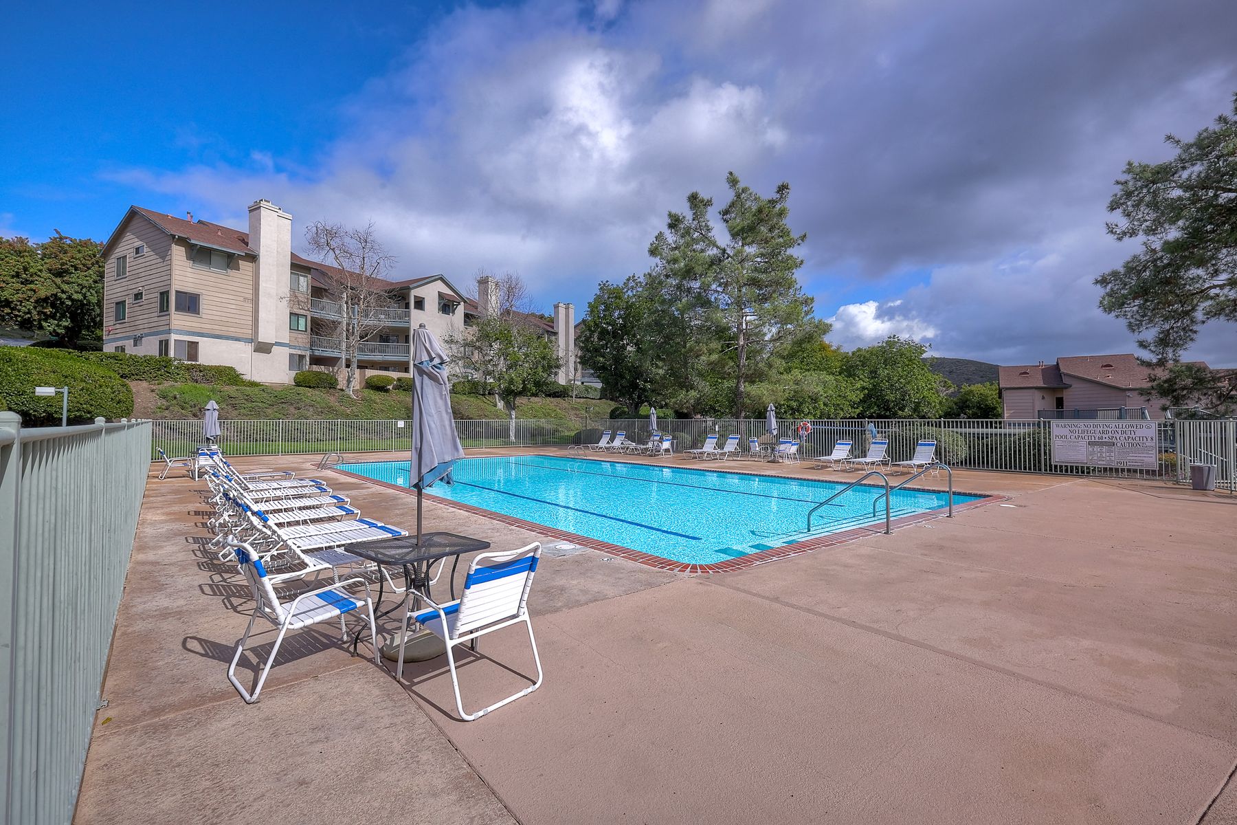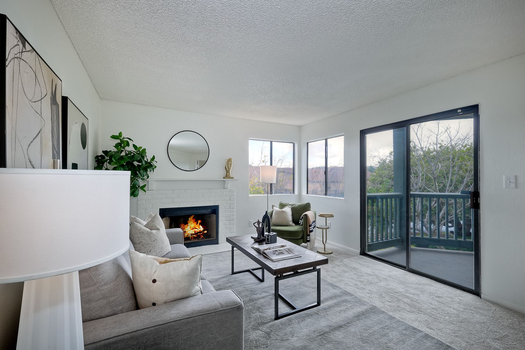 OPPORTUNITY KNOCKS! Welcome to this rarely available 3BD/2BA single level condo in the highly desirable community of Ranchwood. NO STAIRS TO ENTRY. Enter this spacious home and be greeted by peaceful views and large picture windows flooding the space with natural light. New carpet, new vinyl plank flooring and fresh paint all in soft neutral colors invite you into the open floorplan radiating style and comfort. SEE SUPPLEMENT BELOW *** ***Entertaining is a delight in the kitchen equipped with a pantry and plenty of counter space. A cozy fireplace in the winter and cool breezes in the summer create a lifestyle you will enjoy year-round. The primary bedroom offers a roomy walk-in closet and a bright ensuite bath. The two secondary bedrooms are generous in size with oversized closets.. Unwind on the large, private balcony, easily accessed from the living or primary bedroom and relax with the convenience of a full-size stacked washer/dryer in the kitchen. This lovely community features assigned covered parking with storage, a heated pool, spa, tennis courts, large grassy picnic area and is close to shopping, restaurants, movie theater and a quick jump to the 94. FHA and VA approved!