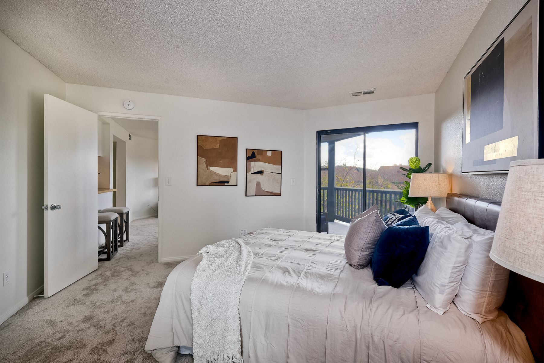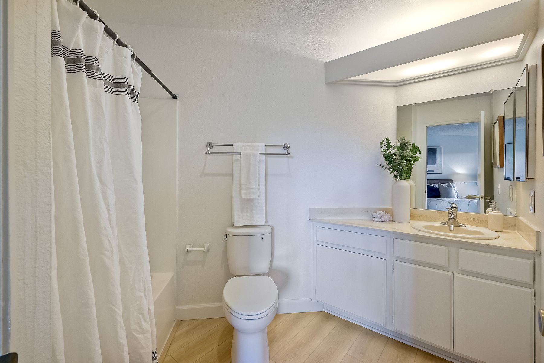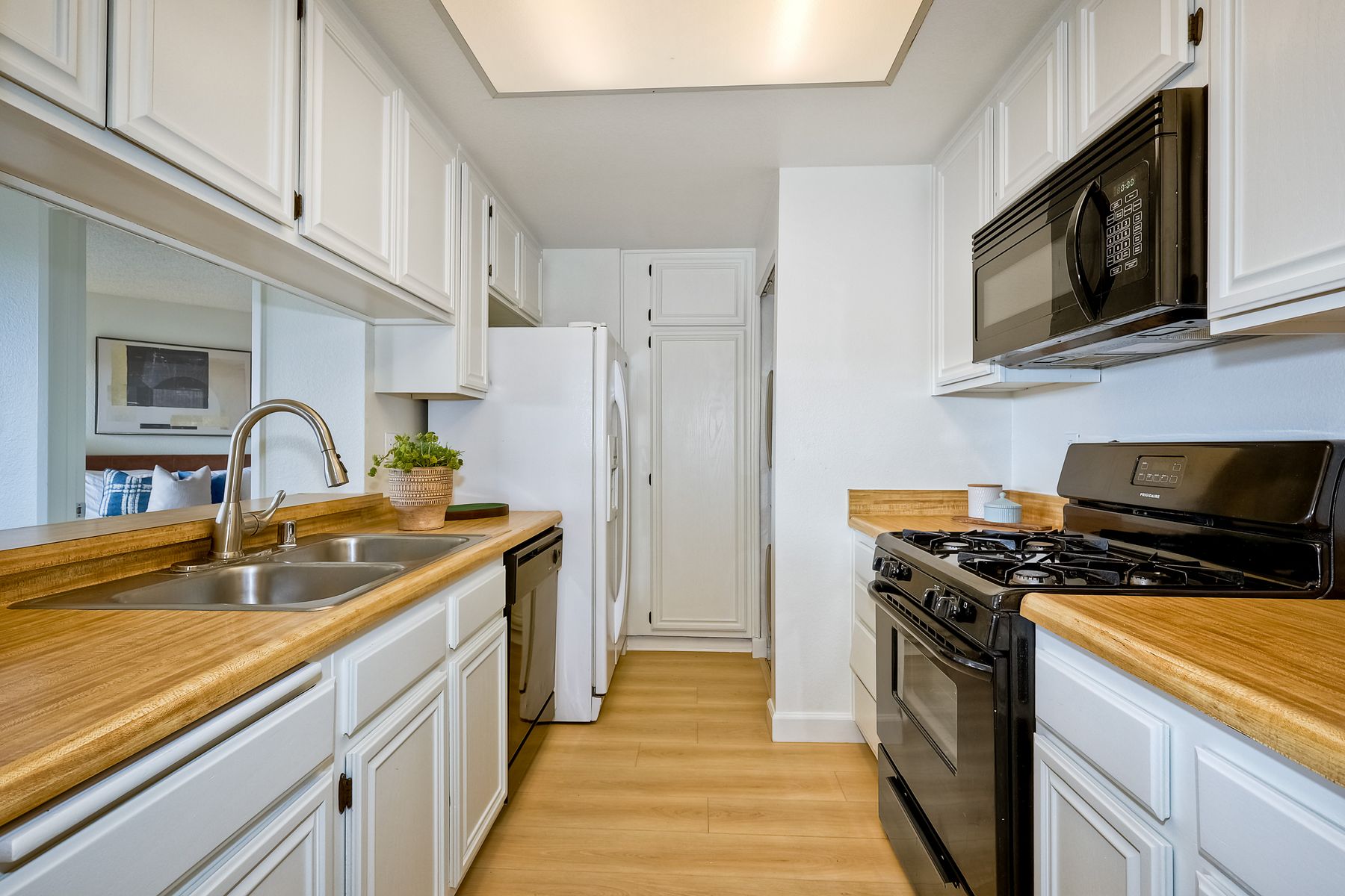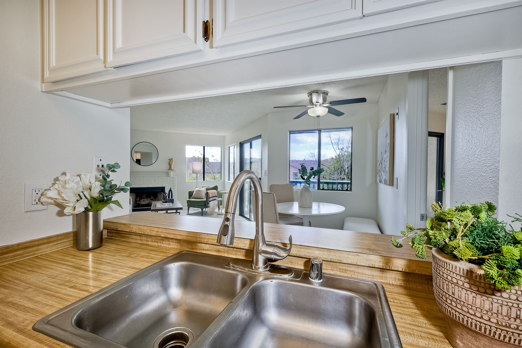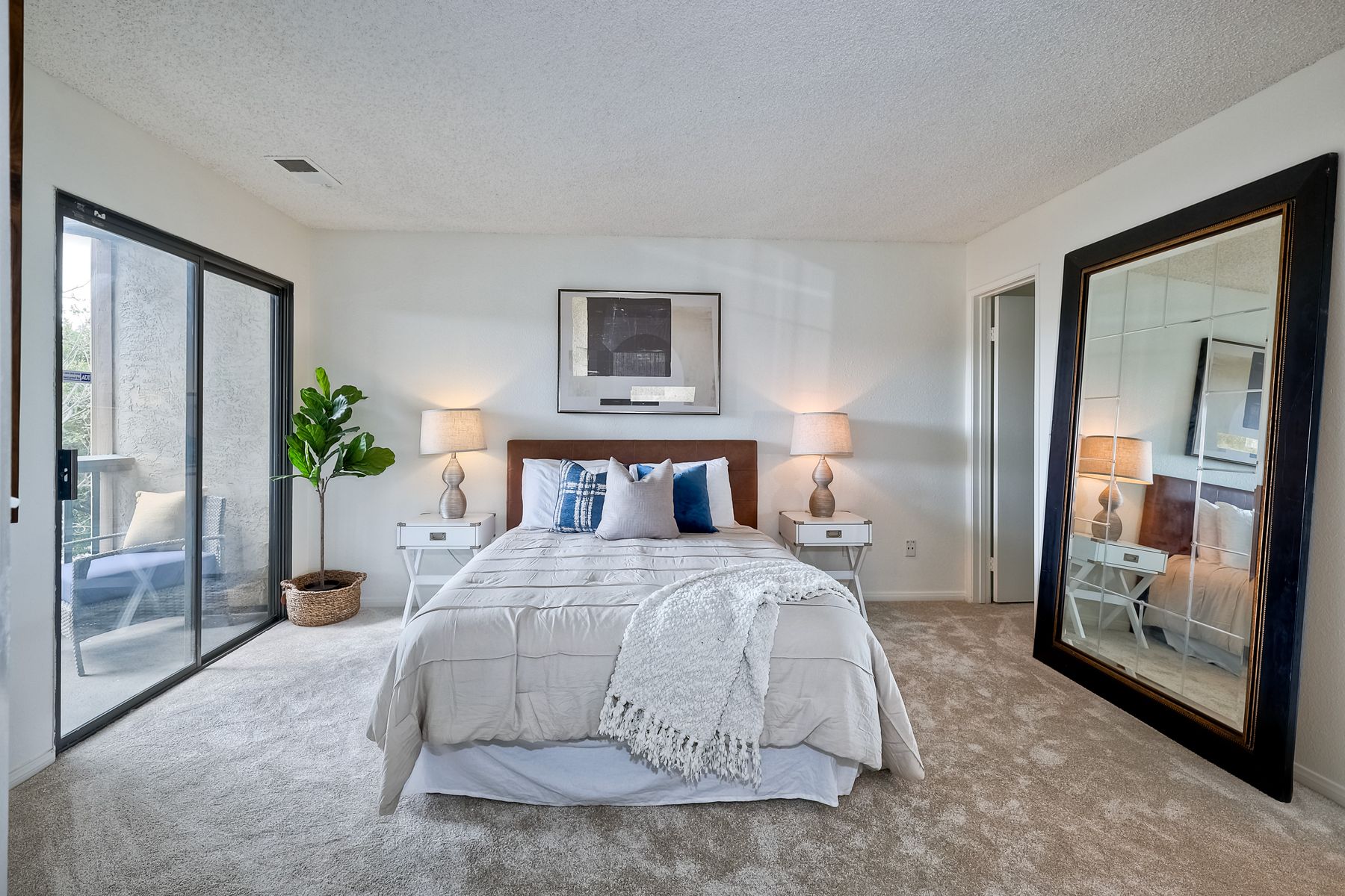 OPPORTUNITY KNOCKS! Welcome to this rarely available 3BD/2BA single level condo in the highly desirable community of Ranchwood. NO STAIRS TO ENTRY. Enter this spacious home and be greeted by peaceful views and large picture windows flooding the space with natural light. New carpet, new vinyl plank flooring and fresh paint all in soft neutral colors invite you into the open floorplan radiating style and comfort. SEE SUPPLEMENT BELOW *** ***Entertaining is a delight in the kitchen equipped with a pantry and plenty of counter space. A cozy fireplace in the winter and cool breezes in the summer create a lifestyle you will enjoy year-round. The primary bedroom offers a roomy walk-in closet and a bright ensuite bath. The two secondary bedrooms are generous in size with oversized closets.. Unwind on the large, private balcony, easily accessed from the living or primary bedroom and relax with the convenience of a full-size stacked washer/dryer in the kitchen. This lovely community features assigned covered parking with storage, a heated pool, spa, tennis courts, large grassy picnic area and is close to shopping, restaurants, movie theater and a quick jump to the 94. FHA and VA approved!