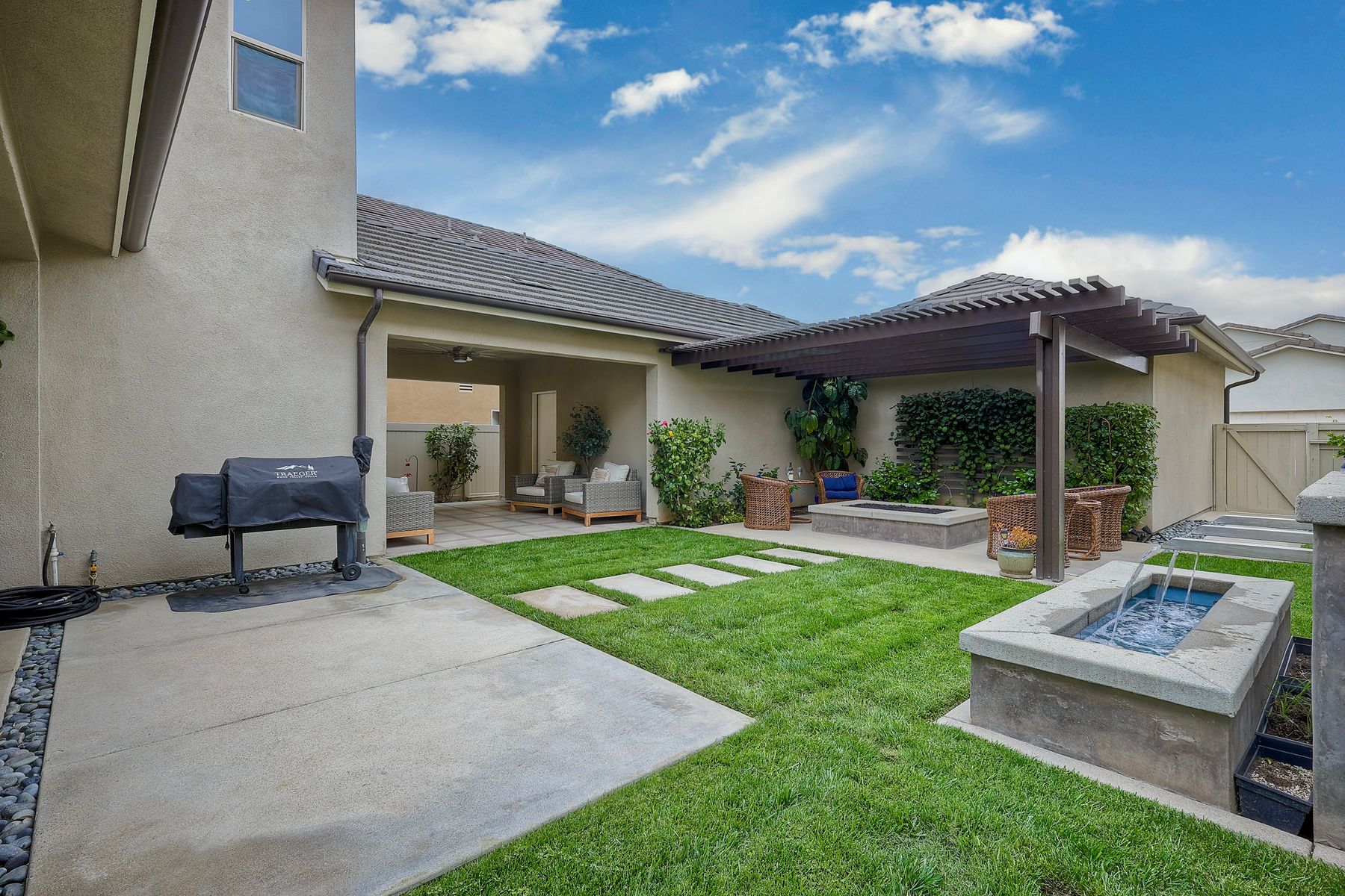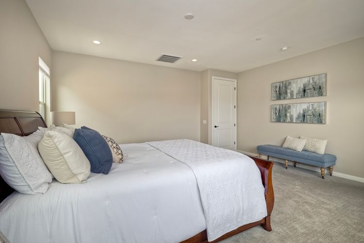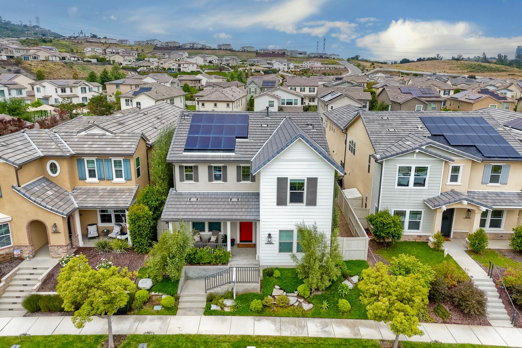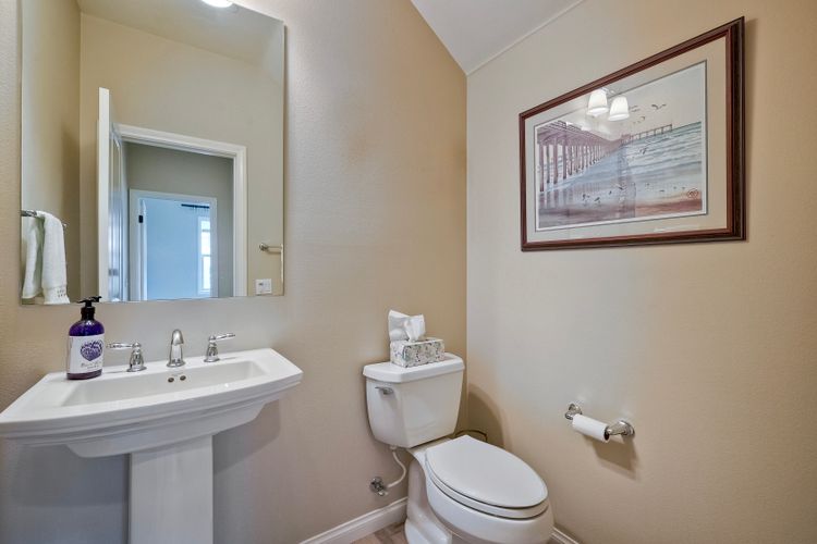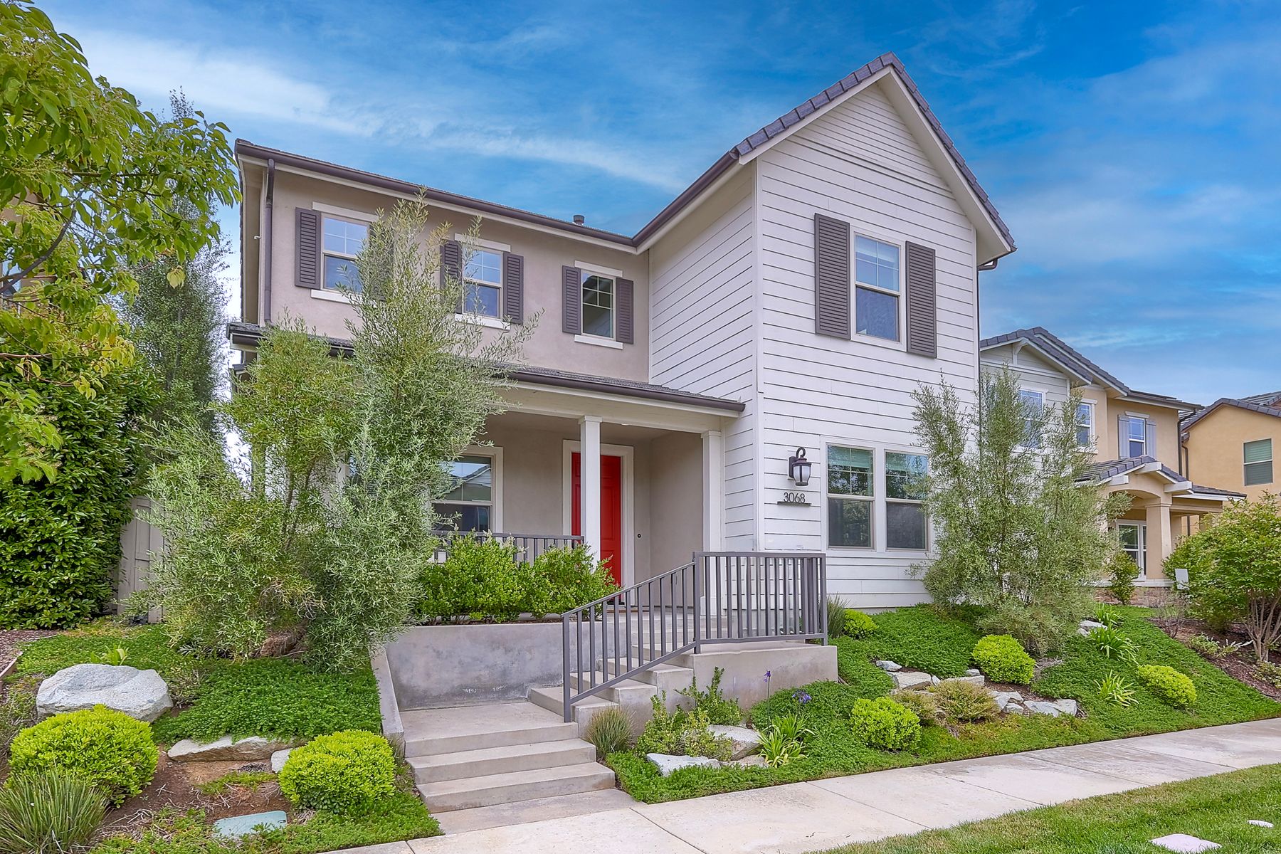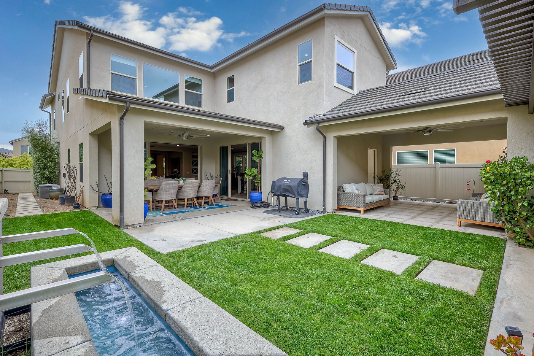 Welcome home to this nearly new home in the highly desirable community of Harmony Grove Village! This stunning home enjoys an open-concept layout with plenty of natural light, granite countertops in the kitchen, custom built cabinetry in the great room and dining area. The kitchen features a 5 burner cooktop, dual ovens, a butlers pantry and a large island to spoil the chef in your family. The upstairs primary bedroom features an large ensuite bathroom with dual sinks, soaking tub, two huge walk in closets and a generous shower. The second floor also features a bonus room, two additional bedrooms, baths and a generous laundry room. The main floor enjoys an Living Room area, and bedroom with ensuite full bath, in addition to the powder bath. Step outside through the La Cantina door and live the California dream lifestyle daily enjoying the backyard California Room, the Alumashade covered patio, the gas fire pit, soothing water feature, all surrounded by the professionally designed and installed mature landscaping. This home also features a PAID SOLAR, a three car garage with built in cabinetry and many more upgrades throughout the home. You'll appreciate that the home is conveniently located nearby the community pool, parks, picnic area playgrounds, sport court and trails.