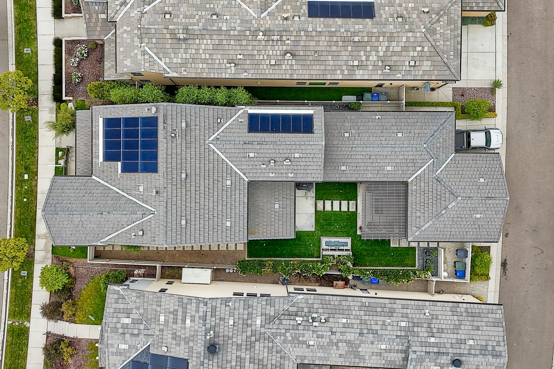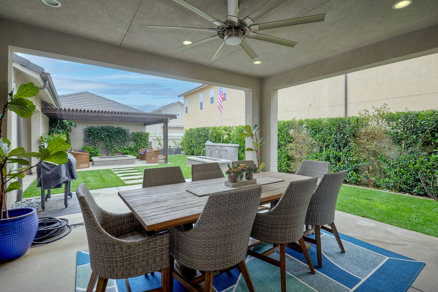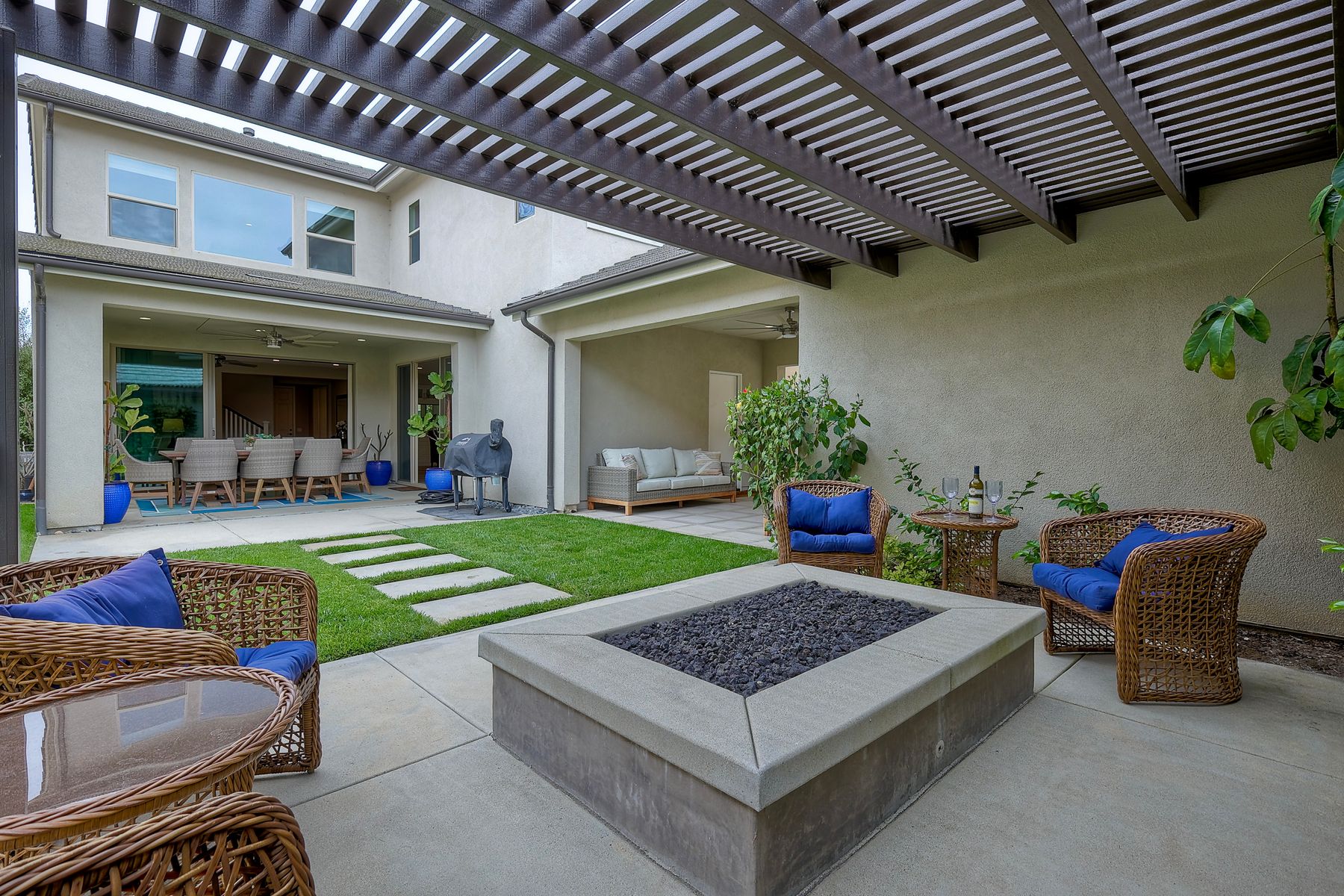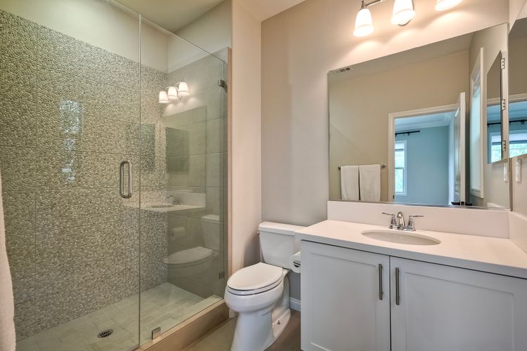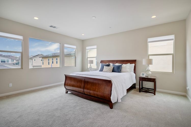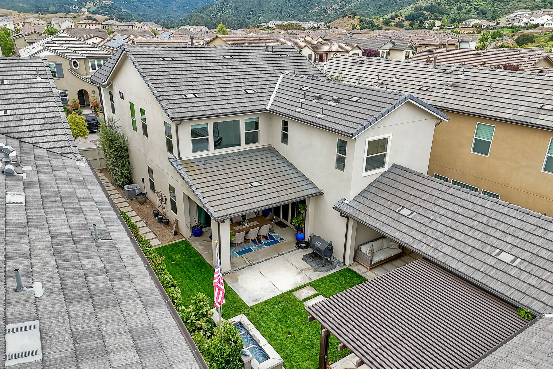 Welcome home to this nearly new home in the highly desirable community of Harmony Grove Village! This stunning home enjoys an open-concept layout with plenty of natural light, granite countertops in the kitchen, custom built cabinetry in the great room and dining area. The kitchen features a 5 burner cooktop, dual ovens, a butlers pantry and a large island to spoil the chef in your family. The upstairs primary bedroom features an large ensuite bathroom with dual sinks, soaking tub, two huge walk in closets and a generous shower. The second floor also features a bonus room, two additional bedrooms, baths and a generous laundry room. The main floor enjoys an Living Room area, and bedroom with ensuite full bath, in addition to the powder bath. Step outside through the La Cantina door and live the California dream lifestyle daily enjoying the backyard California Room, the Alumashade covered patio, the gas fire pit, soothing water feature, all surrounded by the professionally designed and installed mature landscaping. This home also features a PAID SOLAR, a three car garage with built in cabinetry and many more upgrades throughout the home. You'll appreciate that the home is conveniently located nearby the community pool, parks, picnic area playgrounds, sport court and trails.