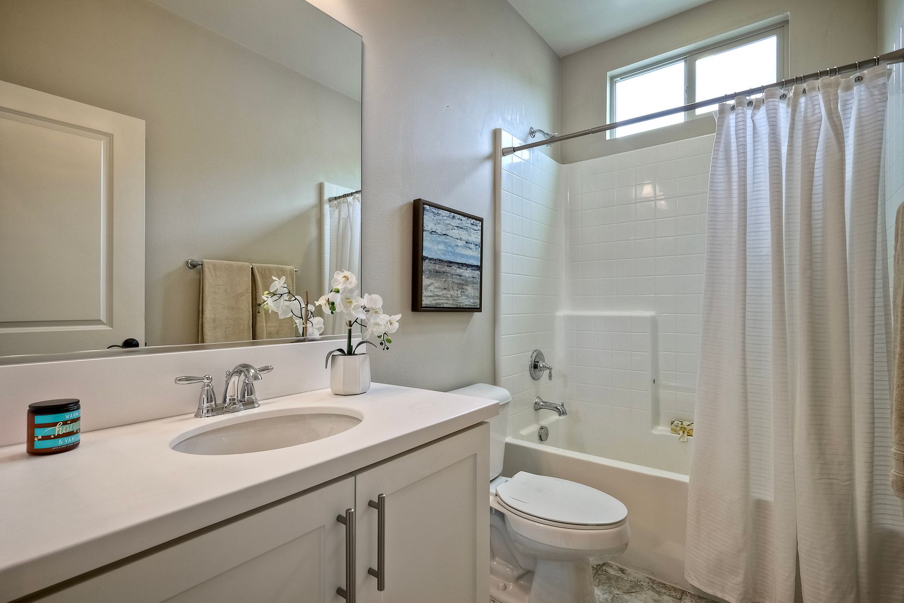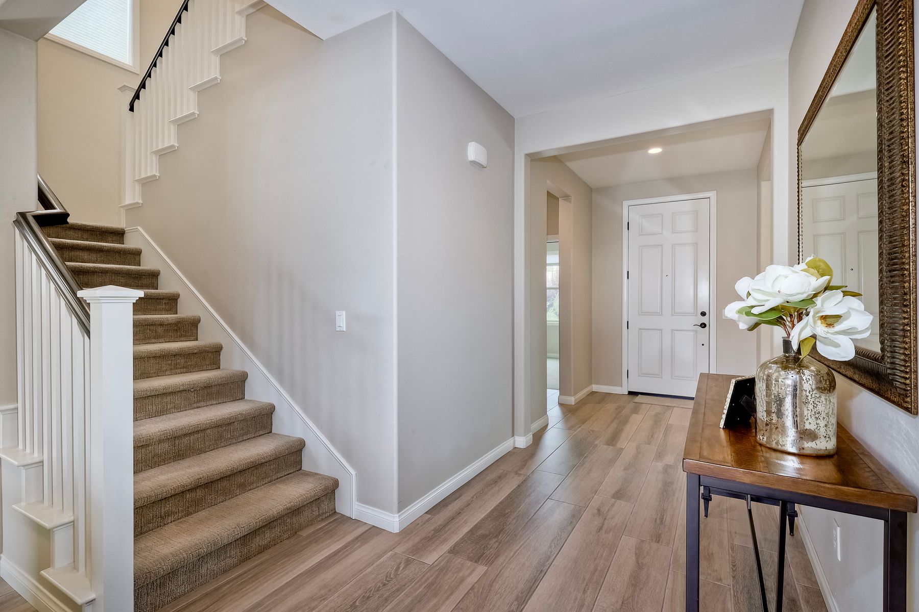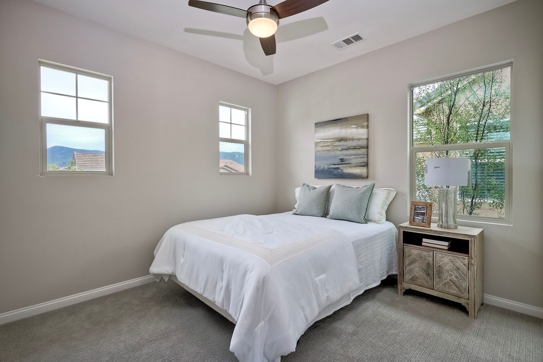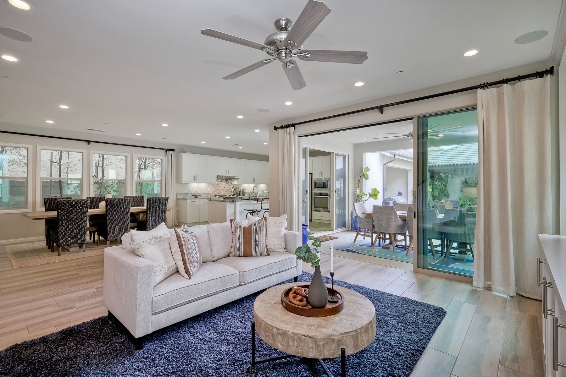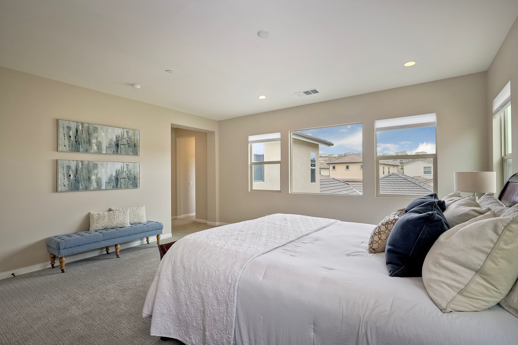 Welcome home to this nearly new home in the highly desirable community of Harmony Grove Village! This stunning home enjoys an open-concept layout with plenty of natural light, granite countertops in the kitchen, custom built cabinetry in the great room and dining area. The kitchen features a 5 burner cooktop, dual ovens, a butlers pantry and a large island to spoil the chef in your family. The upstairs primary bedroom features an large ensuite bathroom with dual sinks, soaking tub, two huge walk in closets and a generous shower. The second floor also features a bonus room, two additional bedrooms, baths and a generous laundry room. The main floor enjoys an Living Room area, and bedroom with ensuite full bath, in addition to the powder bath. Step outside through the La Cantina door and live the California dream lifestyle daily enjoying the backyard California Room, the Alumashade covered patio, the gas fire pit, soothing water feature, all surrounded by the professionally designed and installed mature landscaping. This home also features a PAID SOLAR, a three car garage with built in cabinetry and many more upgrades throughout the home. You'll appreciate that the home is conveniently located nearby the community pool, parks, picnic area playgrounds, sport court and trails.