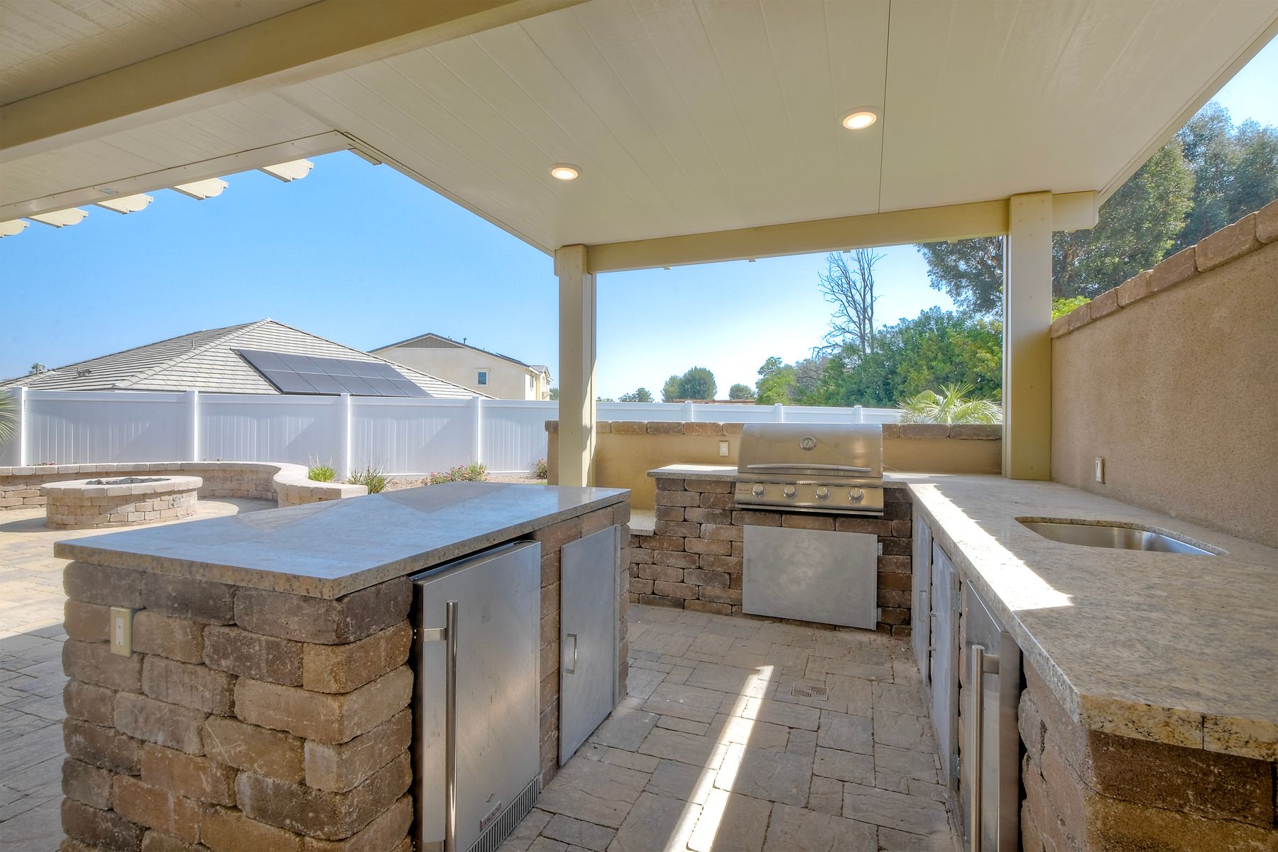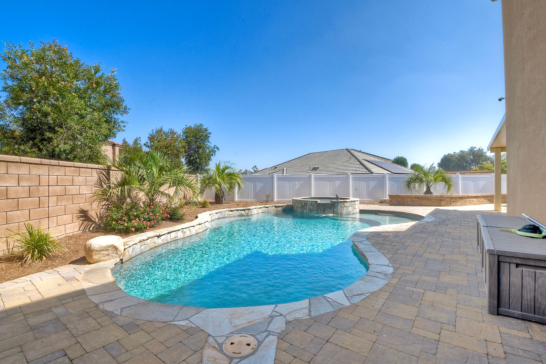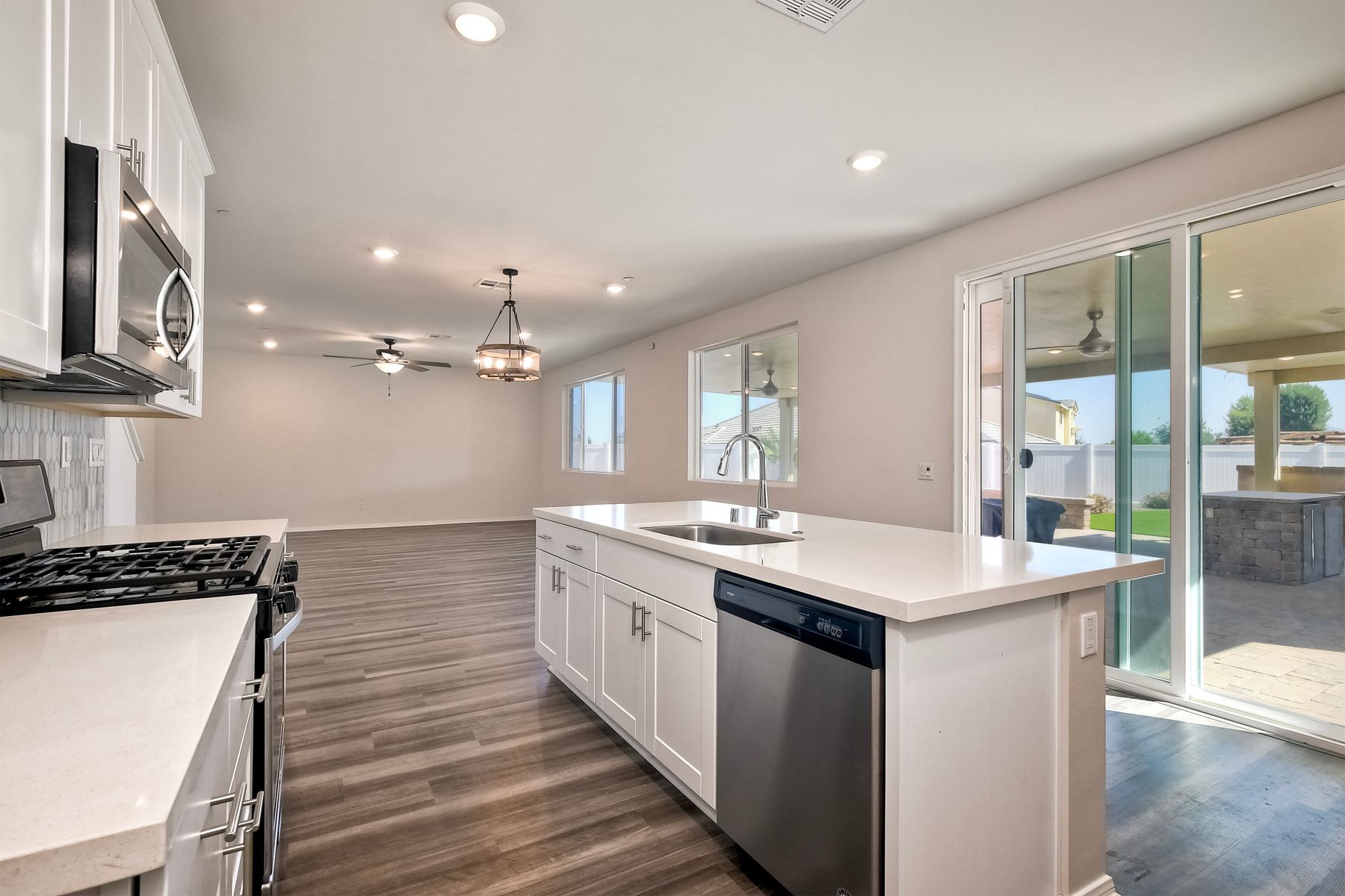 Beautifully Upgraded & Maintained Cul-de-Sac Home in Meadow Run with Private Pool & Solar! Welcome to this stunning 5-bedroom, 3-bathroom home located at the end of a quiet cul-de-sac in the highly sought-after Meadow Run community of Menifee. With approximately 2,872 sq ft of beautifully designed living space, this home offers style, functionality, and unmatched outdoor living—all in a prime location just blocks from award-winning Paloma High School and steps from the neighborhood park. Popular floorplan offers open-concept great room, where upgraded luxury vinyl plank flooring flows seamlessly throughout the main living areas. The heart of the home is the chef’s kitchen, featuring a massive center island, sleek quartz countertops, abundant cabinetry, pantry, and stainless steel appliances—a dream space for cooking, entertaining, or enjoying family dinners. The first floor includes a full bedroom and bathroom, ideal for guests or multi-generational living. See Supplement=> Upstairs, you'll find a spacious family room, full laundry room, and private primary suite boasting a large walk-in closet and a luxurious en suite bath with modern finishes and ample space to unwind. Designed for California living, the oversized backyard is an entertainer’s paradise—complete with a built-in outdoor kitchen, pergola with pool table, and a private pool and spa for endless summer fun. Enjoy the turf area, low-maintenance landscaping, and serene setting—all perfect for relaxing or hosting friends and family. Additional features include owned solar for energy efficiency, recessed lighting throughout, and a 2-car attached garage + driveway.