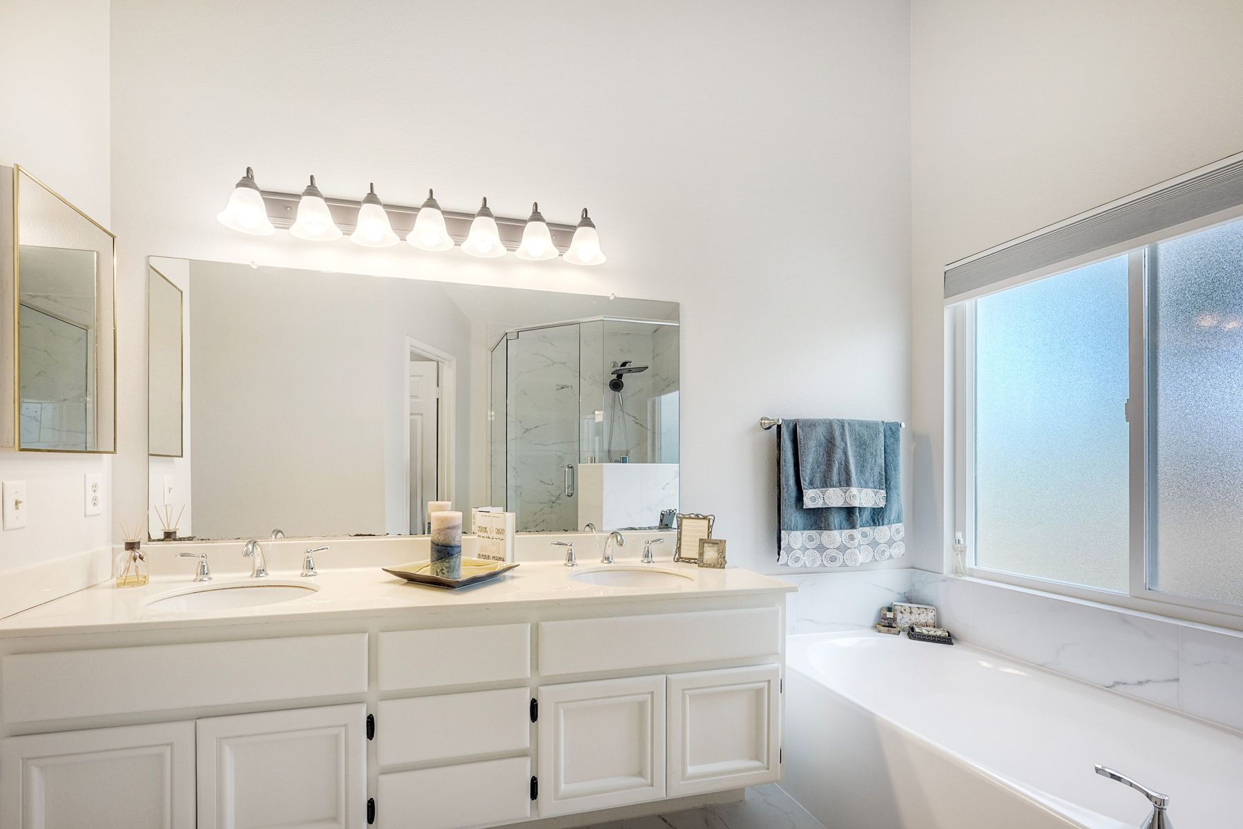 Double sinks in bath(s), Double Sinks in Primary Bath, Exhaust fan(s), Privacy toilet door, Separate tub and shower, Walk-in shower, Shower, Bathtub