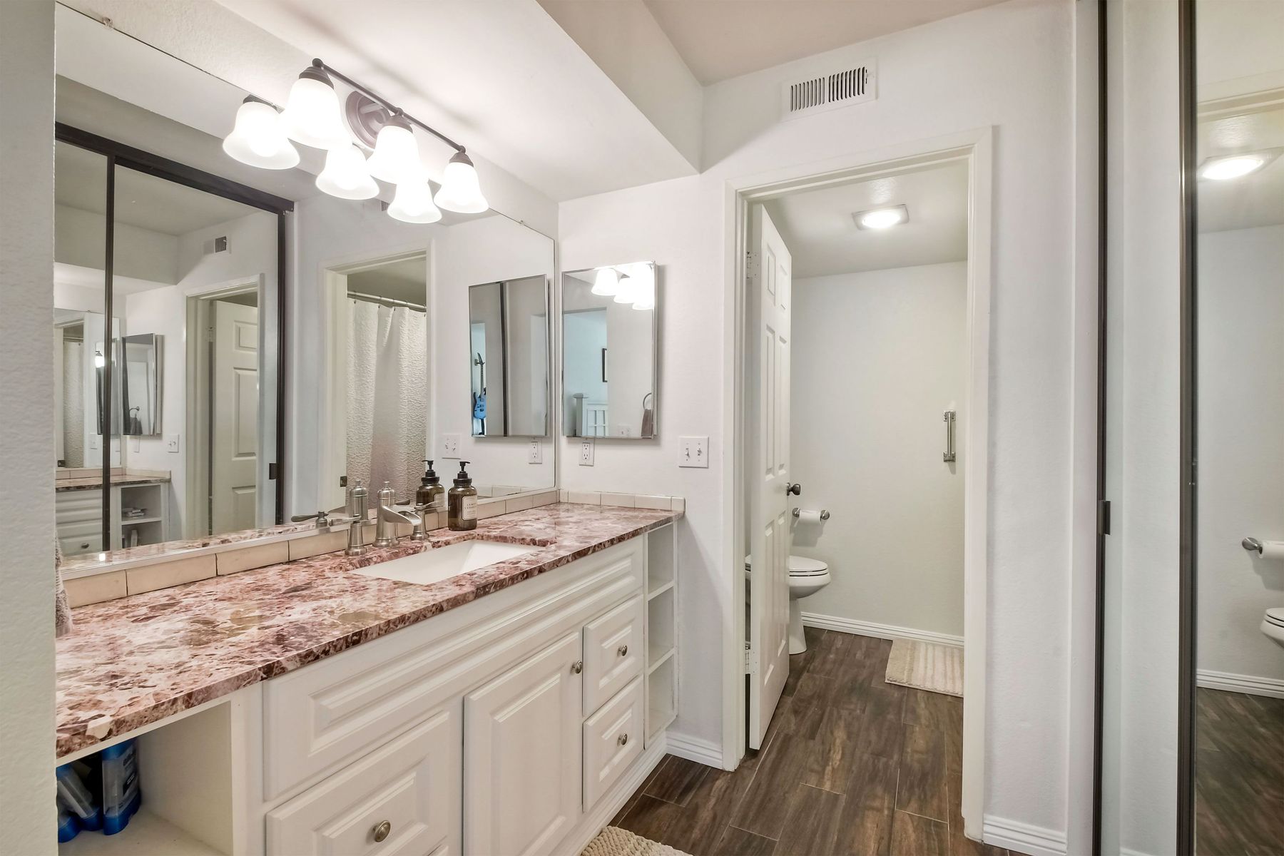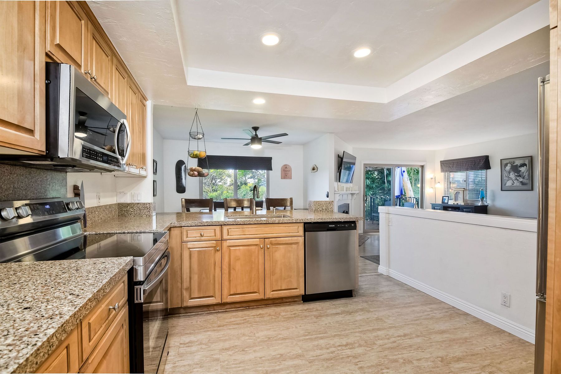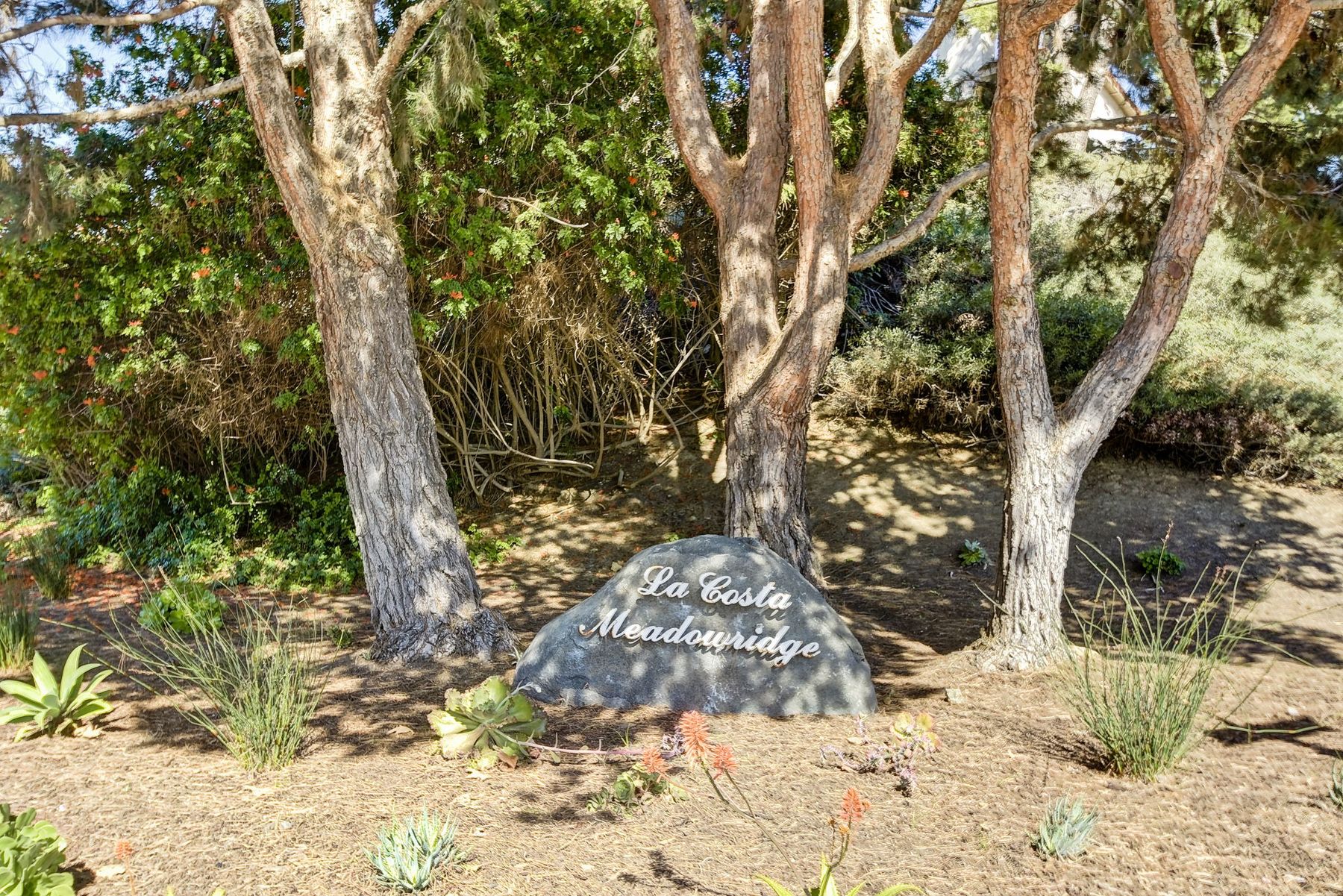 La Costa Meadowridge in Carlsbad! Located at the end of a quiet tree lined cul-de-sac with no one behind you. Light, bright, open floor plan, stainless steel appliances, granite counter tops, recessed lighting, dual pane windows, updated bathrooms, nice views off the balcony, 2 car attached garage, enjoy a glass of wine or BBQ with friends & family on the balcony or fenced in rear patio. Park like setting, lush mature landscaping. Water is included in the HOA!