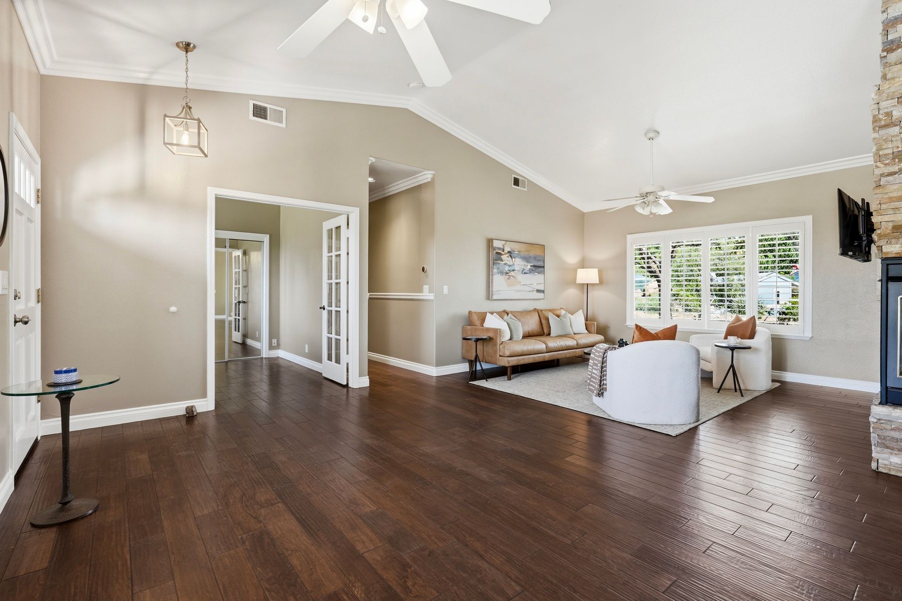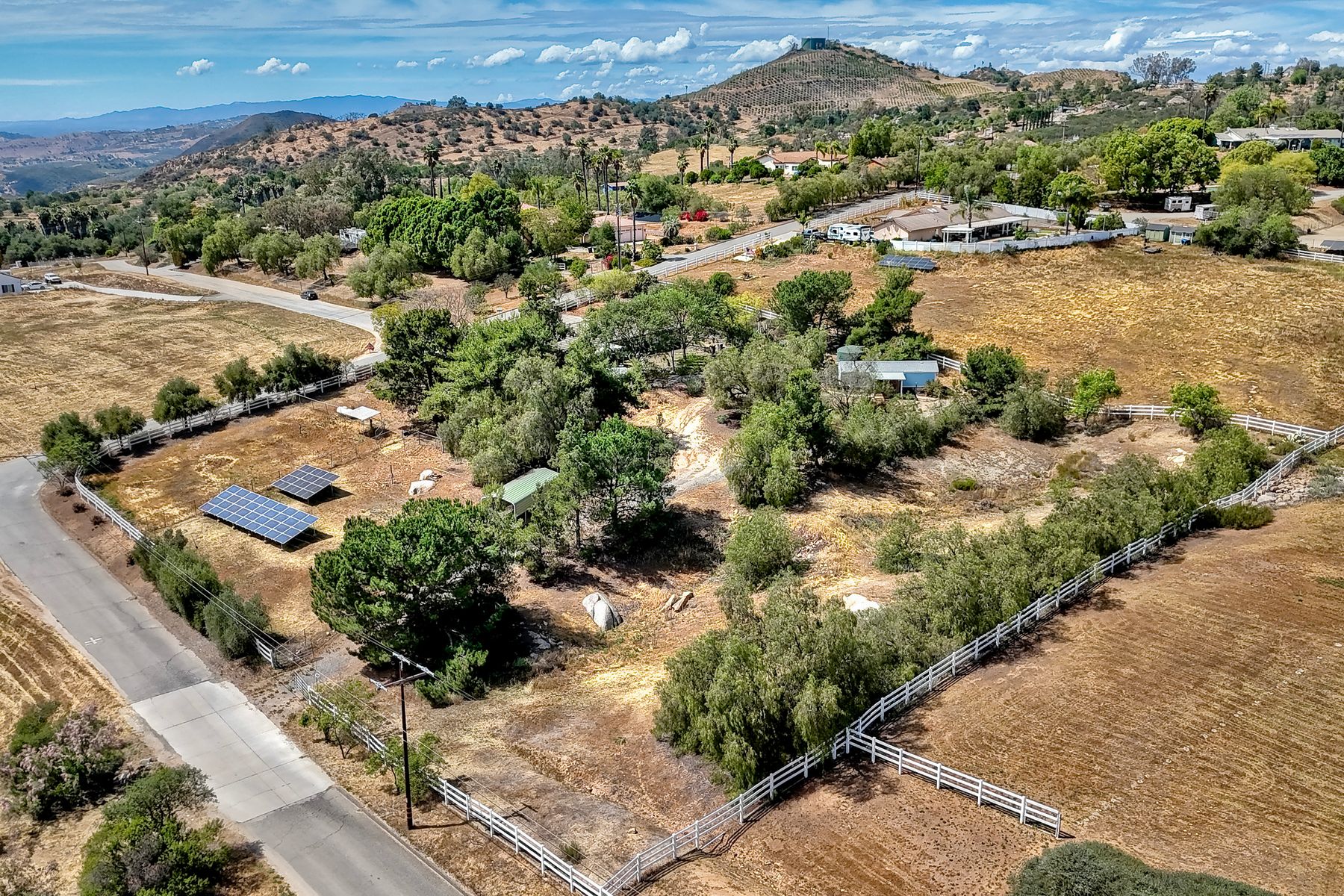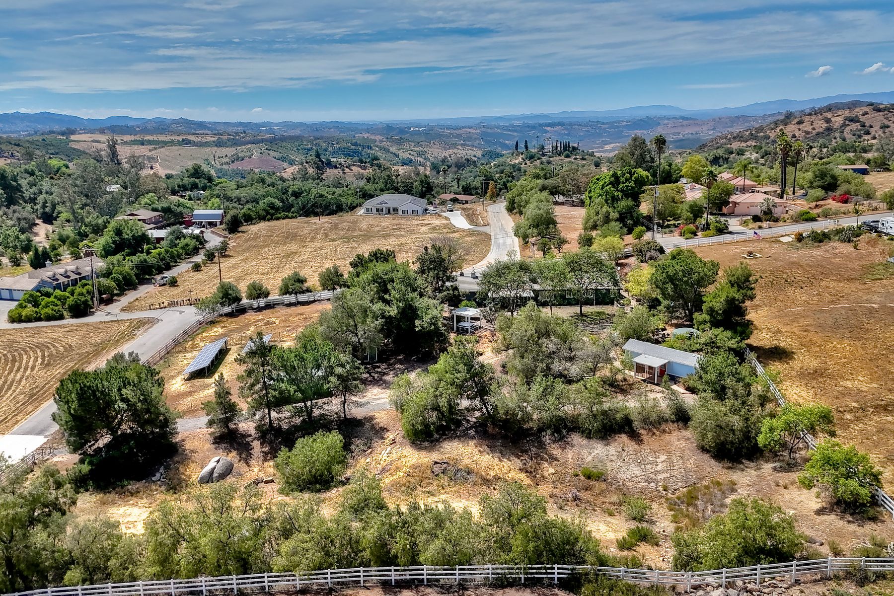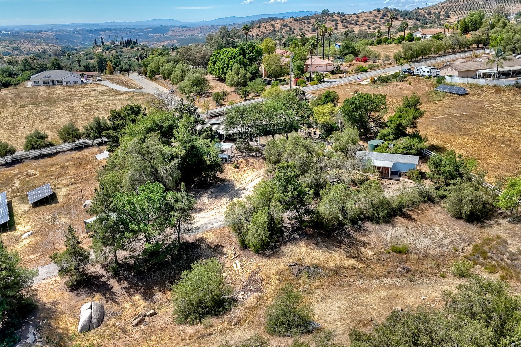 Nestled in the heart of Valley Center, this inviting single-level, ranch-style home offers 2,570 square feet of serene country living. Set on 2.33 acres, the property features a three-car garage, well water in addition to Valley Center Municipal Water, and 48 fully owned solar panels. Designed with both comfort and efficiency in mind, the home includes solar hot water, a backup generator, and two septic systems. An on-site ADU, complete with its own septic system and propane, adds flexibility for guests or extended living. Equestrian-friendly with a tack shed and thoughtfully designed layout, the property also offers multiple driveways and power access points throughout. This is modern country living at its finest. Your private retreat awaits.