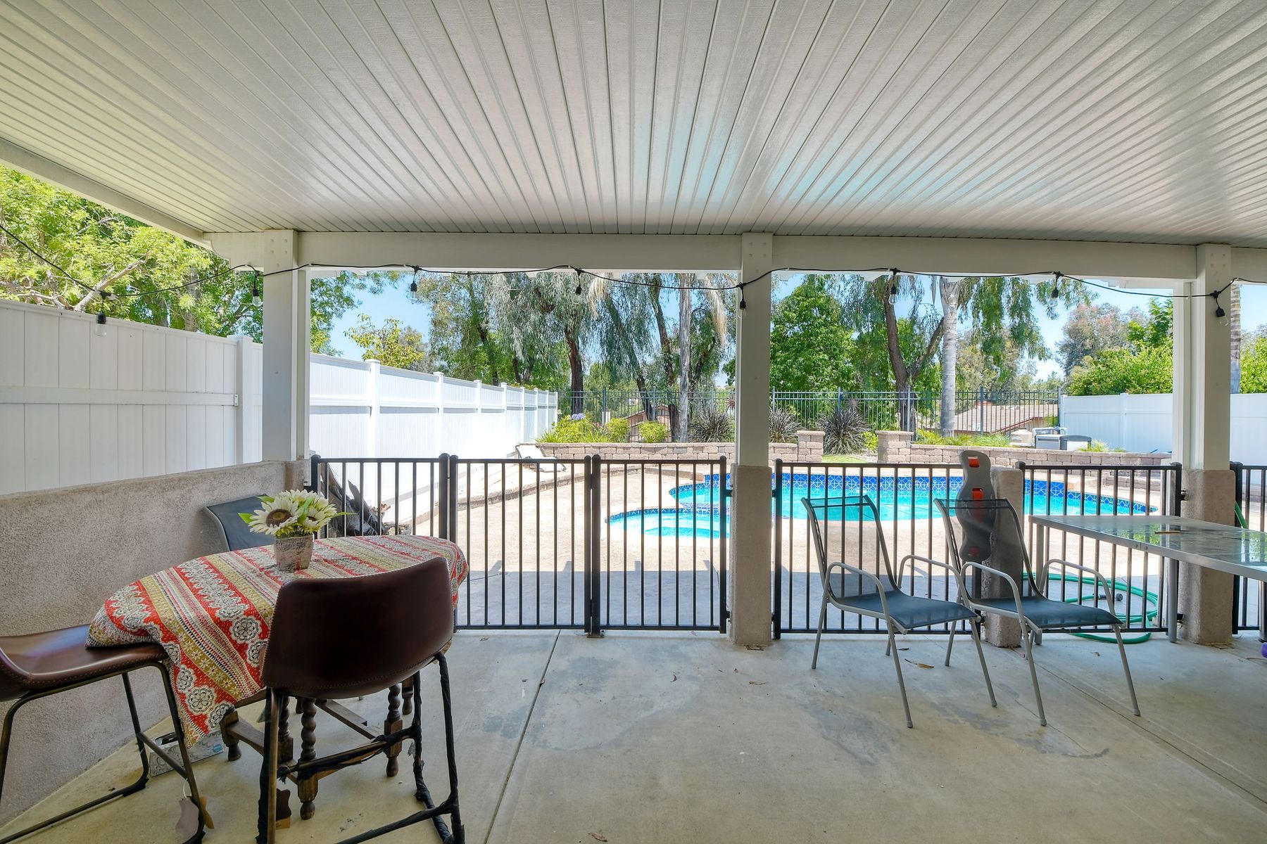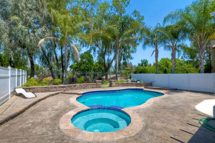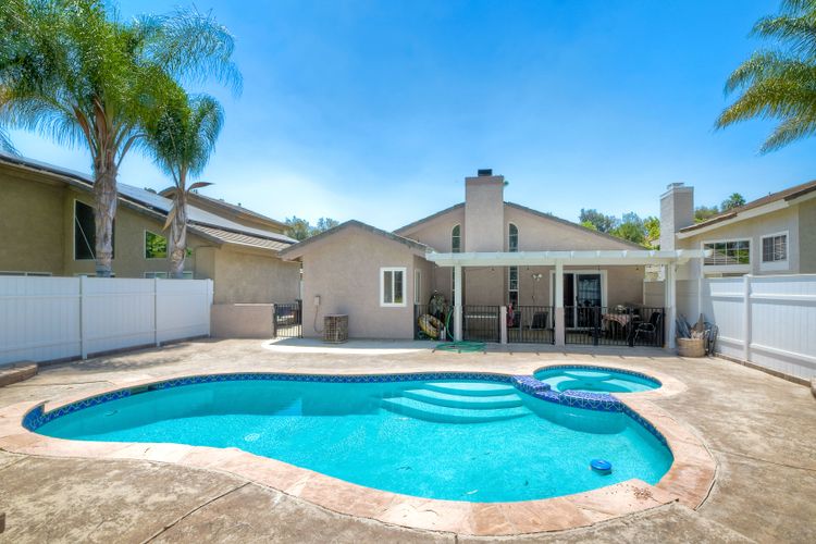 Beat the heat in this 1 sty pool/spa home located in The Village Groves.Close to wineries, restaurants, shopping, Temuku Hills Legends Golf Club.Perfect for entertaining.Vaulted ceilings has a very open & bright feel.Central A/C. Updated bathrooms w/ skylights.Living room has fireplace w/ Dining room nearby.Master Br. w/dual closets/slider doors to outdoor patios. Newer pool equipment, water heater, SS appl. Vinyl fencing & no neighbor behind and Views North. Great deal so Hurry.. Community Tot lot.. Neighborhoods: The Village Groves Equipment: Garage Door Opener Other Fees: 0 Sewer: Sewer Connected Topography: LL