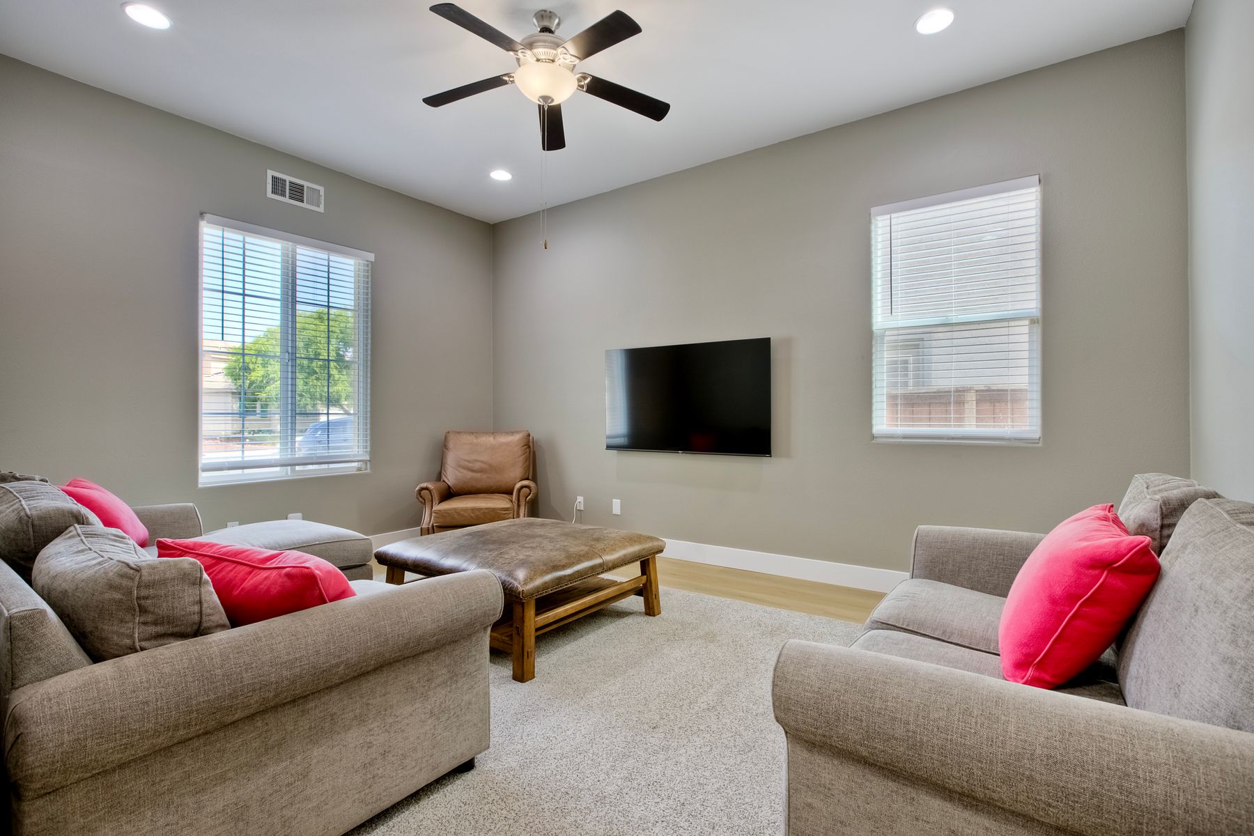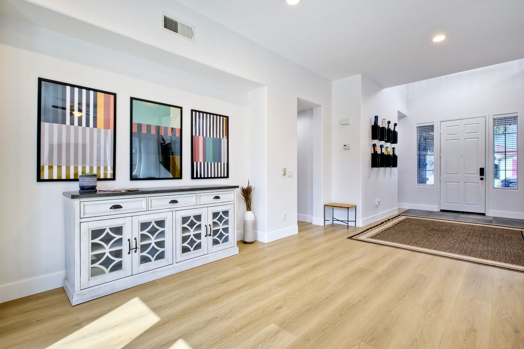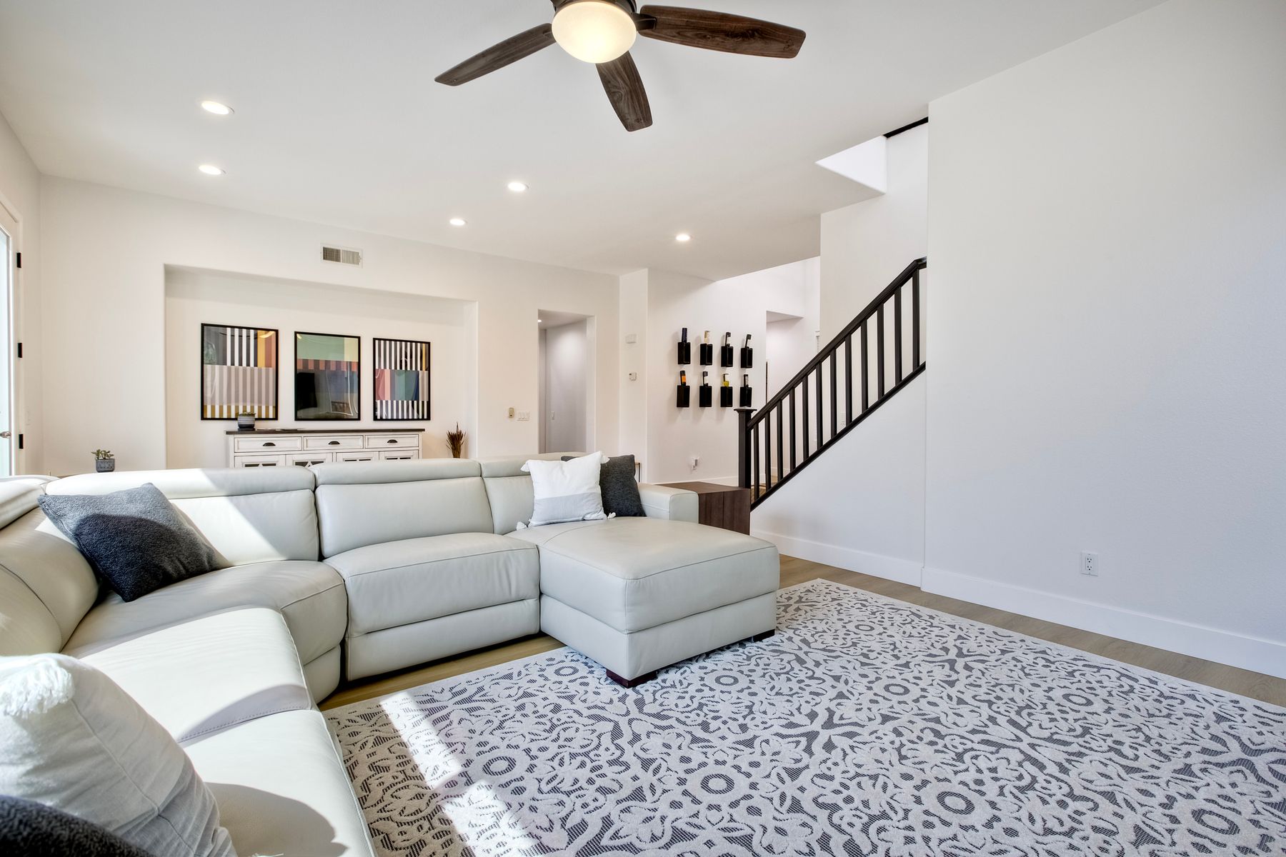 Tastefully remodeled home near Temecula's wine country. Offering four bedrooms, three full bathrooms, office, loft, large great room and family room with fireplace off the newly designed kitchen. This home is ideal for extended family, homeschooling or a work from home situation with a full bedroom, bathroom and office on the main level. Beautiful luxury vinyl wood flooring, high baseboards and designer fixtures highlight the redesign of the kitchen and bathrooms. The low maintenance backyard features a large patio to enjoy the sunny days and tranquil evenings. This neighborhood is conveniently located to schools, shopping and dining and has NO HOA fees! Temecula School District.