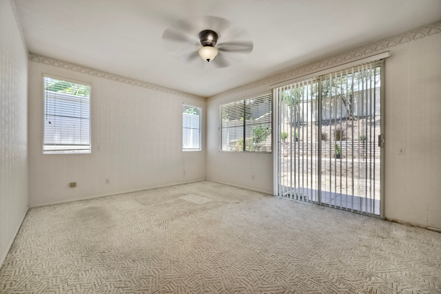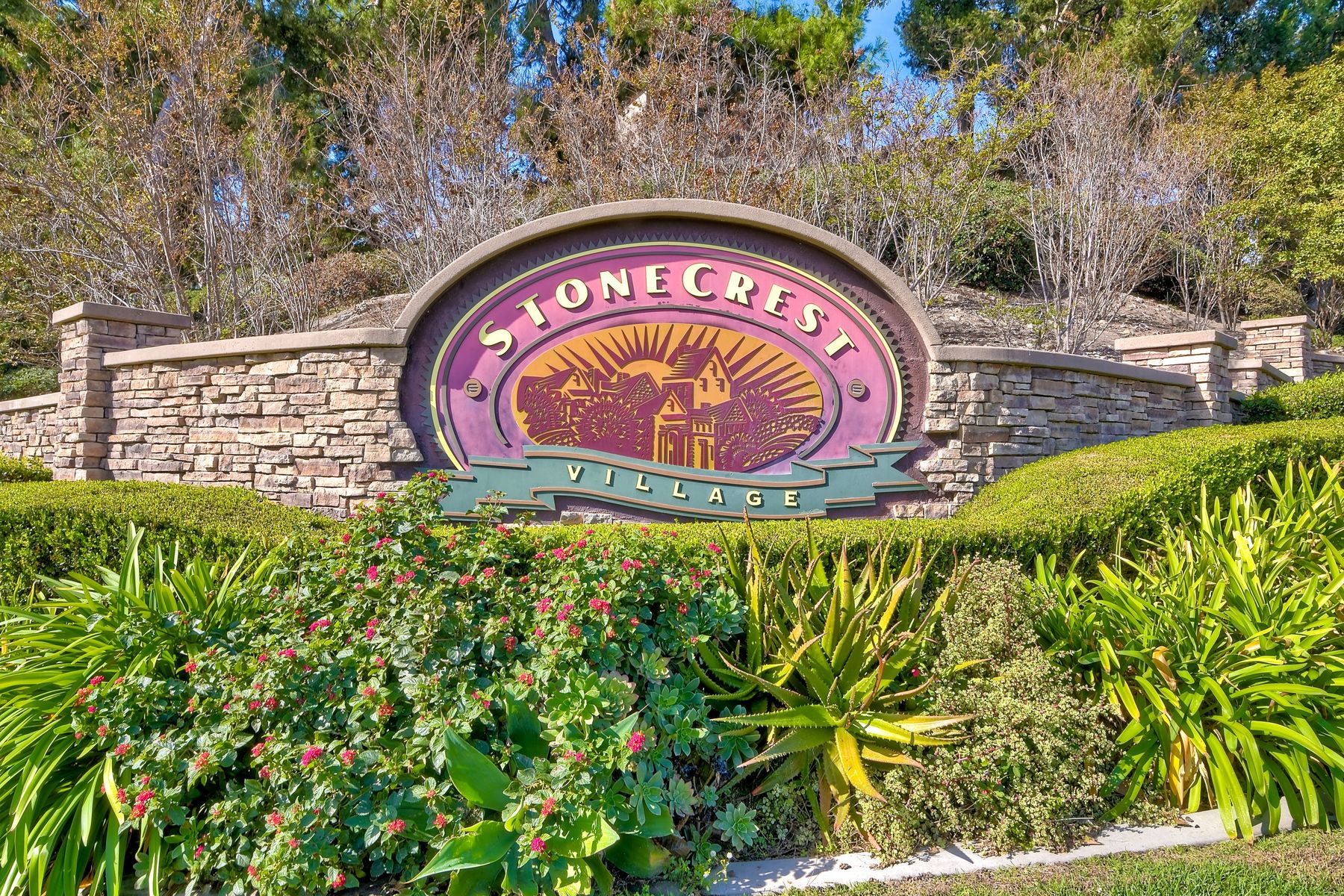 Rare one of a kind Single Story in Stonecrest Village! One of only seven homes with this desirable single level floor plan in the highly sought-after Stonecrest Village community, this bright light filled corner-lot beauty offers charm, comfort, and convenience. The home’s cheerful ambiance is enhanced by its sunny interiors and welcoming curb appeal, featuring a lush green tree and landscaping out front and a private backyard perfect for relaxing or entertaining. Inside, you’ll find 3 spacious bedrooms, including a large primary suite with a walk-in closet, a bright white kitchen with abundant cabinets and counter space, and a cozy living room with a fireplace. Other features include laminate flooring, ceiling fans in bedrooms, a separate laundry area, and a 2-car garage with direct home access. Stonecrest Village offers exceptional amenities, including a sparkling pool, spa, fitness center, and community room, all just steps from your front door. Located across from the beautiful community park and playground. This property is close to shopping, restaurants, and convenient freeway access—this home is truly a rare find!