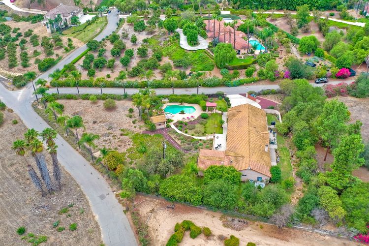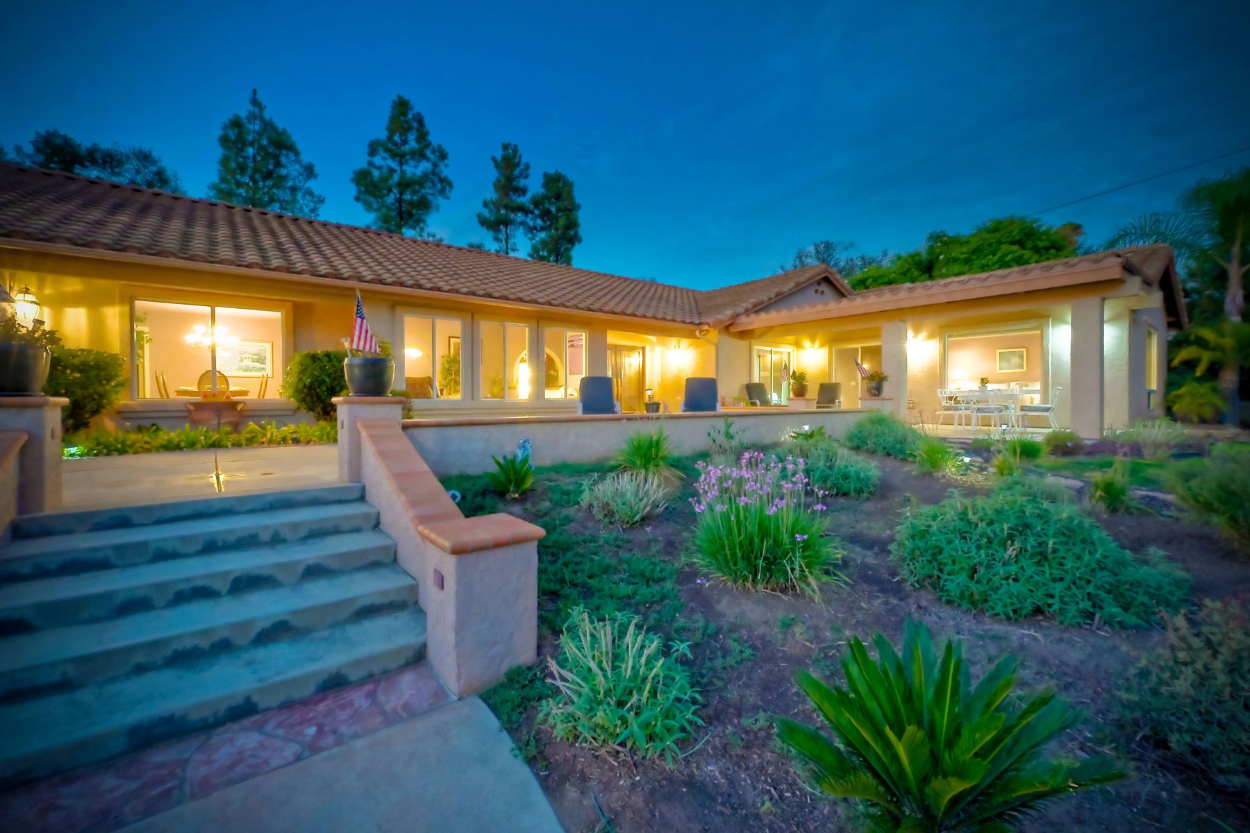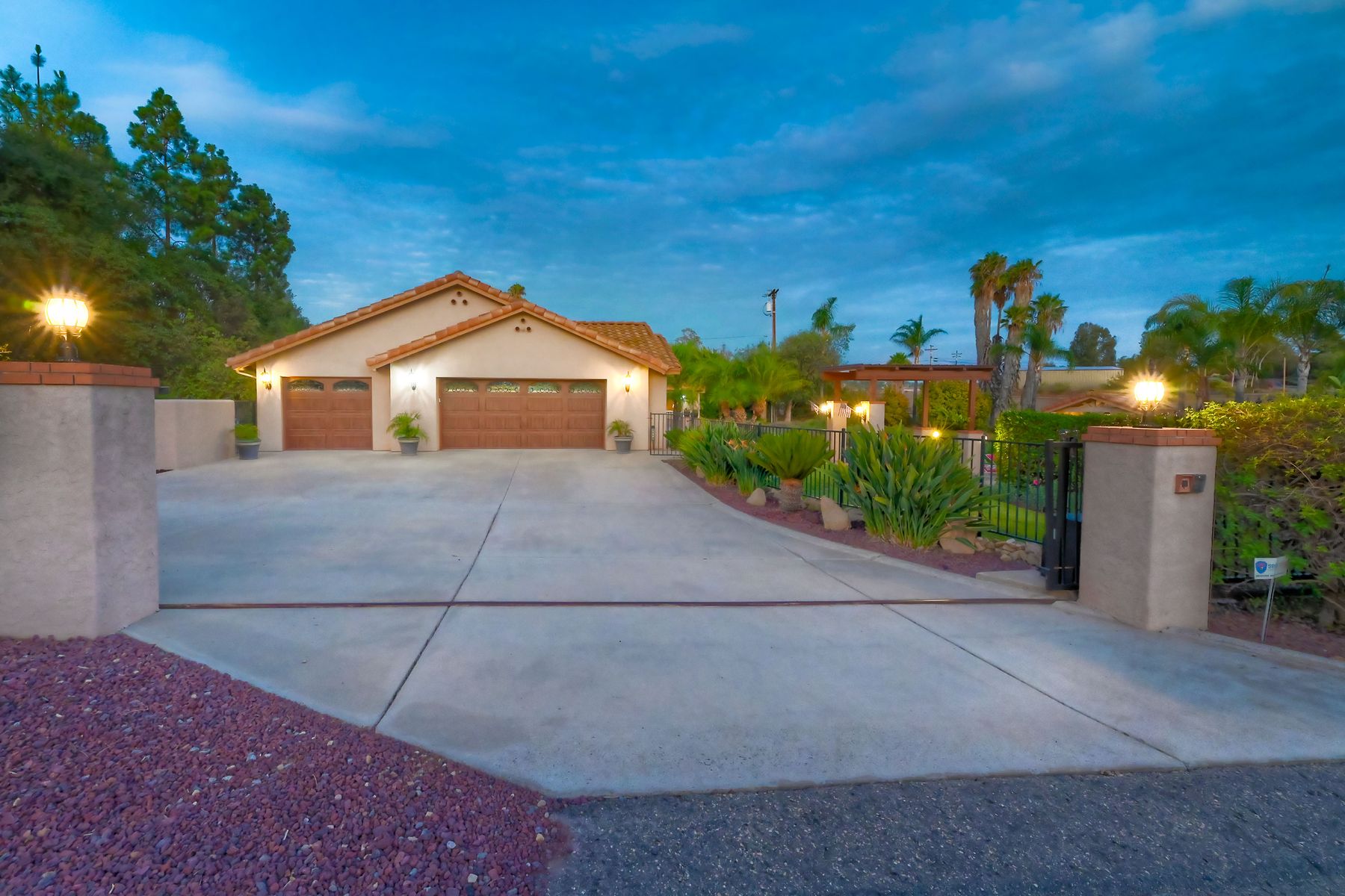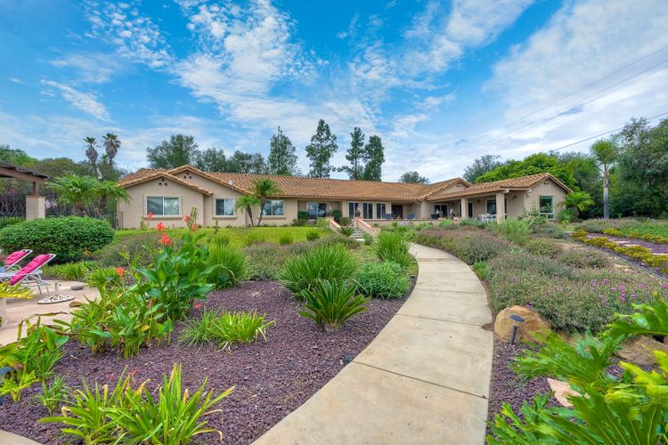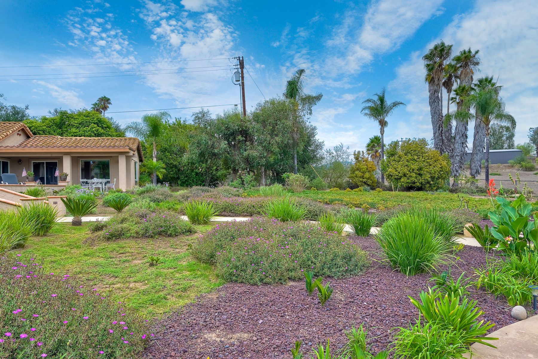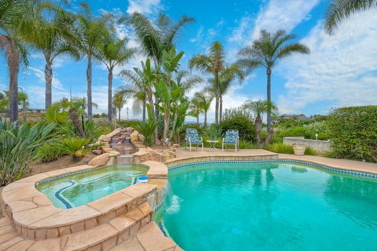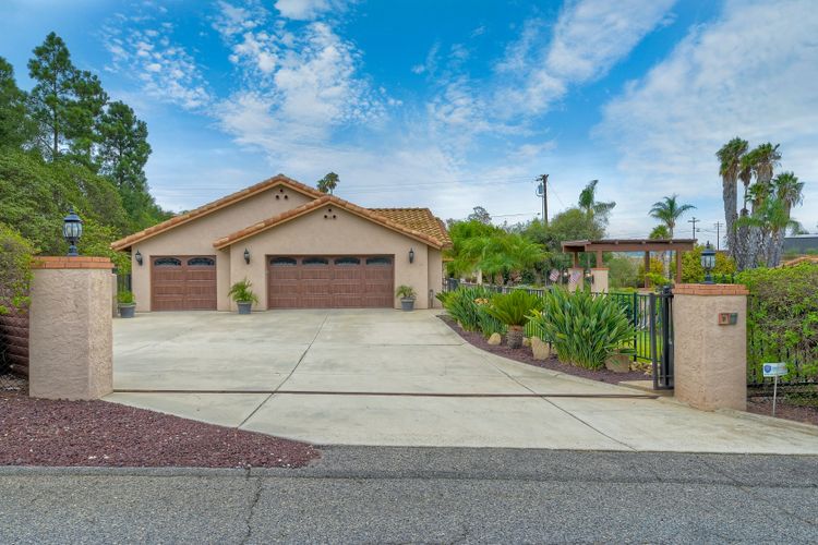Amazing 3300 SqFt single story home tucked away behind private gates – this resort like oasis on 1.5 level acres awaits you! Close to all that the charming Fallbrook community offers yet less than 10 minutes from I-15/I-76 access (although as quiet as a sanctuary). TWO Master bedroom suites (perfect for multi-generational living) w/ two additional generously sized bedrooms ~ four full bathrooms. Renovated kitchen opens to spacious family room with elegant fireplace. Living room & dining room overlook luxuriously landscaped front yard, pool & spa area. Additional renovations include plank style tile flooring in all main living areas and BR’s, stainless steel appliances, dual pane windows & doors throughout, new garage doors and newer AC units (yes – the primary Master has its own HVAC and tankless water heater). With CA living in mind – this estate offers a plethora of outdoor living! Sliding glass doors off both Master suites and the family room invite you to dine al dente, sip coffee while enjoying your views and entertain to your hearts delight. Abundant fruit producing trees include: avocado, macadamia nut, orange, lemon, fig, nectarine, peach, apricot and apple. Veggie garden: tomatoes, eggplant, zucchini, chilies and cukes!! This home and all that it has to offer – beyond delightful!
