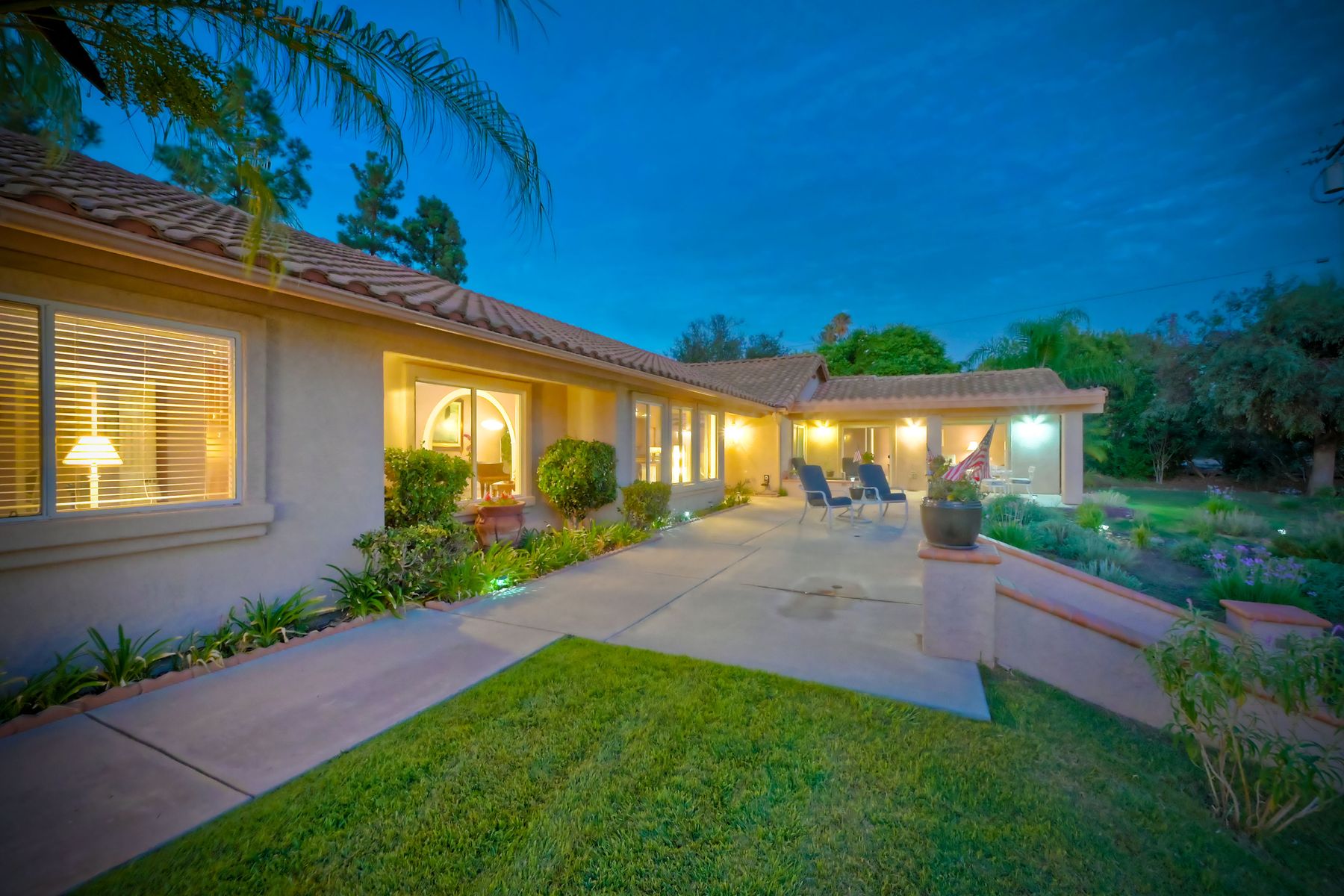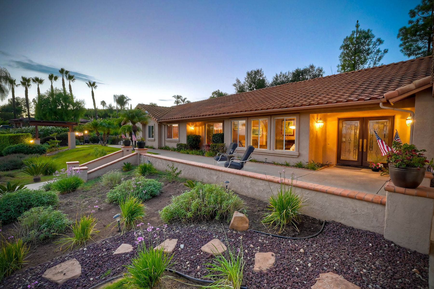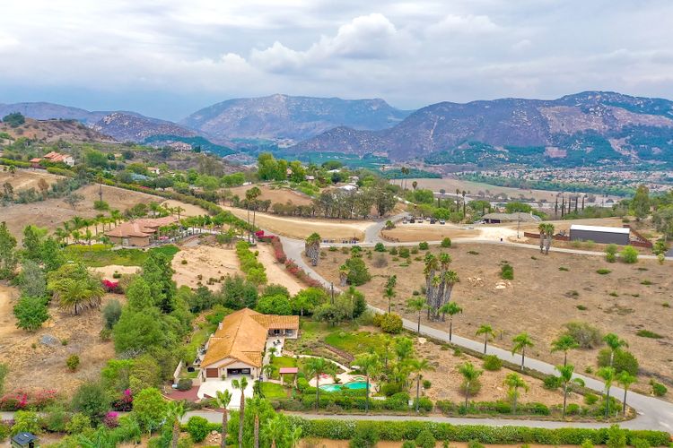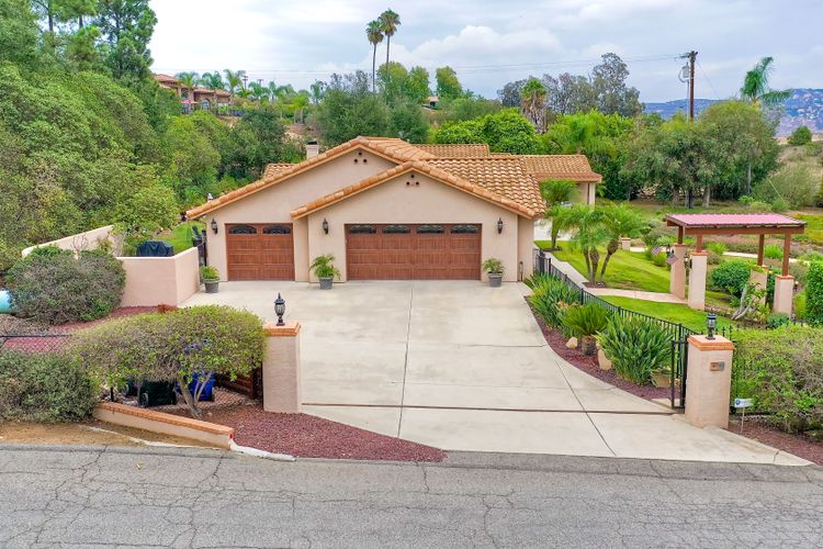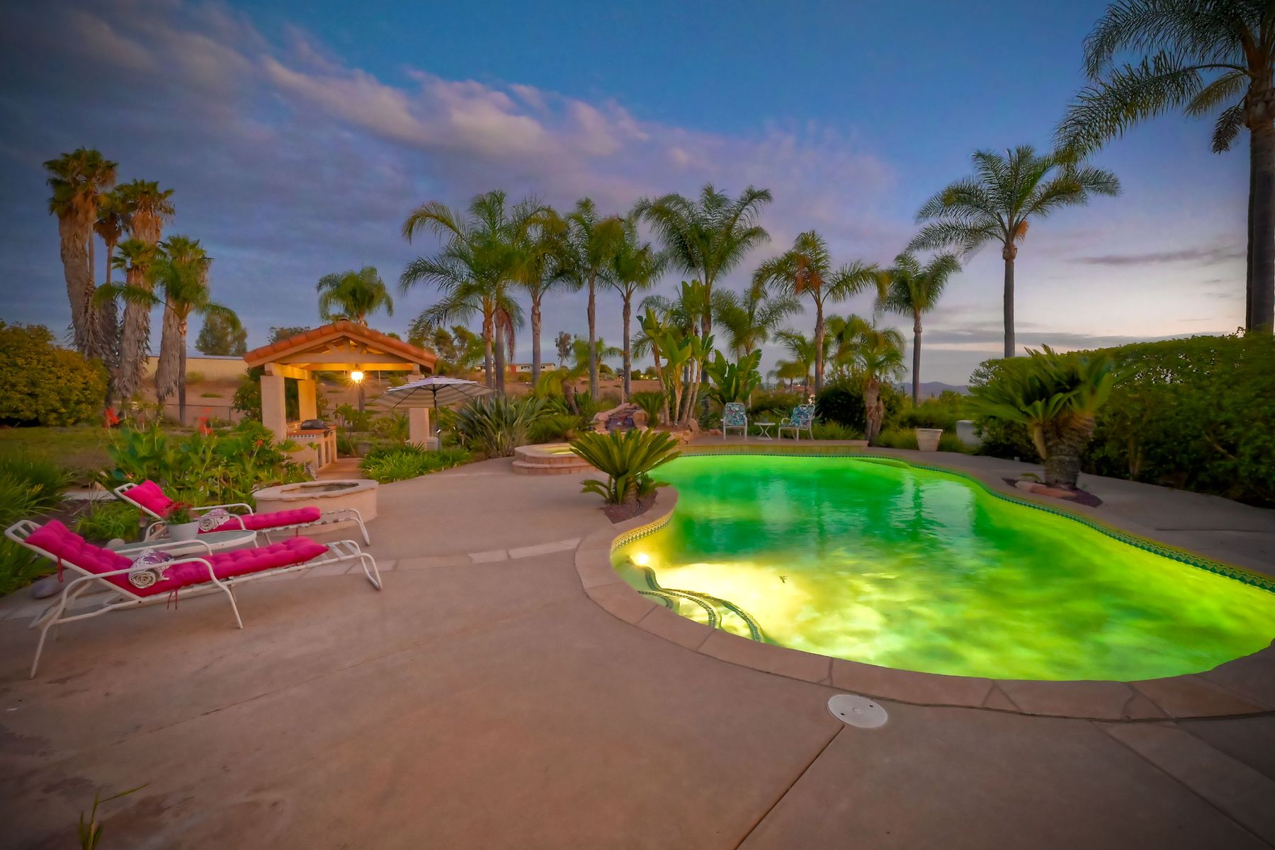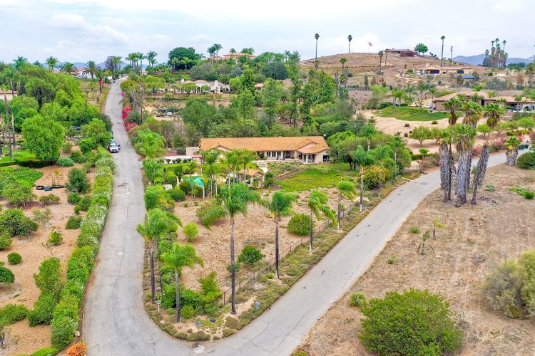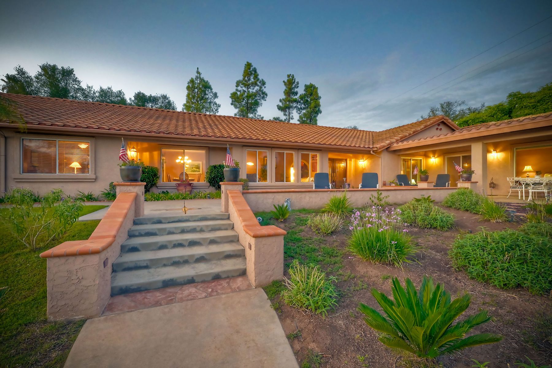 Amazing 3300 SqFt single story home tucked away behind private gates – this resort like oasis on 1.5 level acres awaits you! Close to all that the charming Fallbrook community offers yet less than 10 minutes from I-15/I-76 access (although as quiet as a sanctuary). TWO Master bedroom suites (perfect for multi-generational living) w/ two additional generously sized bedrooms ~ four full bathrooms. Renovated kitchen opens to spacious family room with elegant fireplace. Living room & dining room overlook luxuriously landscaped front yard, pool & spa area. Additional renovations include plank style tile flooring in all main living areas and BR’s, stainless steel appliances, dual pane windows & doors throughout, new garage doors and newer AC units (yes – the primary Master has its own HVAC and tankless water heater). With CA living in mind – this estate offers a plethora of outdoor living! Sliding glass doors off both Master suites and the family room invite you to dine al dente, sip coffee while enjoying your views and entertain to your hearts delight. Abundant fruit producing trees include: avocado, macadamia nut, orange, lemon, fig, nectarine, peach, apricot and apple. Veggie garden: tomatoes, eggplant, zucchini, chilies and cukes!! This home and all that it has to offer – beyond delightful!
