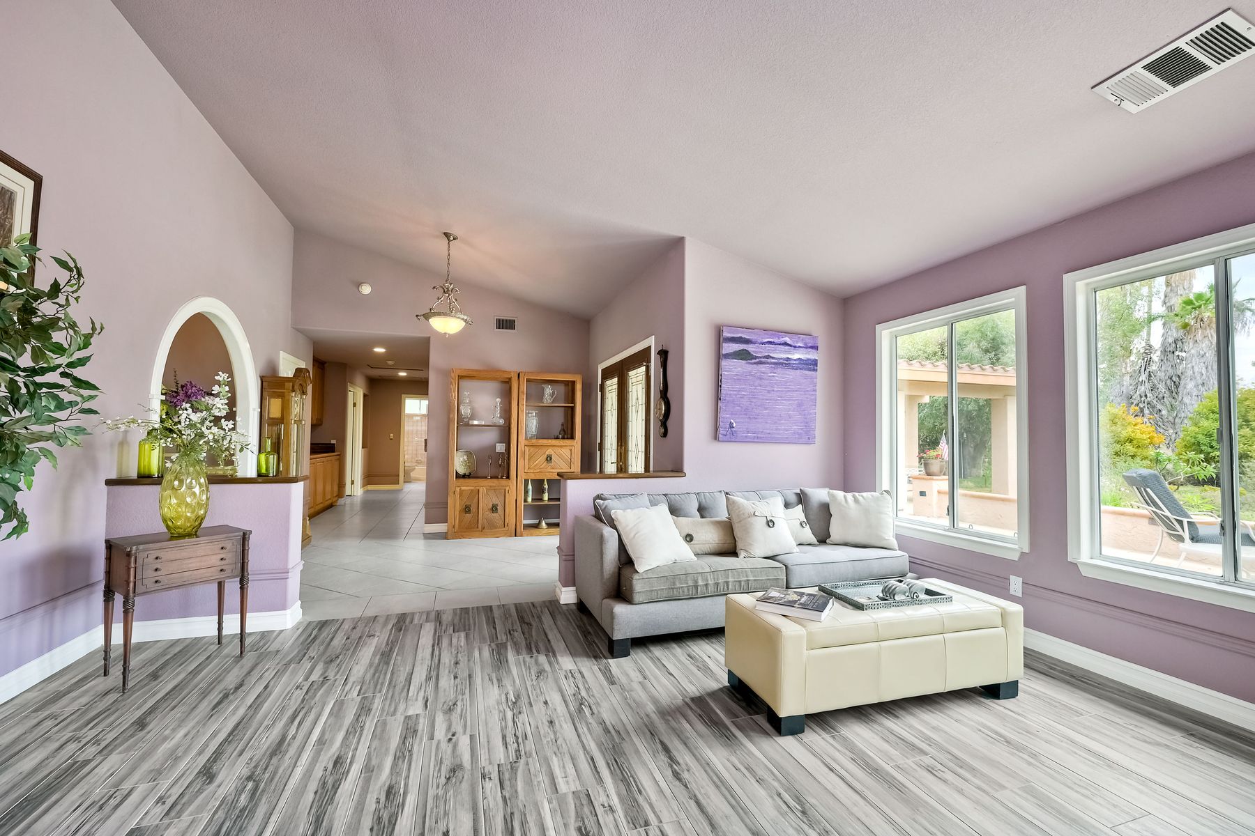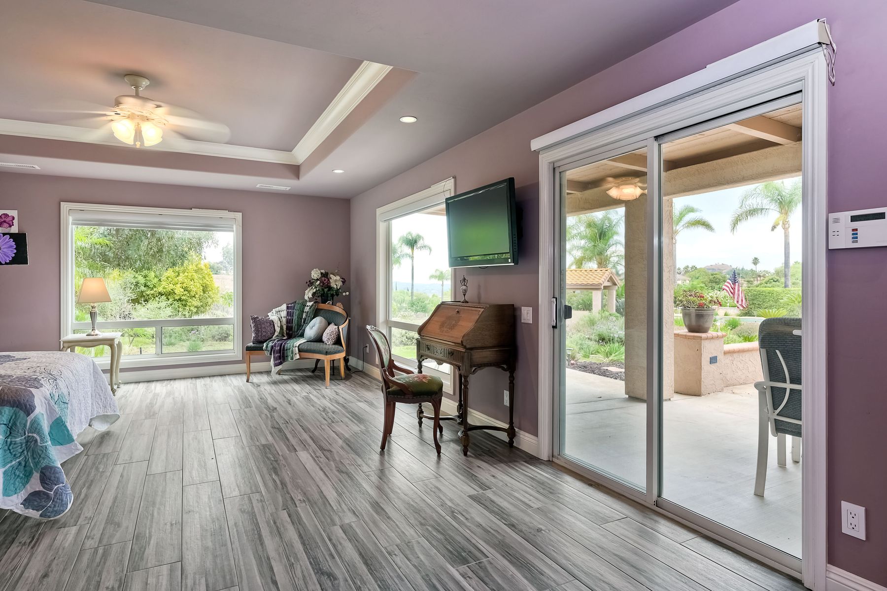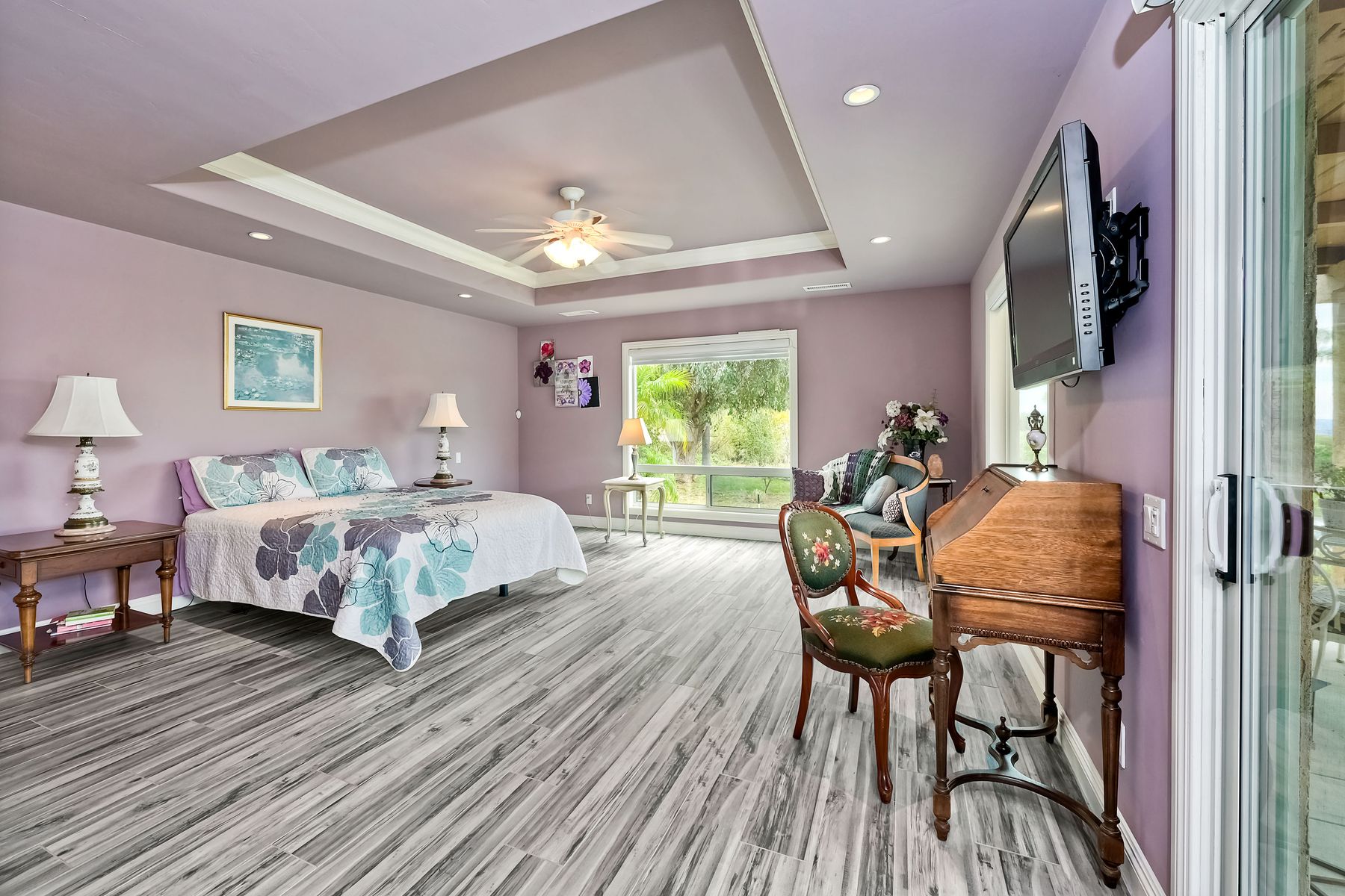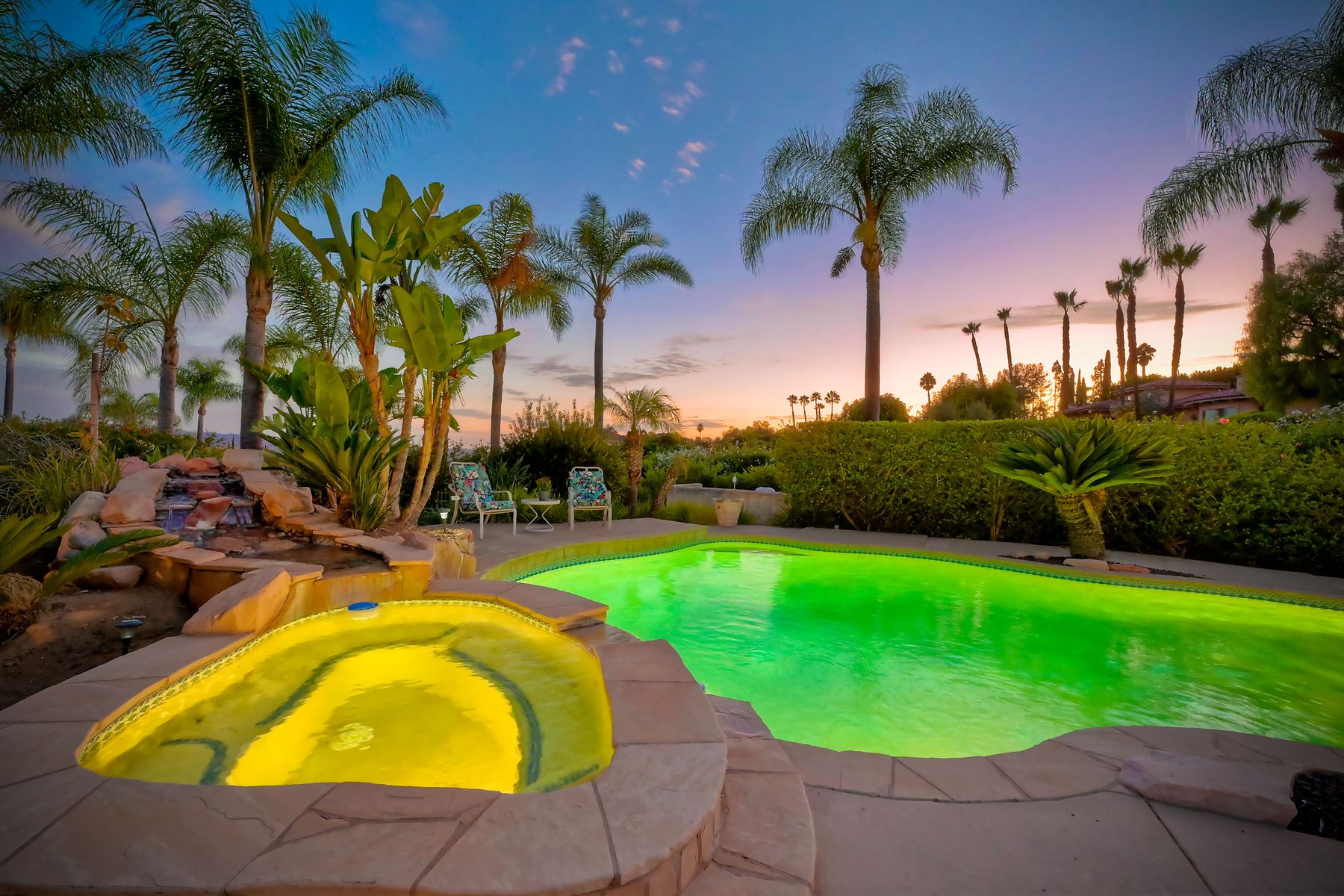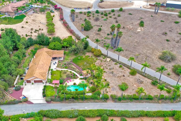 Amazing 3300 SqFt single story home tucked away behind private gates – this resort like oasis on 1.5 level acres awaits you! Close to all that the charming Fallbrook community offers yet less than 10 minutes from I-15/I-76 access (although as quiet as a sanctuary). TWO Master bedroom suites (perfect for multi-generational living) w/ two additional generously sized bedrooms ~ four full bathrooms. Renovated kitchen opens to spacious family room with elegant fireplace. Living room & dining room overlook luxuriously landscaped front yard, pool & spa area. Additional renovations include plank style tile flooring in all main living areas and BR’s, stainless steel appliances, dual pane windows & doors throughout, new garage doors and newer AC units (yes – the primary Master has its own HVAC and tankless water heater). With CA living in mind – this estate offers a plethora of outdoor living! Sliding glass doors off both Master suites and the family room invite you to dine al dente, sip coffee while enjoying your views and entertain to your hearts delight. Abundant fruit producing trees include: avocado, macadamia nut, orange, lemon, fig, nectarine, peach, apricot and apple. Veggie garden: tomatoes, eggplant, zucchini, chilies and cukes!! This home and all that it has to offer – beyond delightful!