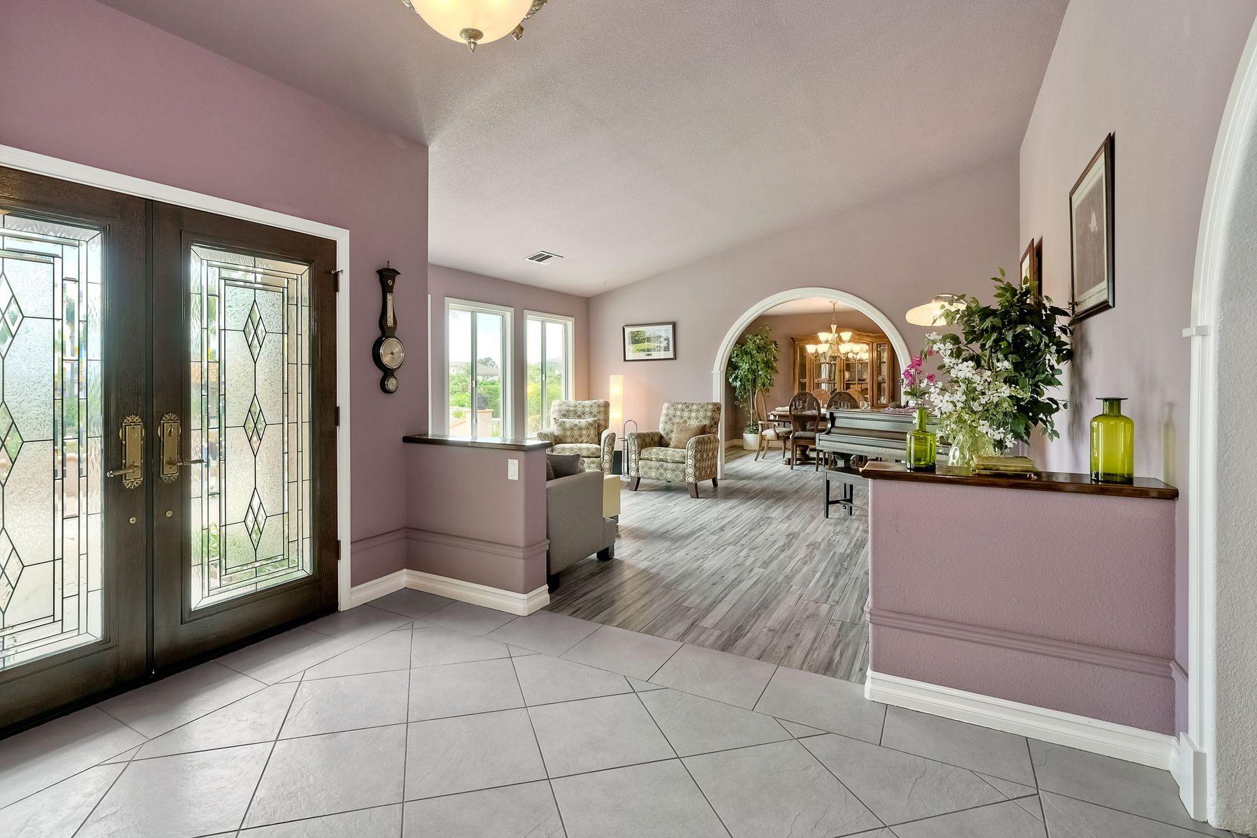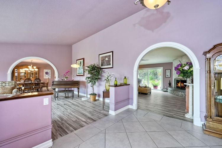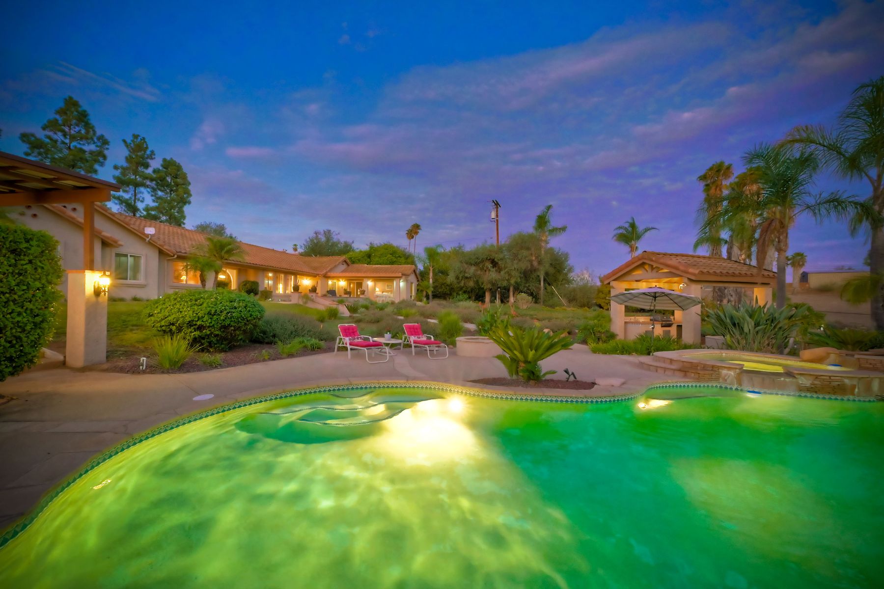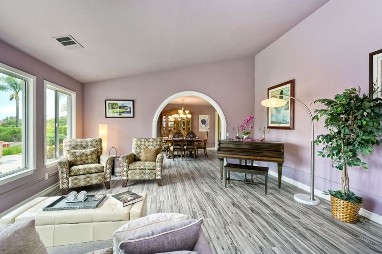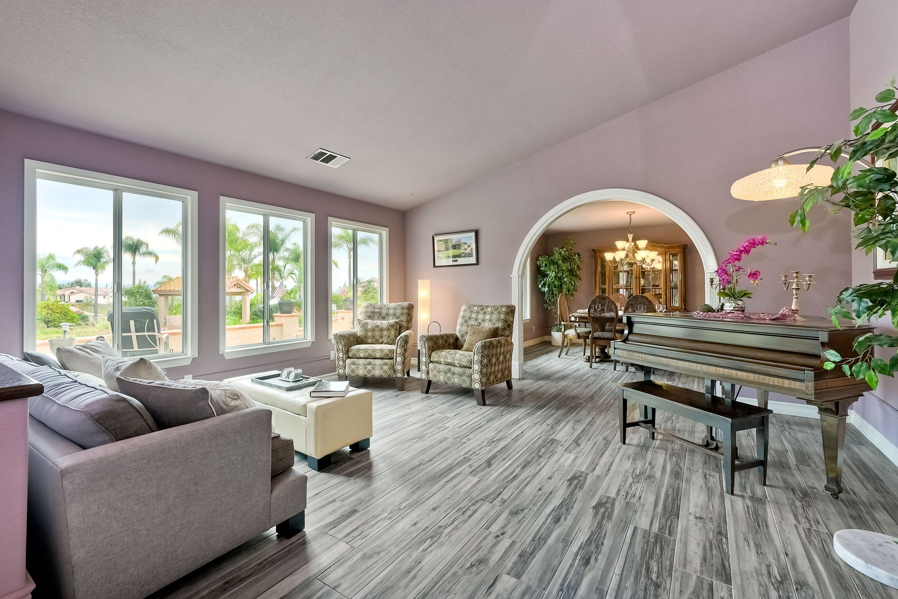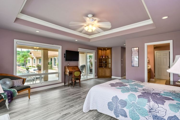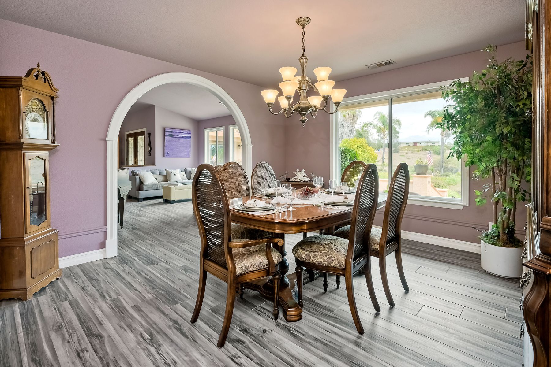 Amazing 3300 SqFt single story home tucked away behind private gates – this resort like oasis on 1.5 level acres awaits you! Close to all that the charming Fallbrook community offers yet less than 10 minutes from I-15/I-76 access (although as quiet as a sanctuary). TWO Master bedroom suites (perfect for multi-generational living) w/ two additional generously sized bedrooms ~ four full bathrooms. Renovated kitchen opens to spacious family room with elegant fireplace. Living room & dining room overlook luxuriously landscaped front yard, pool & spa area. Additional renovations include plank style tile flooring in all main living areas and BR’s, stainless steel appliances, dual pane windows & doors throughout, new garage doors and newer AC units (yes – the primary Master has its own HVAC and tankless water heater). With CA living in mind – this estate offers a plethora of outdoor living! Sliding glass doors off both Master suites and the family room invite you to dine al dente, sip coffee while enjoying your views and entertain to your hearts delight. Abundant fruit producing trees include: avocado, macadamia nut, orange, lemon, fig, nectarine, peach, apricot and apple. Veggie garden: tomatoes, eggplant, zucchini, chilies and cukes!! This home and all that it has to offer – beyond delightful!