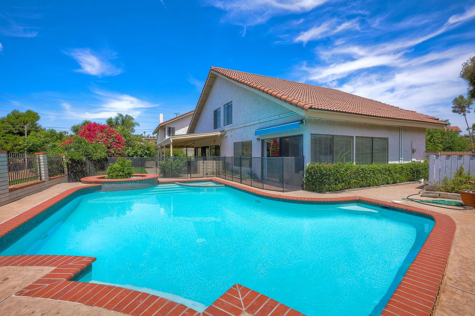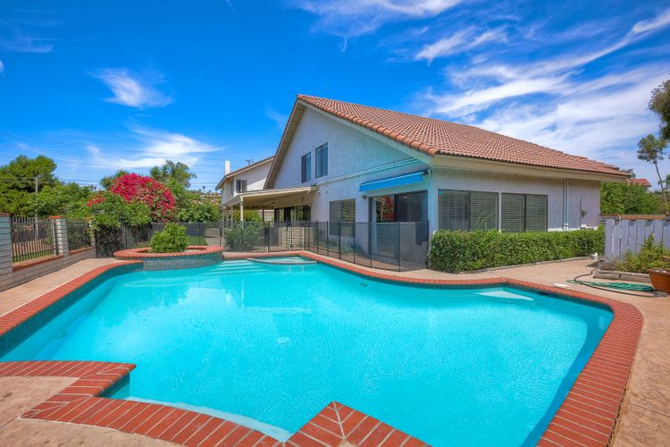 Just greatly reduced for a fast sale! .Wonderful Bonita Woods home with designer pool and spa with amazing view to the south and greenbelt. Large living room with dramatic vaulted ceilings , one master bedroom suite downstairs with enclosed private patio. Formal dining room with granite topped wet bar. Spacious family room with fireplace. extra large bedroom upstairs. The main asset is space and light for this excellent family home. HOA maintains the front yard. Tennis court and walking trails.