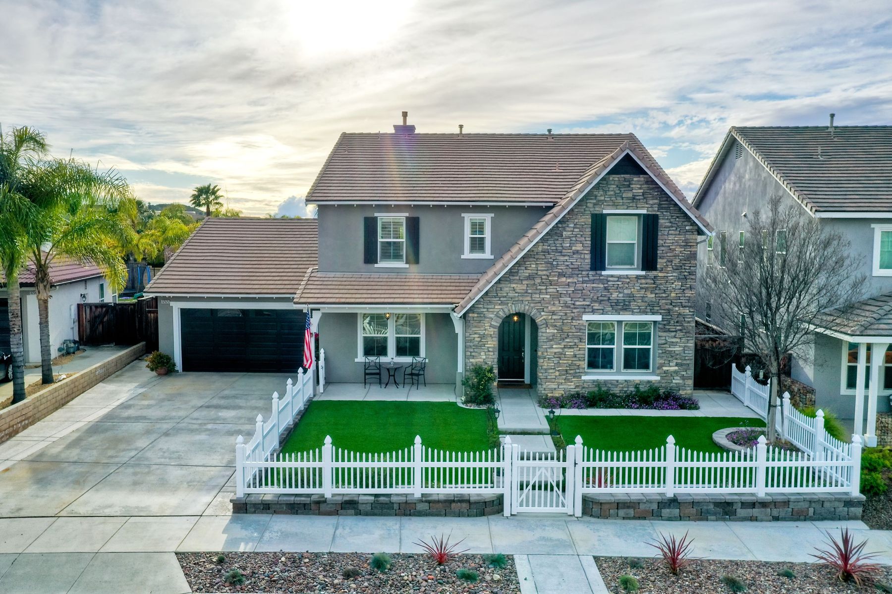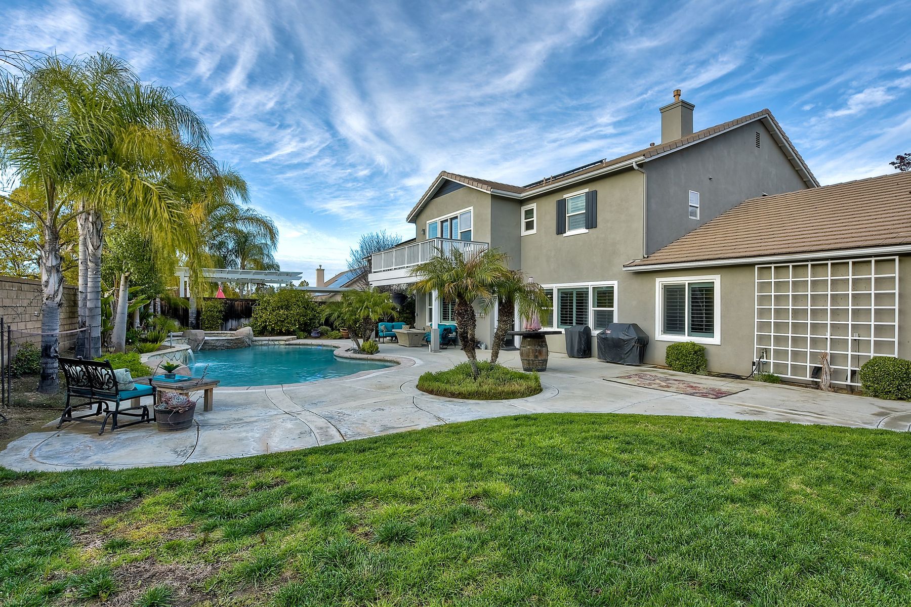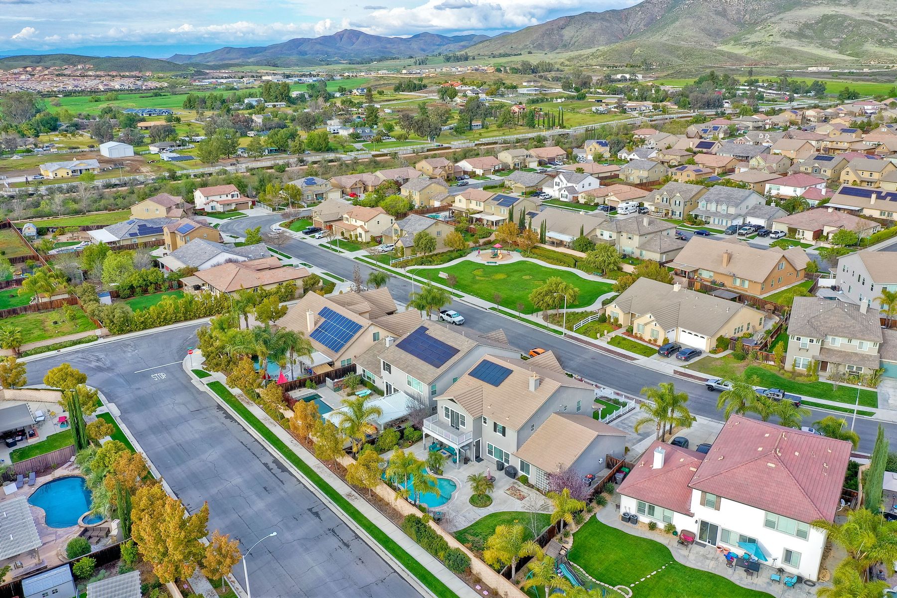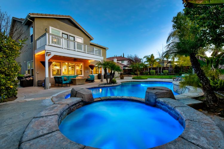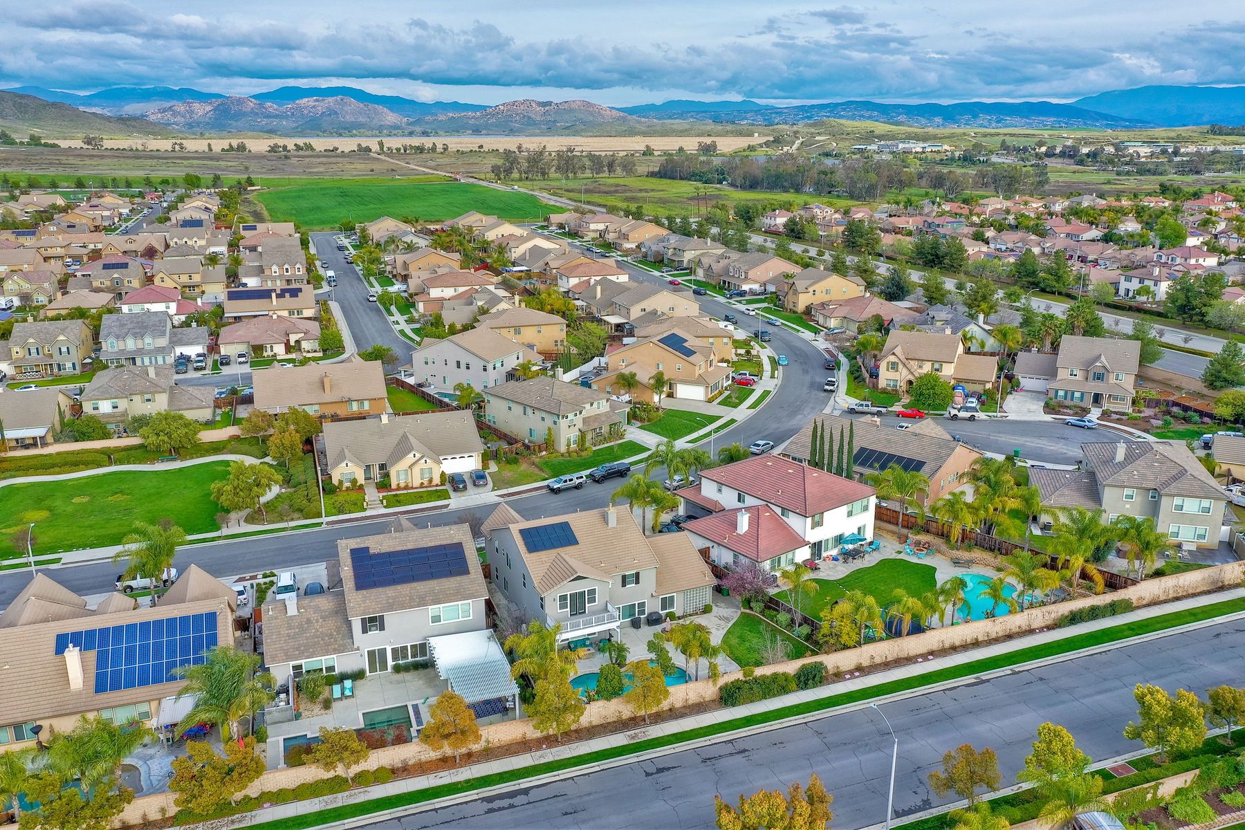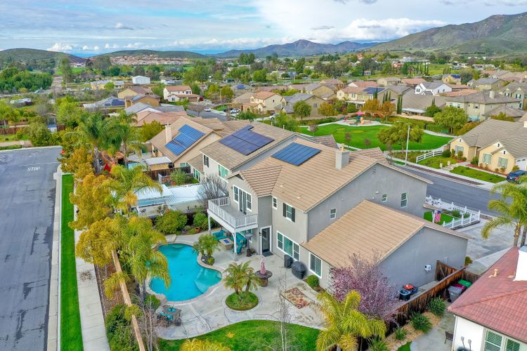 Excellent opportunity to own Adeline Farm's finest! Recently updated/upgraded-shows better than a model. First sight of property impresses pride of ownership. Luxurious yet comfortable living providing large rooms, gathering spaces & is perfect for entertaining. Fully appointed chef's kitchen w/ giant island (9'1" X 7'7") & storage, stainless steel appliances (double oven, range, new microwave, dishwasher, freshly painted cabinets and island) walk-in and butler's pantry, huge eating area. Massive great room w/ fireplace & over 25 feet of custom white built-ins with shiplap & lighting. Separate Dining room, currently used as a lounge. Main floor office, bedroom & full bath serve main level. Upstairs: large study nook featuring two white desks and great workspace, secondary bedrooms are all large and could easily accommodate two twin beds with plenty of leftover floor space. The enormous master has a custom barn door separating the resort like bathroom from bedroom. Two separate vanities separated by large soaking tub, plus an oversized shower w/bench. Step onto the deck from master & view your backyard w/ sparkling blue pool & spa with waterfall, spillways and Shamu shelf. Concrete decking & grassy area = low maintenance. Owned solar. 5 whole house fans & oversized water heater.. Custom painted three car garage offers high end epoxy, built-in cabinets & winch in attic. Copy & paste: https://www.insightlistings.com/32525-juniper-berry-dr-winchester-92596/ub/lr0P9Lr7