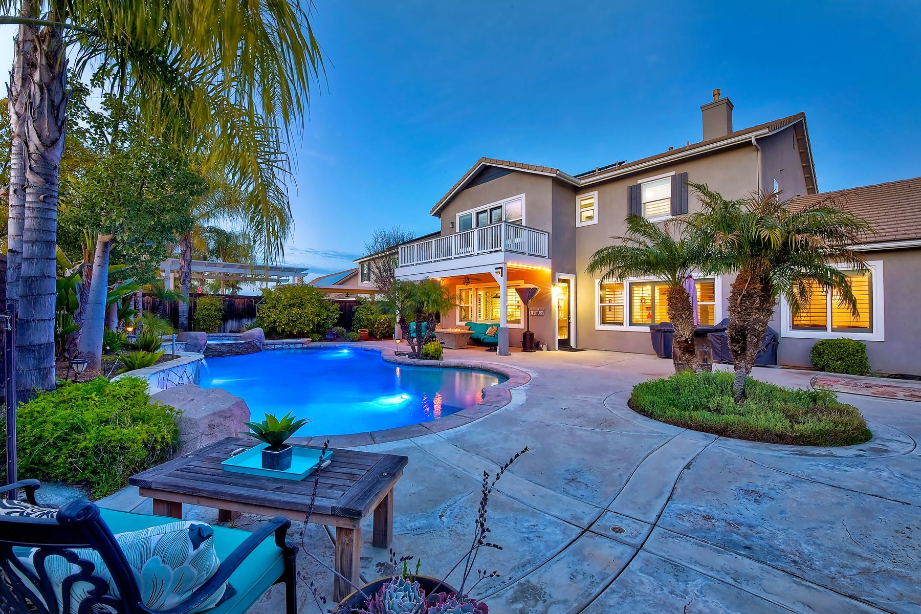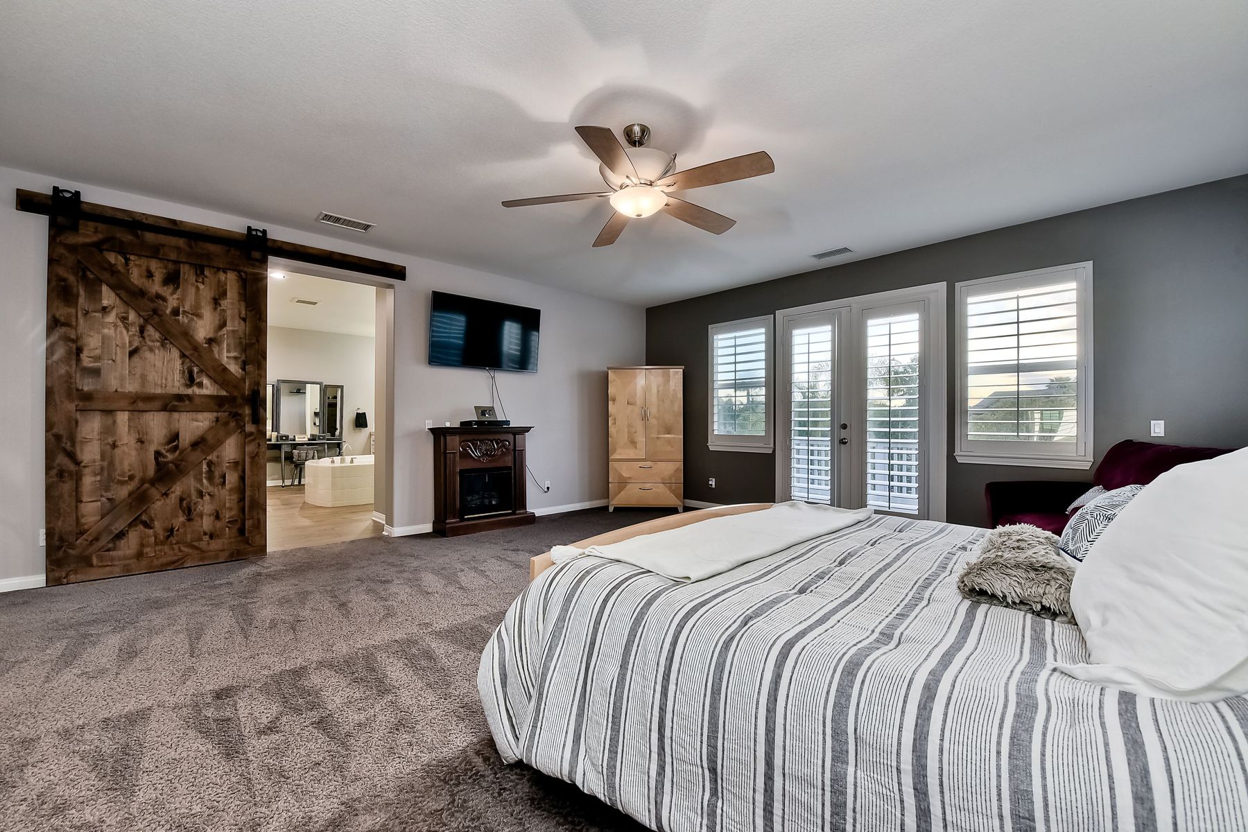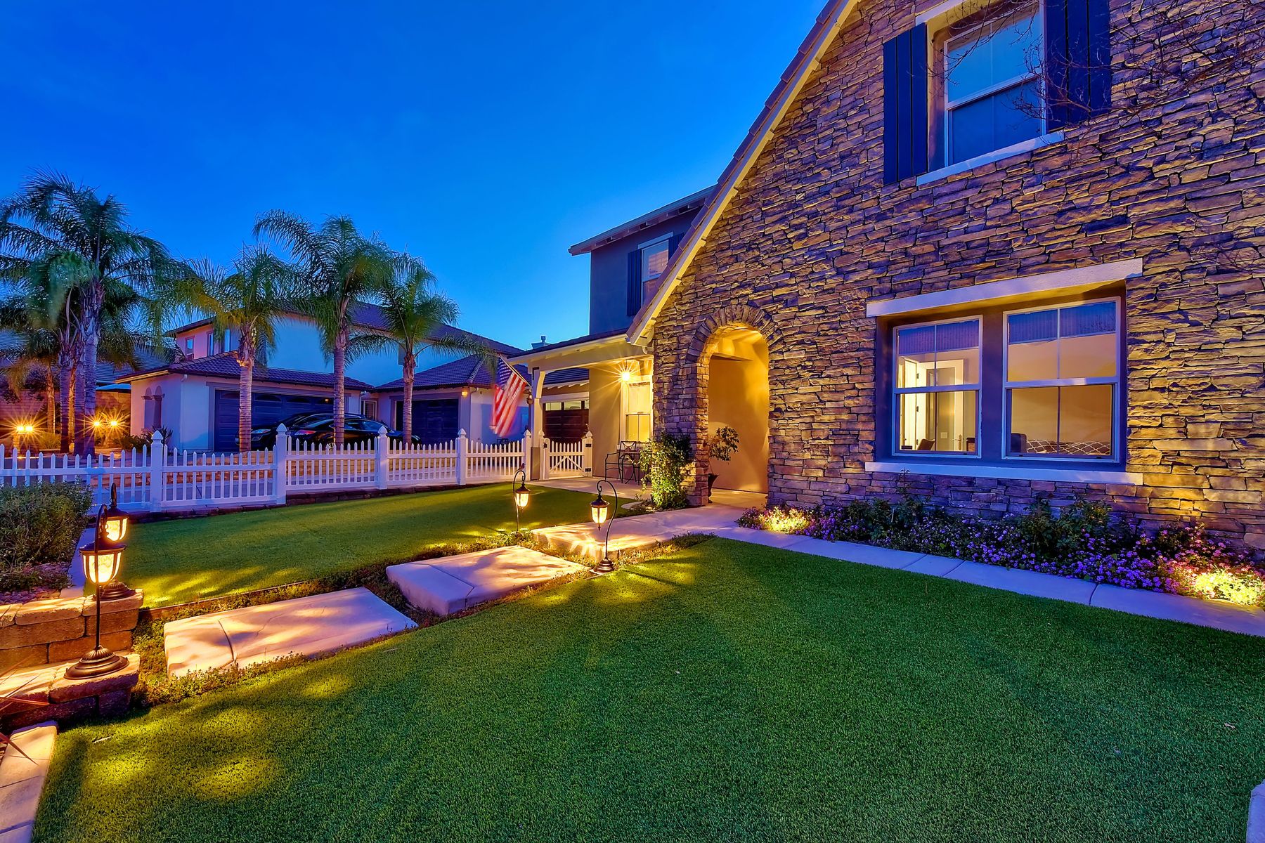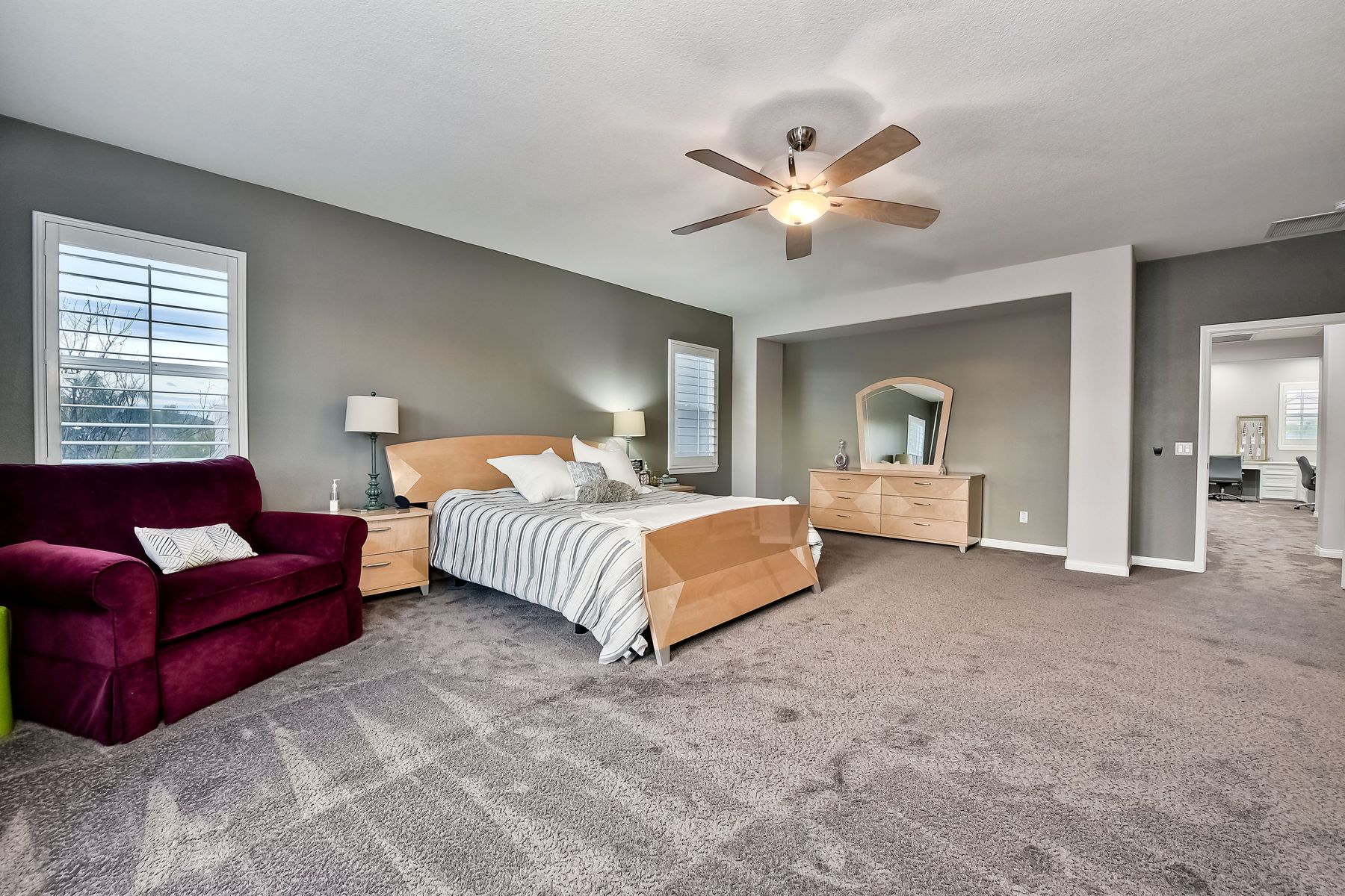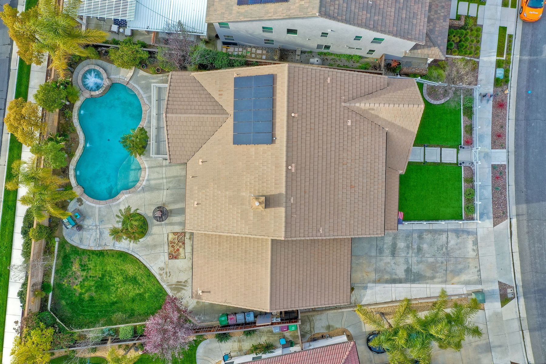 Excellent opportunity to own Adeline Farm's finest! Recently updated/upgraded-shows better than a model. First sight of property impresses pride of ownership. Luxurious yet comfortable living providing large rooms, gathering spaces & is perfect for entertaining. Fully appointed chef's kitchen w/ giant island (9'1" X 7'7") & storage, stainless steel appliances (double oven, range, new microwave, dishwasher, freshly painted cabinets and island) walk-in and butler's pantry, huge eating area. Massive great room w/ fireplace & over 25 feet of custom white built-ins with shiplap & lighting. Separate Dining room, currently used as a lounge. Main floor office, bedroom & full bath serve main level. Upstairs: large study nook featuring two white desks and great workspace, secondary bedrooms are all large and could easily accommodate two twin beds with plenty of leftover floor space. The enormous master has a custom barn door separating the resort like bathroom from bedroom. Two separate vanities separated by large soaking tub, plus an oversized shower w/bench. Step onto the deck from master & view your backyard w/ sparkling blue pool & spa with waterfall, spillways and Shamu shelf. Concrete decking & grassy area = low maintenance. Owned solar. 5 whole house fans & oversized water heater.. Custom painted three car garage offers high end epoxy, built-in cabinets & winch in attic. Copy & paste: https://www.insightlistings.com/32525-juniper-berry-dr-winchester-92596/ub/lr0P9Lr7