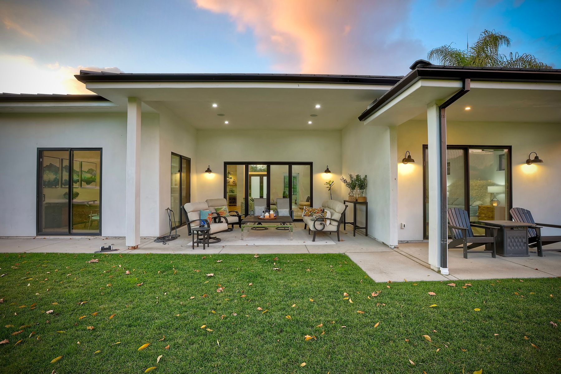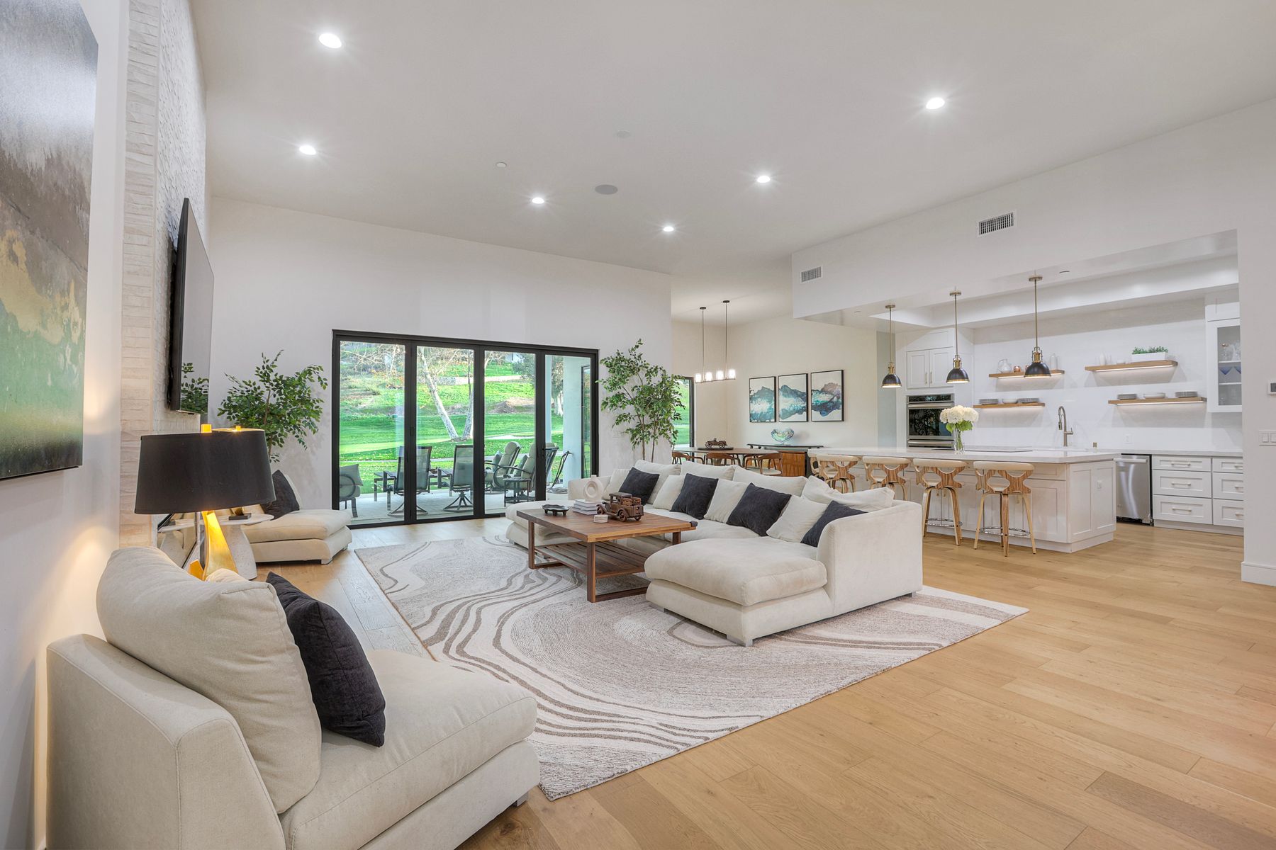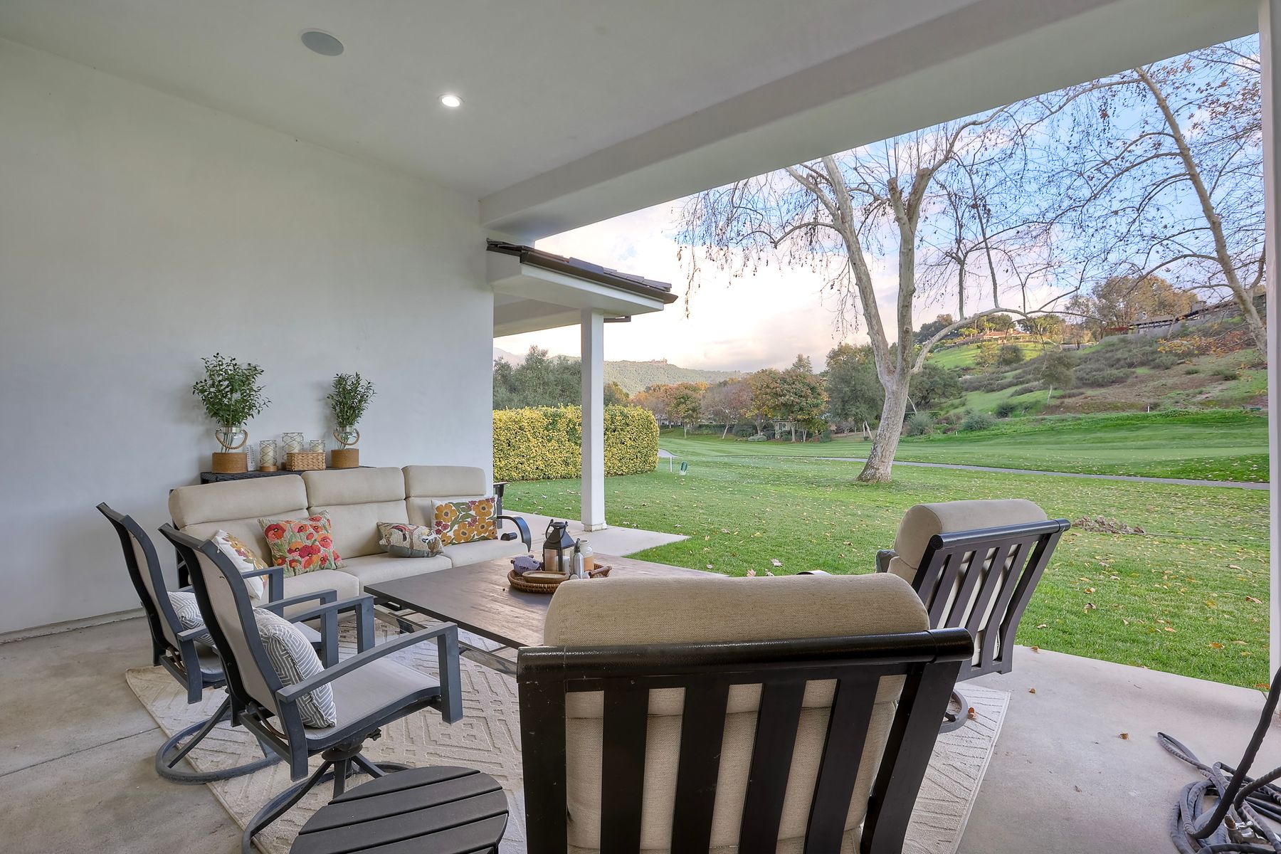 Fleetwood folding doors open the living room onto the spacious covered patio, perfect for enjoying your morning coffee or evening sunsets as you overlook the 12th hole of the Pauma Valley golf course. One of the additional en-suite bedrooms also enjoys a golf course view, while the other two offer serene privacy.