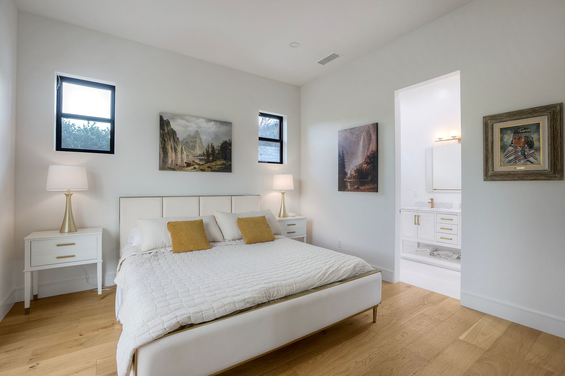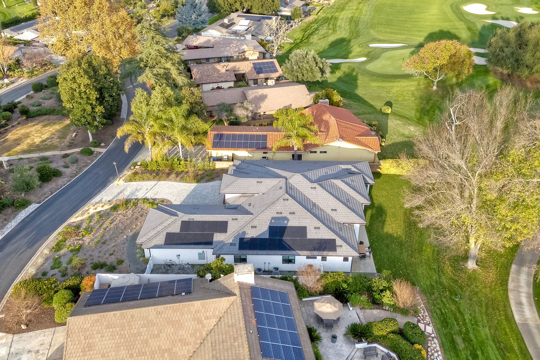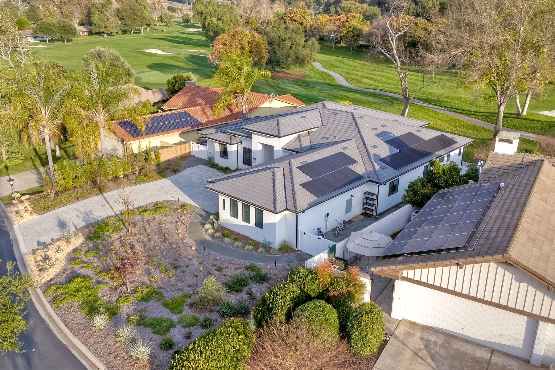 Fleetwood folding doors open the living room onto the spacious covered patio, perfect for enjoying your morning coffee or evening sunsets as you overlook the 12th hole of the Pauma Valley golf course. One of the additional en-suite bedrooms also enjoys a golf course view, while the other two offer serene privacy.