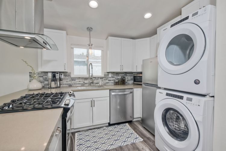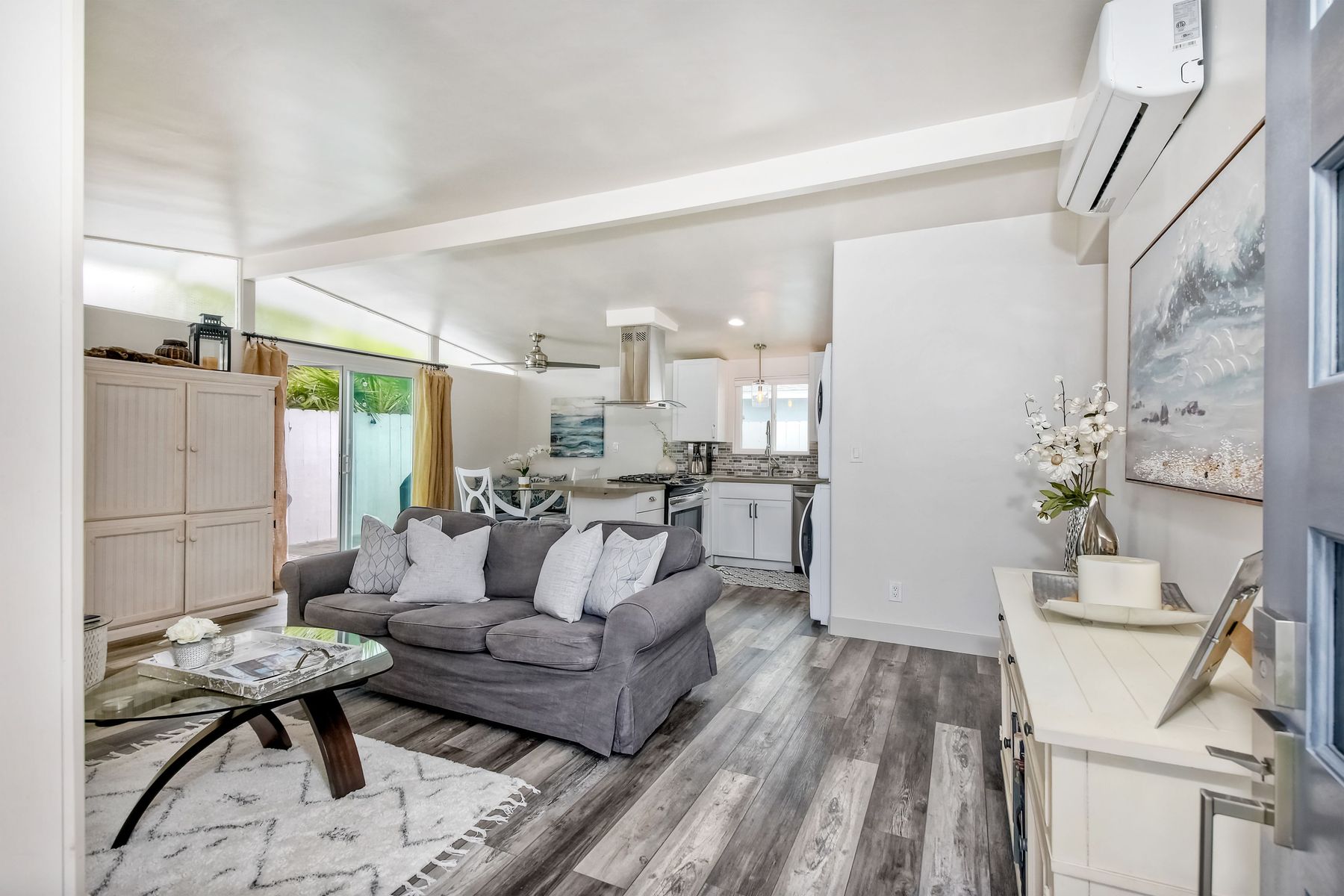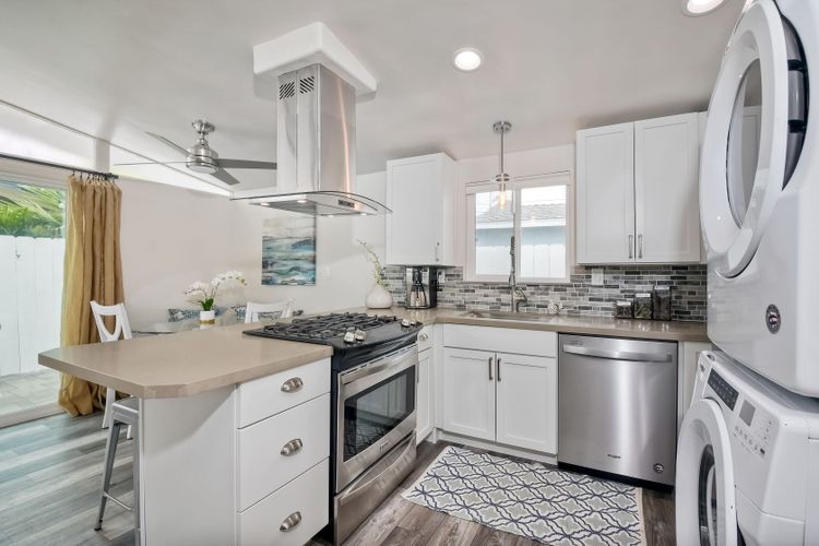 Nothing spared in this fully renovated and beautifully detailed property. Fine detailing throughout main house and cottage behind. Each has 2 bedrooms and 1 bath. Front home has vaulted ceilings in great room. New doors & windows throughout. W/D in both units. Ceiling fans in the bedrooms. HVAC efficiency Heat/AC units, tankless water heater in both homes. Tankless water heaters in both homes. Newer stainless appliances throughout. Nearly new roofs. Both homes have private yards/gardens which have been nicely landscaped with low maintenance garden materials and concrete pavers. Front main house has lawn for dog or child play area. Plenty of private parking. Never worry about a vacancy in this area. Oceanside downtown is full of trendy breweries, restaurants, shops, and amazing beaches. Also close to public transportation including trains to LA and SD; wonderful SD beach towns, highways, and regional shopping.
